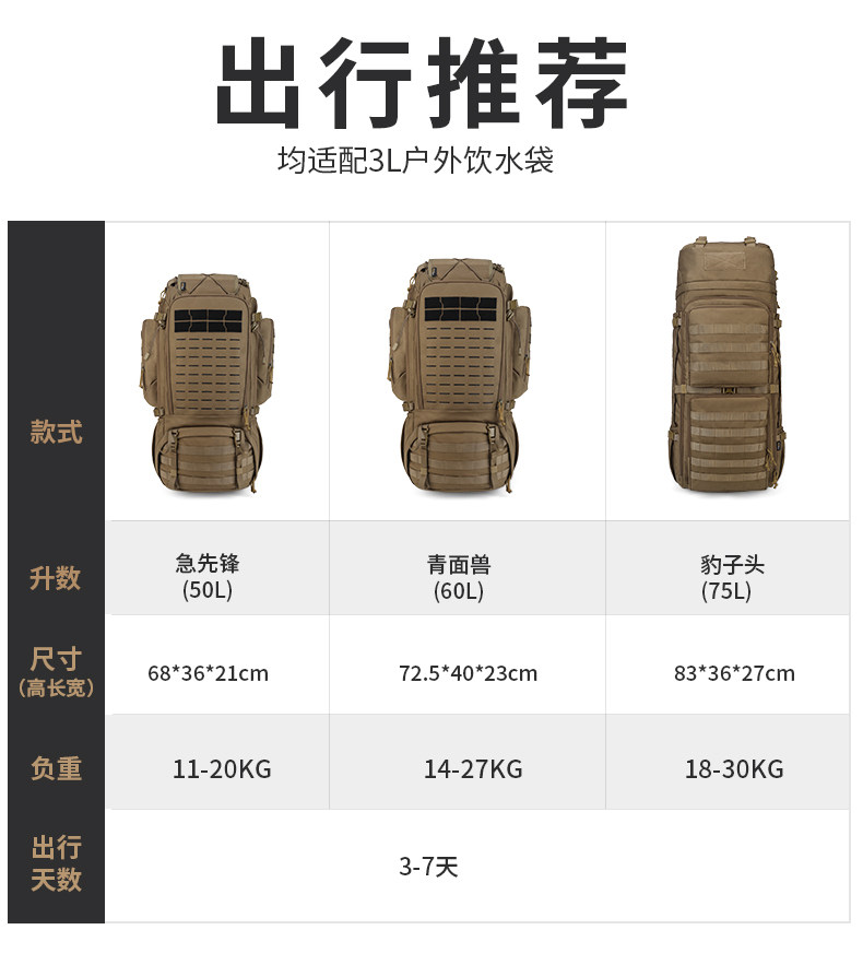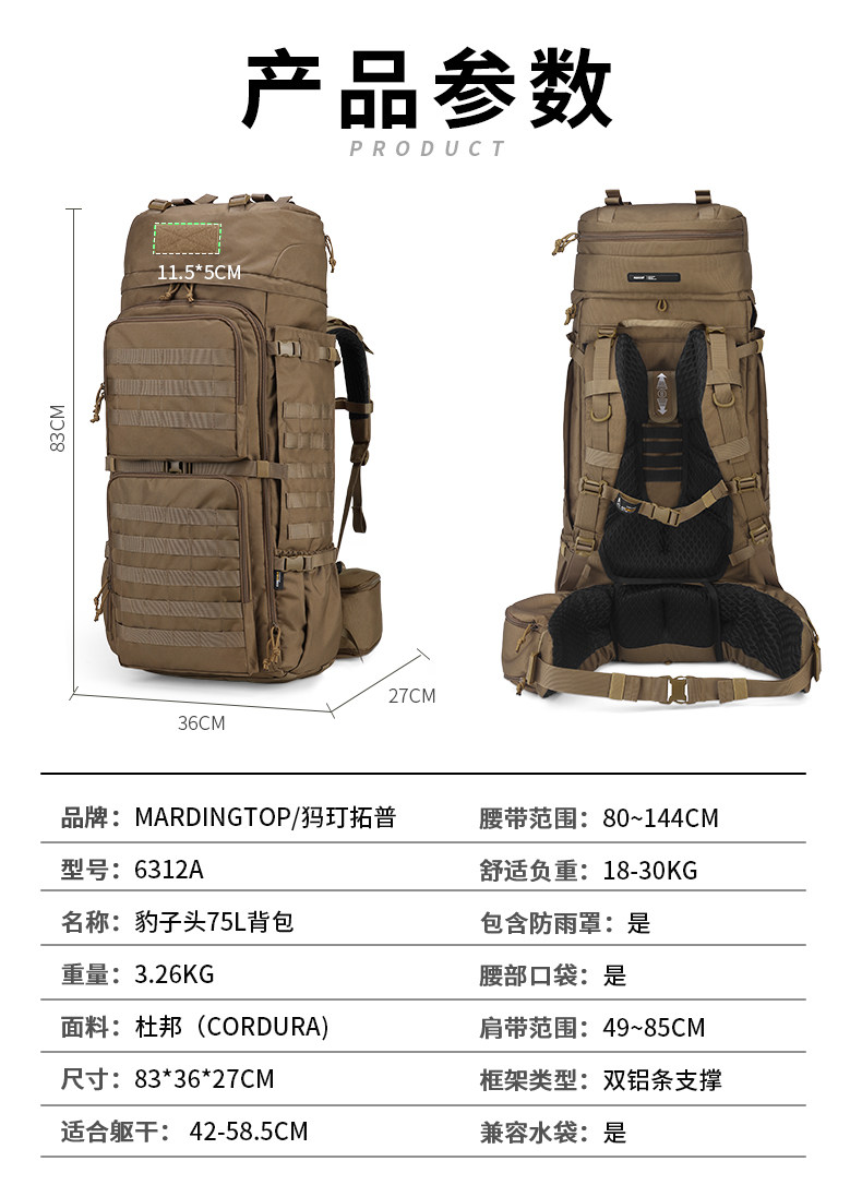 Mardingtop Tactical Outdoor Mountaineering Hiking Equipment Camping Camouflage Extra-Large Backpack Carrying System