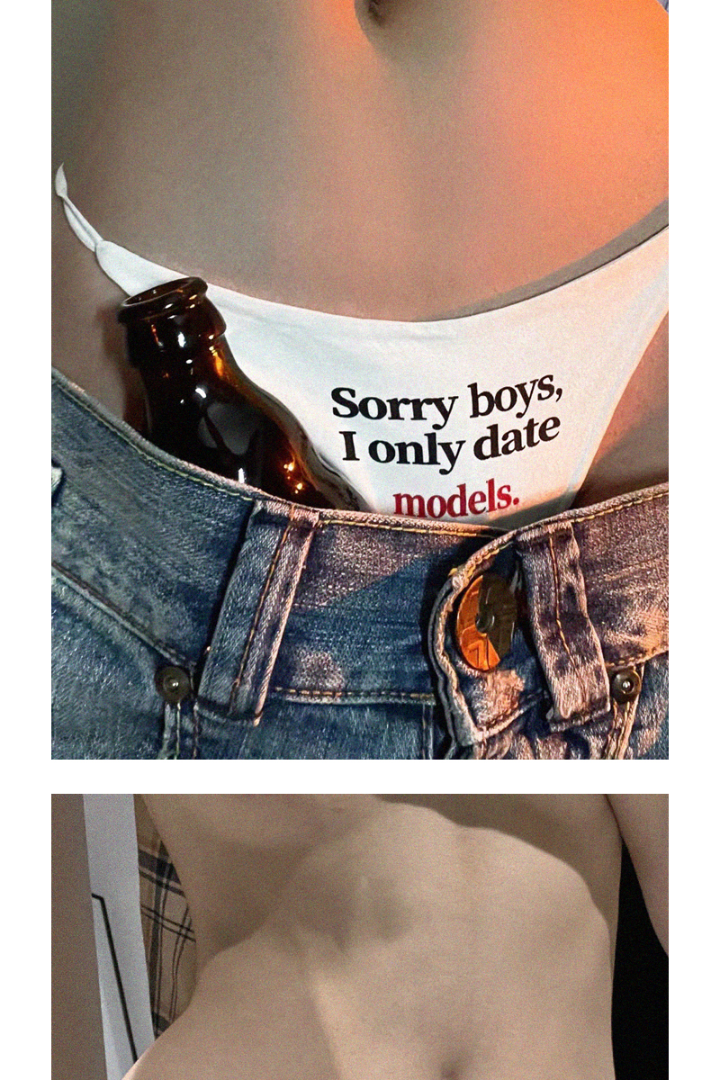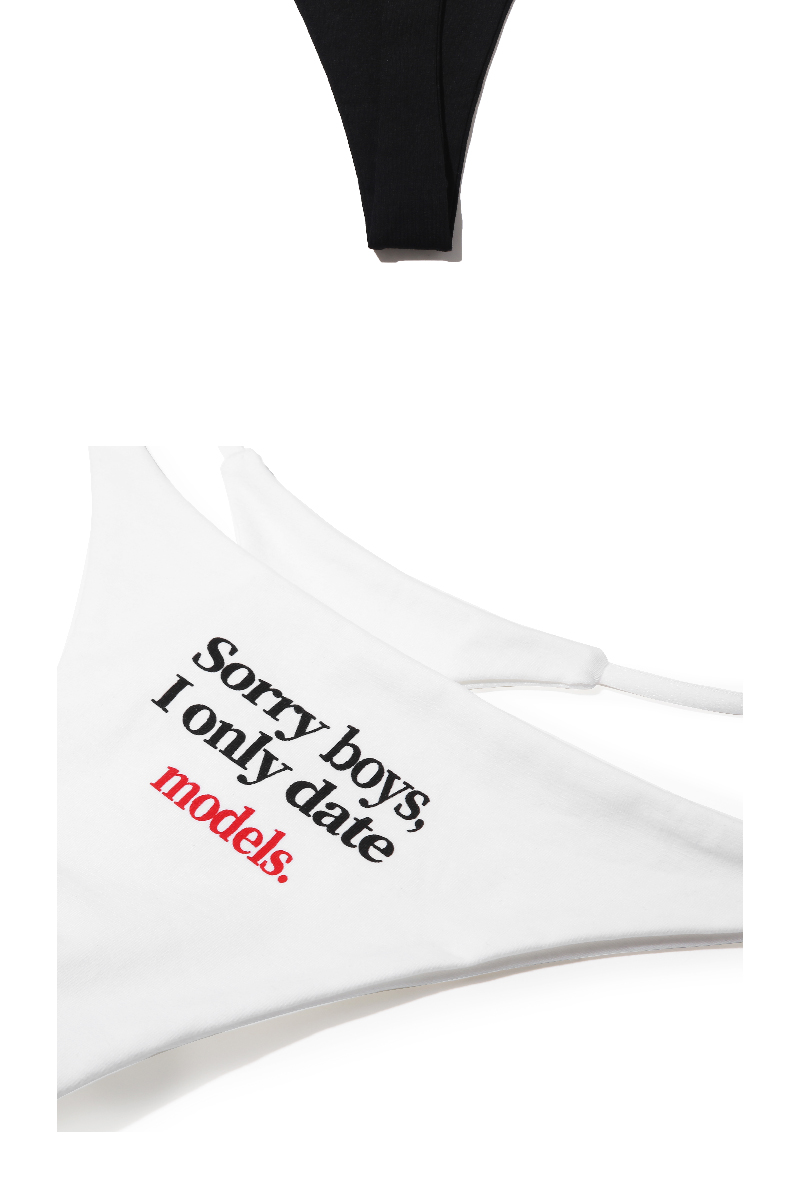 Wcc Brand Fashion Sorryboysionlydatemodels Spoof Thong Black and White