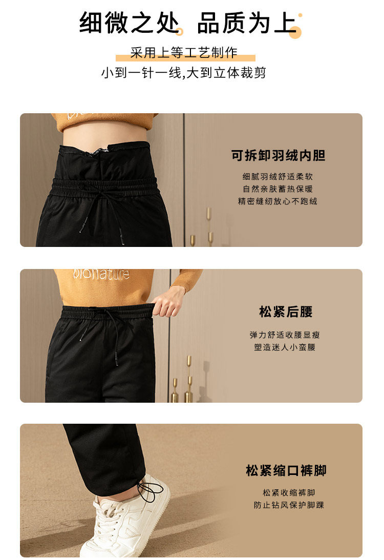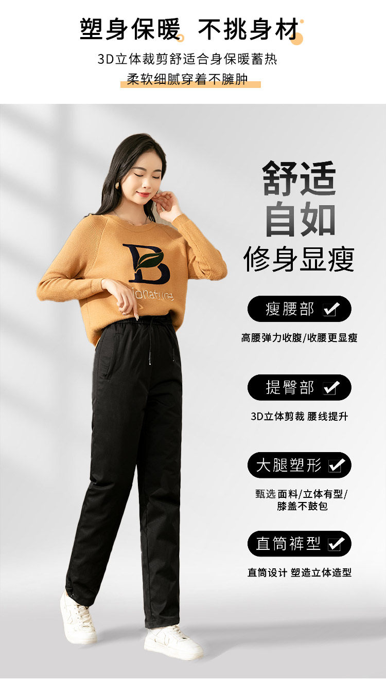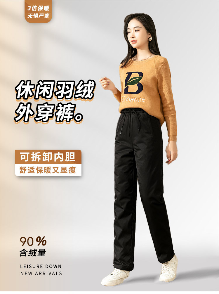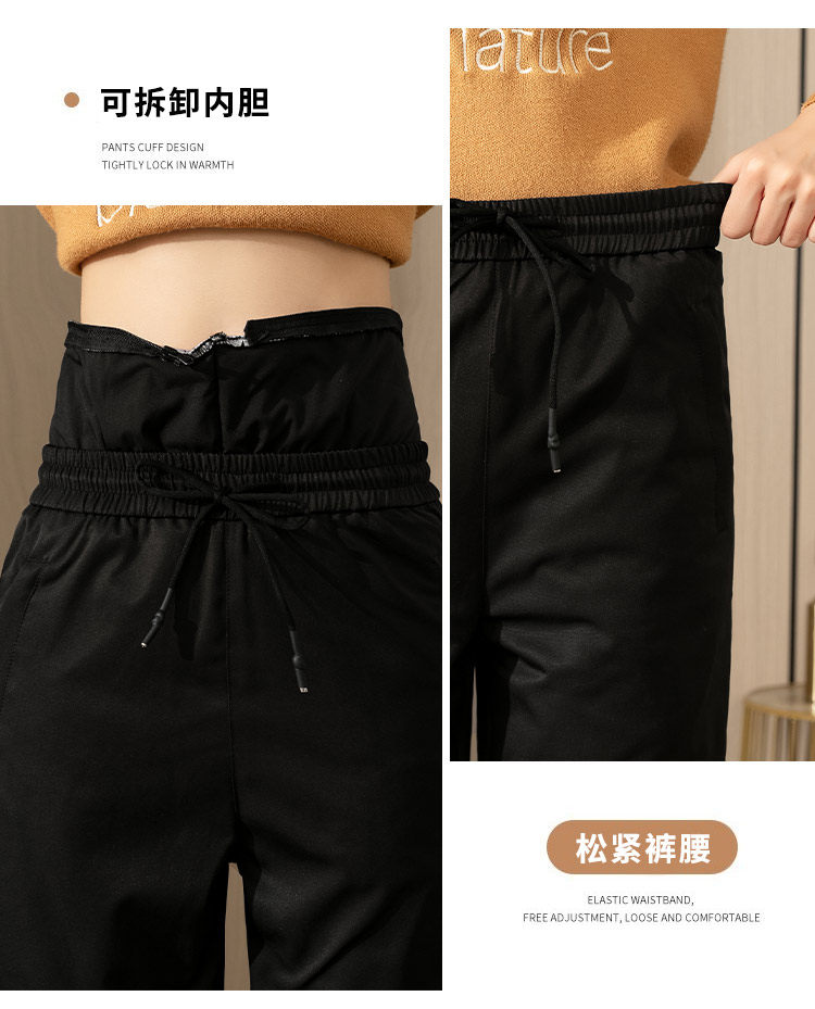 Yalu Middle-Aged and Elderly Women's down Pants for Outdoor Wear, High-Waisted, Thickened, Detachable, Warm, Deep-Crotch, Straight-Leg Cotton Pants for Winter