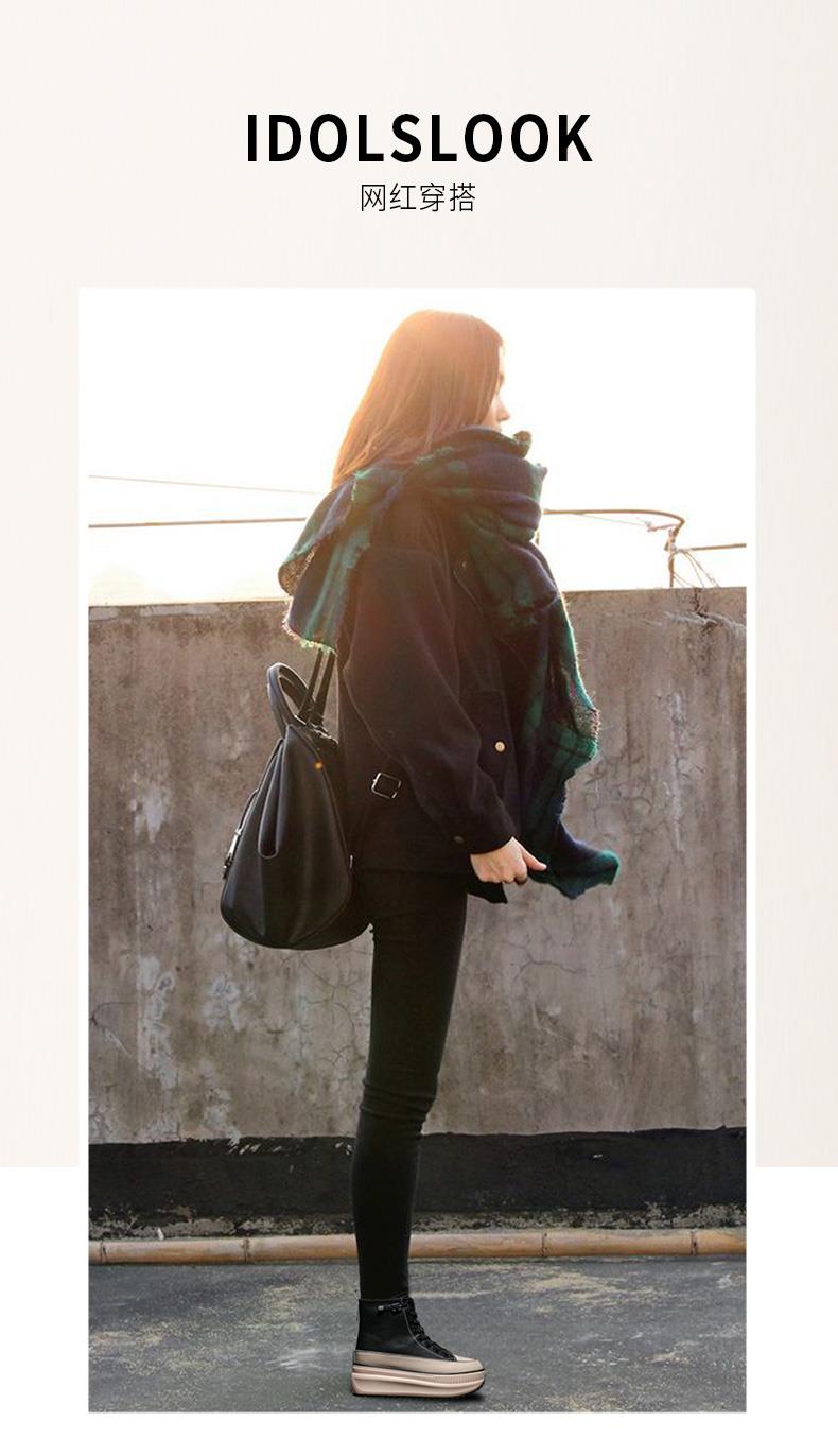 Star Yang Mi's Same Style Cotton Shoes for Autumn and Winter Fleece-Lined High-Top Shoes Thick-Soled Platform Shoes with Increased Height Boots ins Women's Shoes