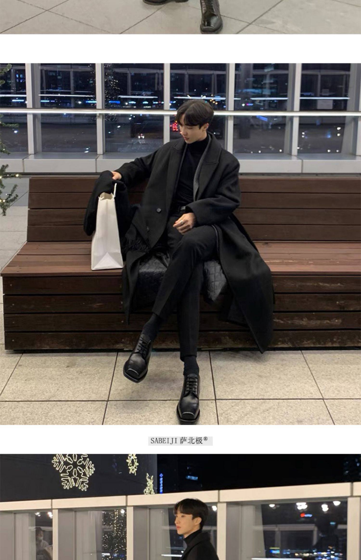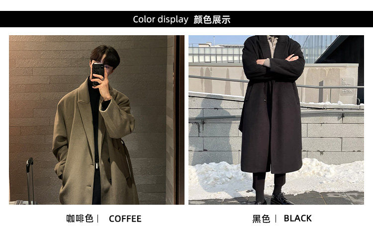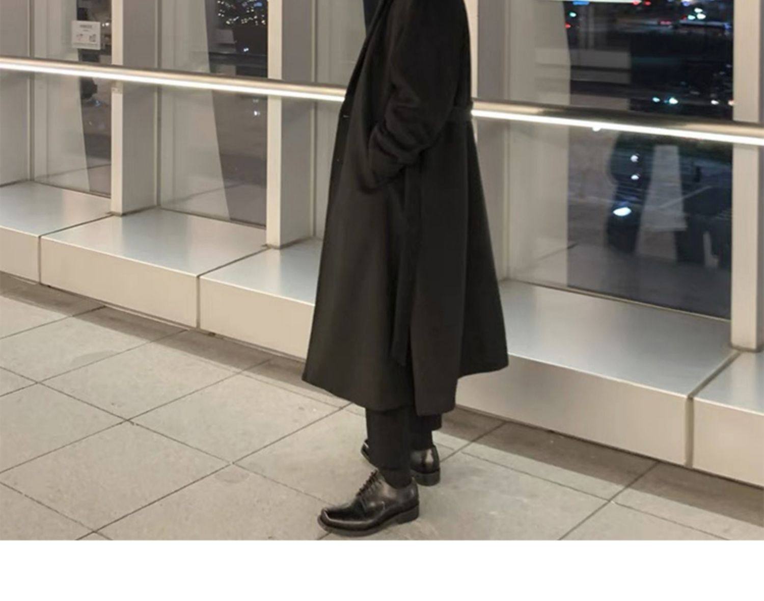 Winter Double-Sided Cashmere Woolen Coat for Men, Light Mature Style Suit, Mid-Length Thickened Woolen Over-The-Knee Trench Coat
