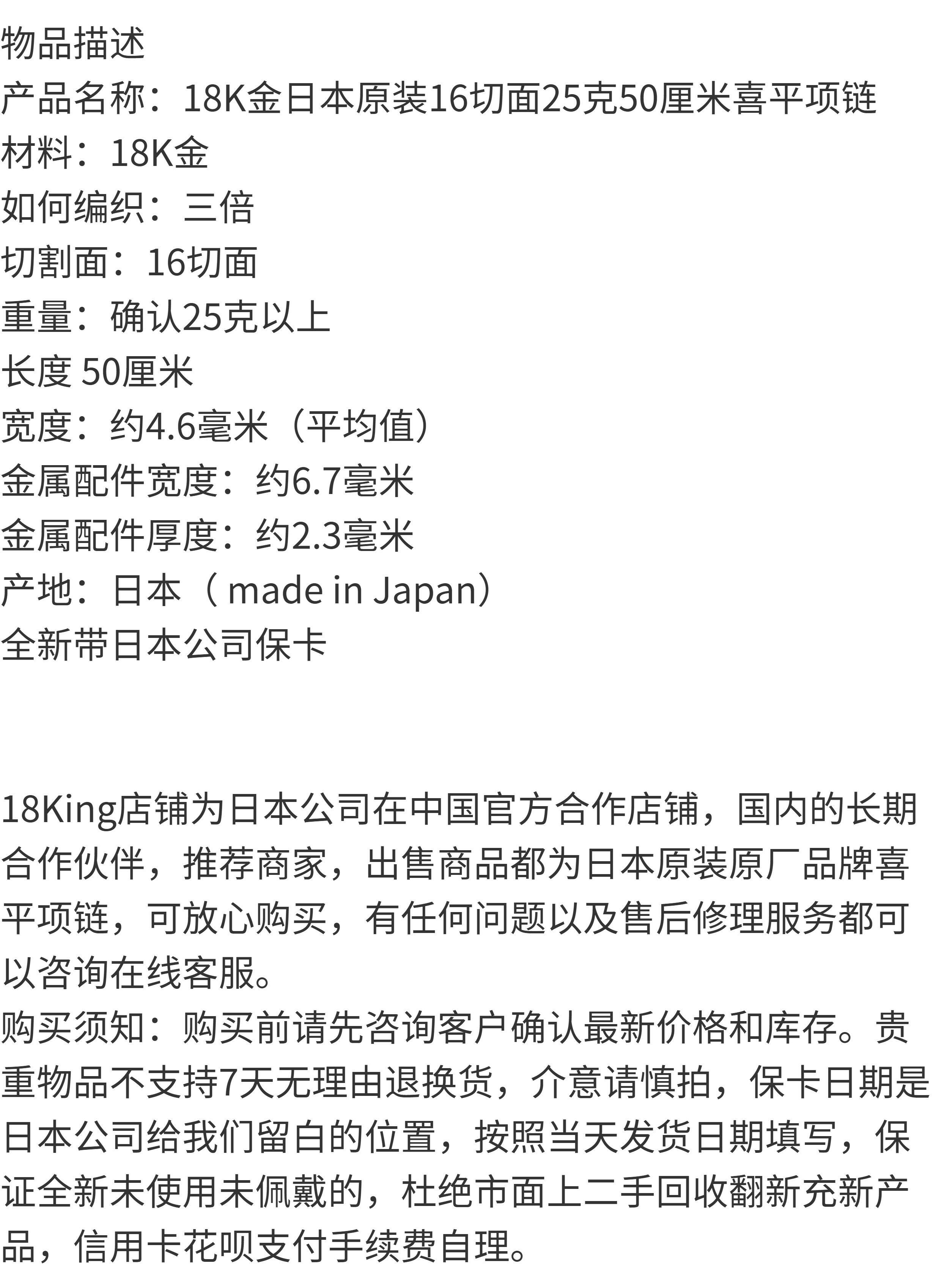 18K Gold Japanese 16-Facet 25g 50cm Xiping Necklace Mint 18King Master Brother