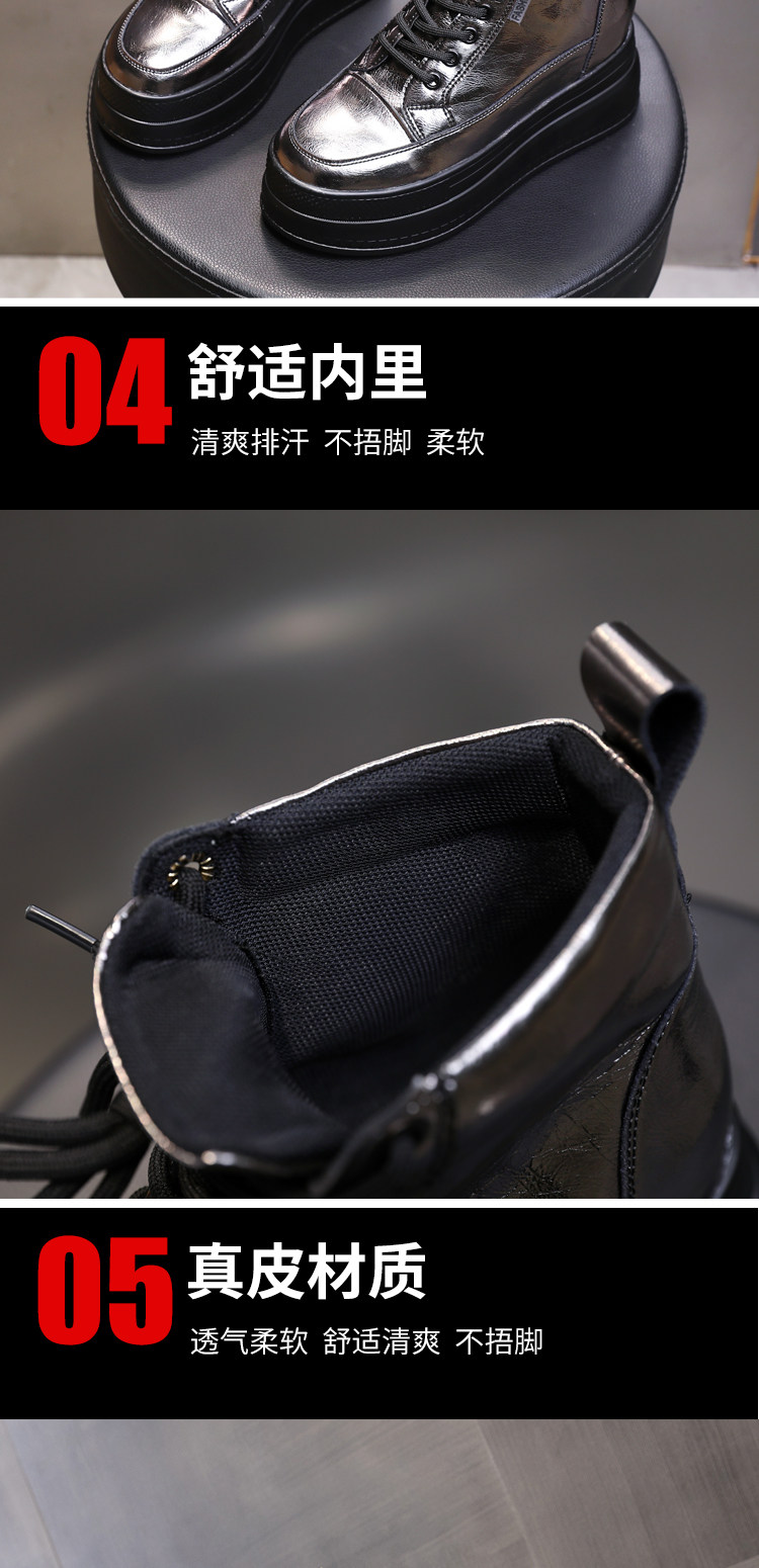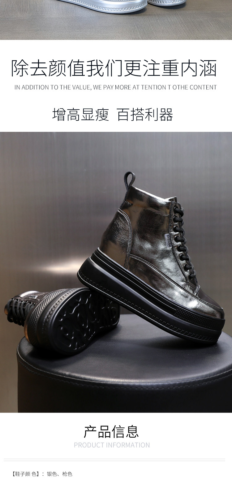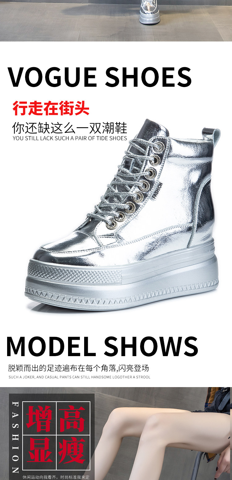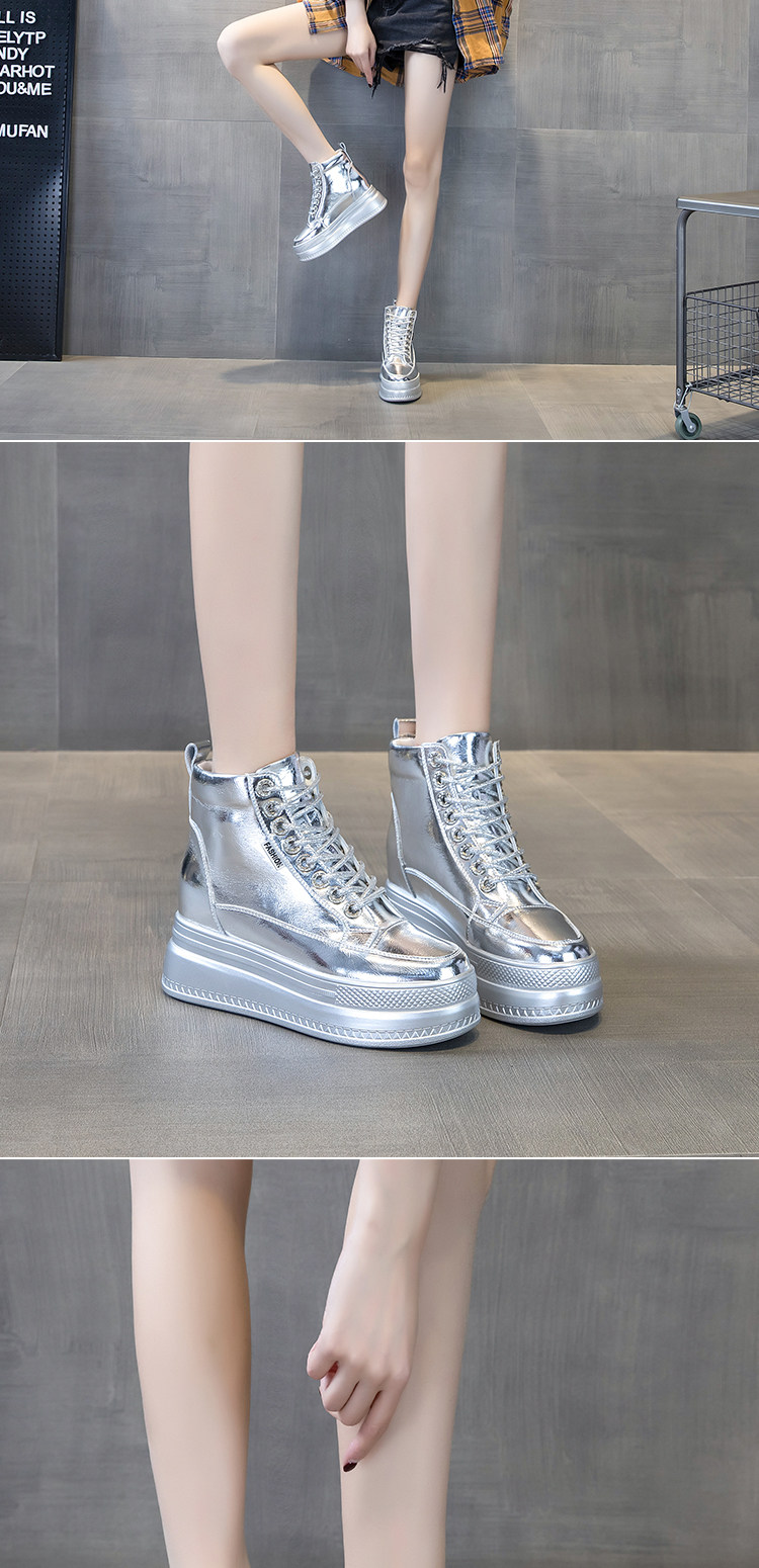 Celebrity Style Winter Women's Shoes, High-Top with Plush Lining, 2025 Thick-Soled, 8cm Hidden Heel, Versatile Genuine Leather Casual Shoes for Women