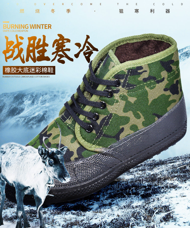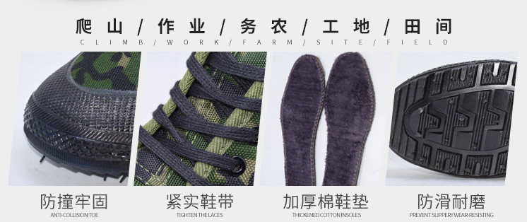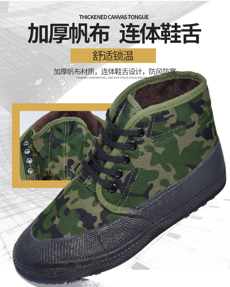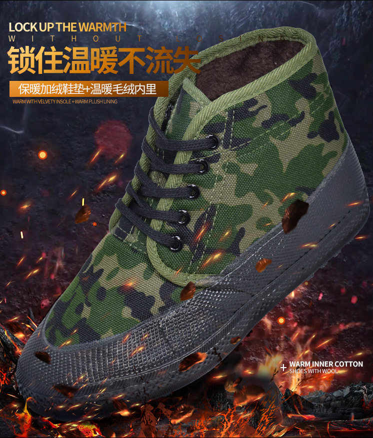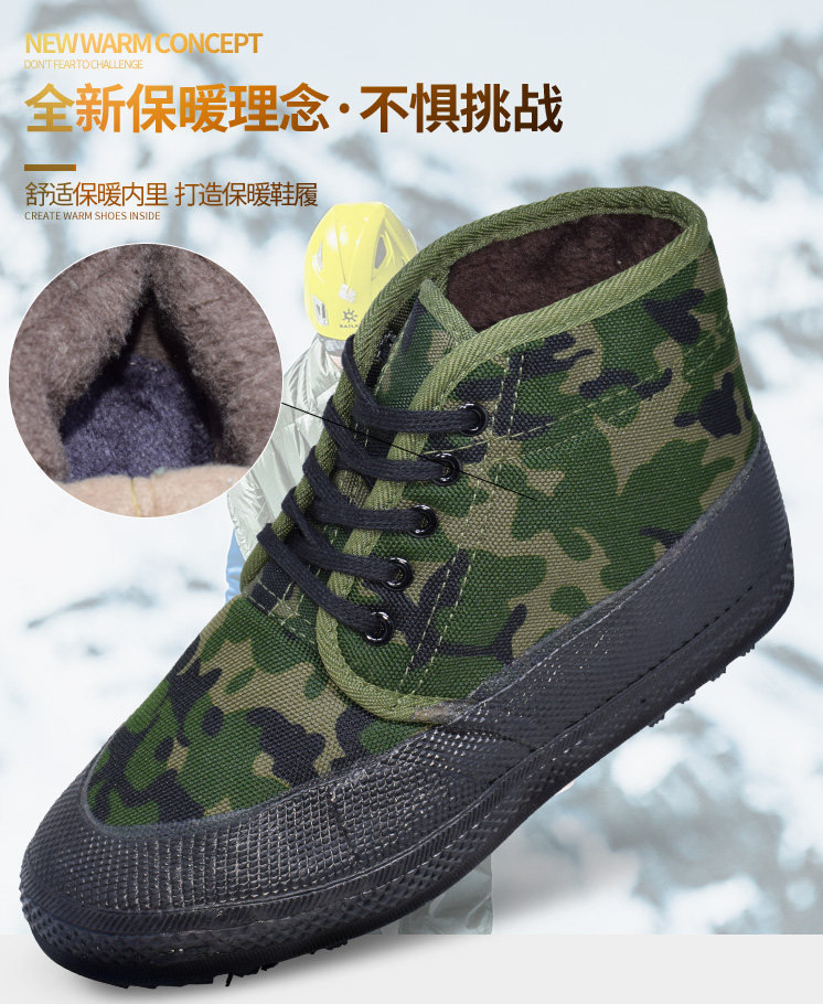 Jiefang Shoes, Cotton Shoes with Added Fleece and Thickened Camouflage Design, Safety Shoes for Construction Sites, Thickened Snow Boots, Non-Slip and Wear-Resistant Cotton Rubber Shoes