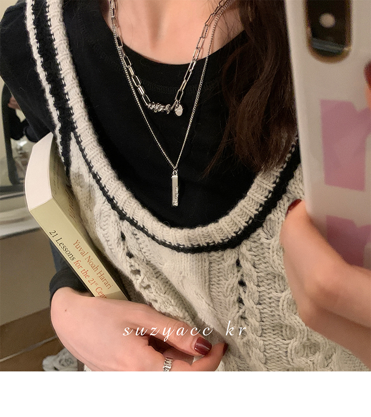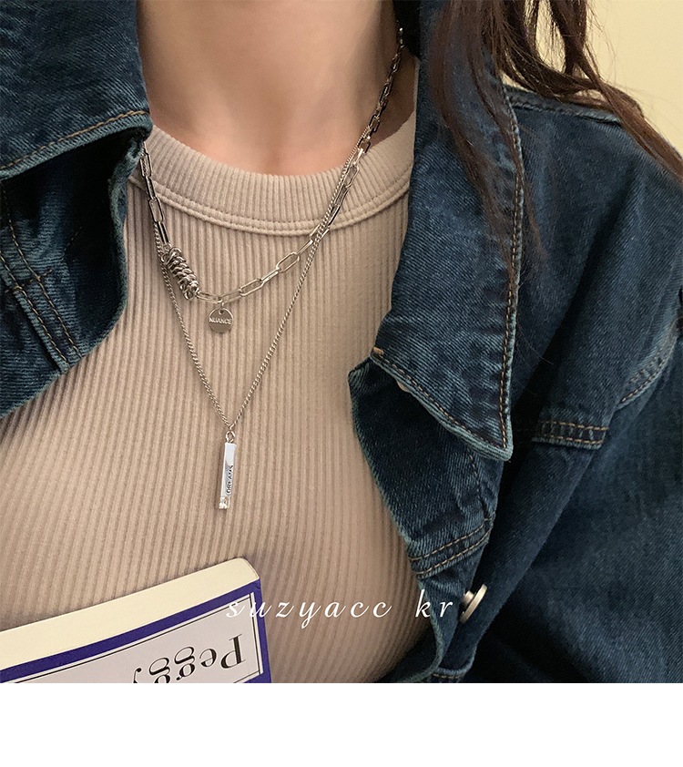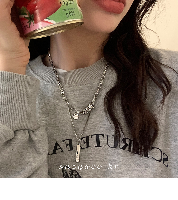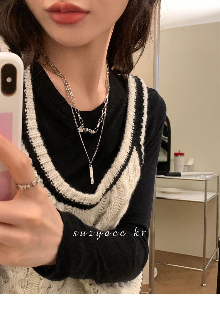 Suzyacc Kr Niche Design Stacked Double-Layer Pendant Necklace 2024 New Female Personalized Hip-Hop Sweater Chain