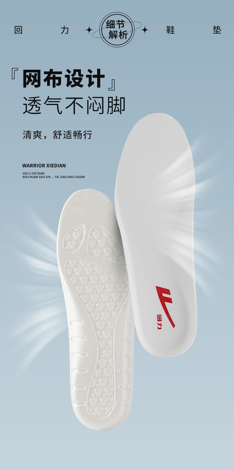 Hui Li Official Flagship Store Official Website Genuine Insoles Men's Sports Soft Shock-Absorbing Insoles Unisex Sports Insoles