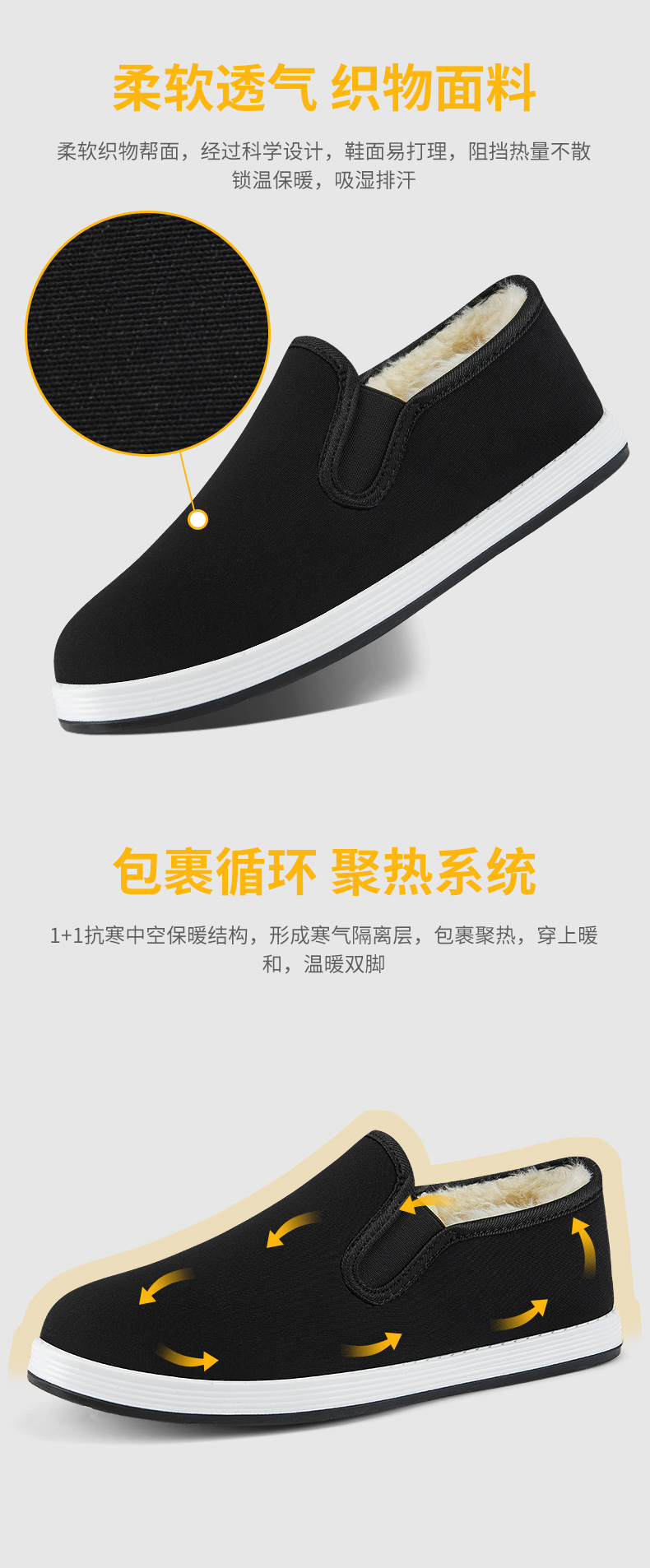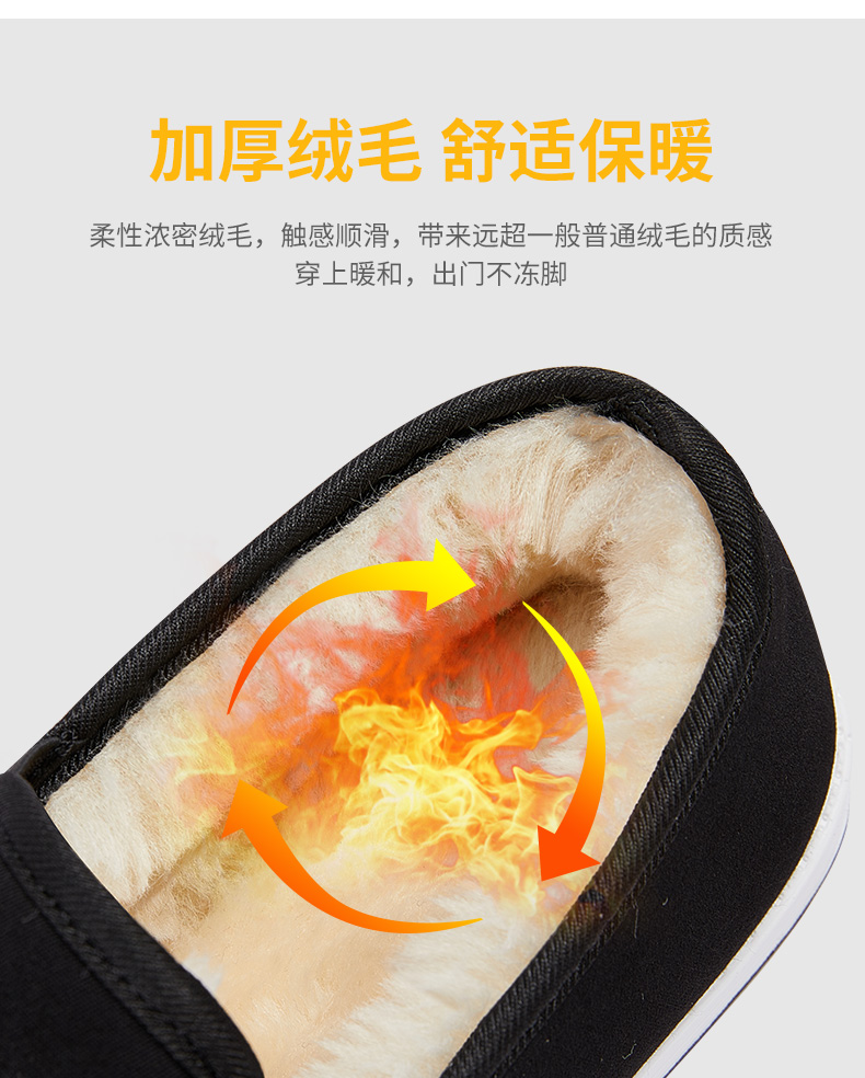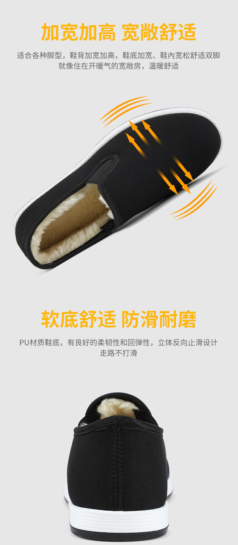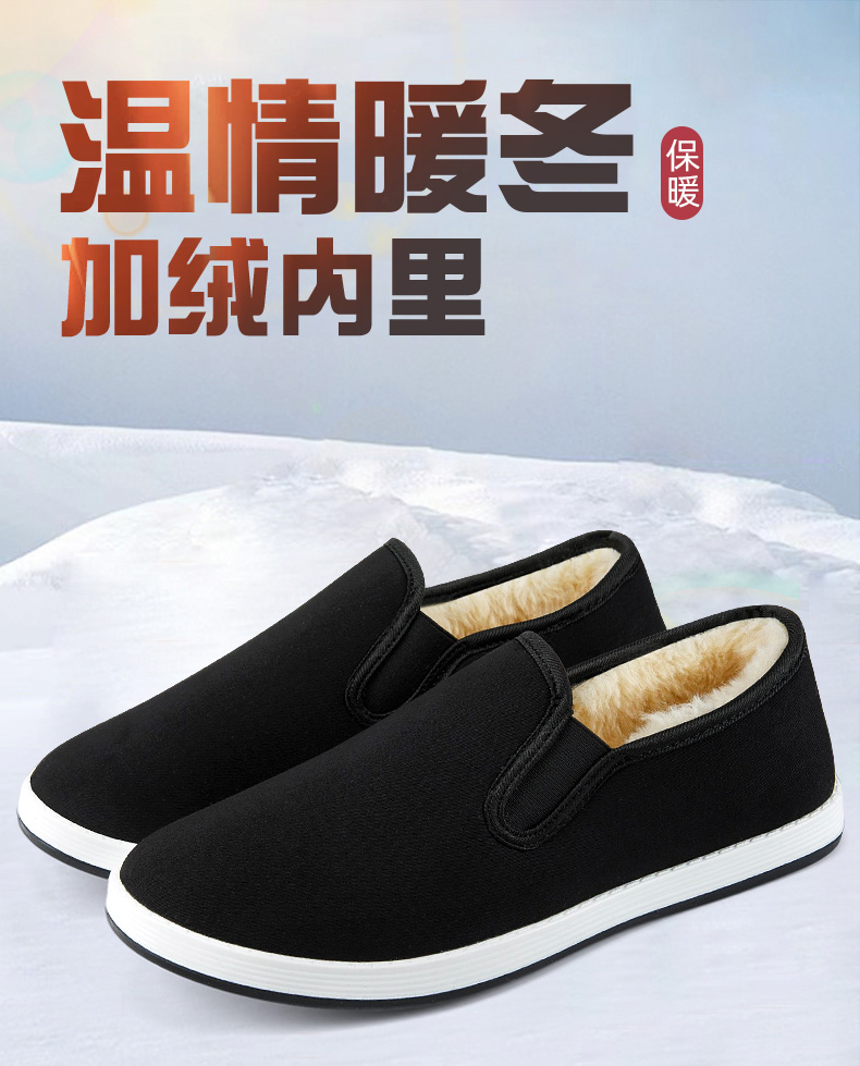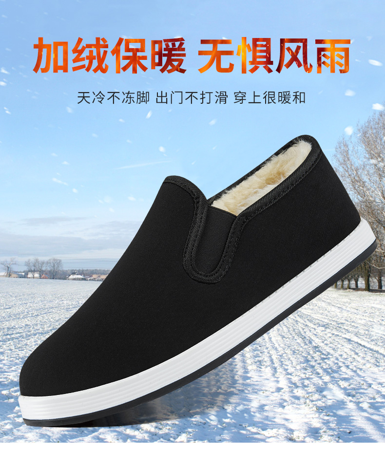 Pull-Back Style Old Beijing Cotton Shoes for Men, Winter Fleece-Lined New Model, Non-Slip, Warm Slip-On Cloth Shoes for Middle-Aged and Elderly Men, Dad Shoes