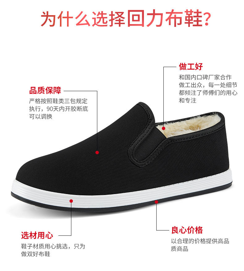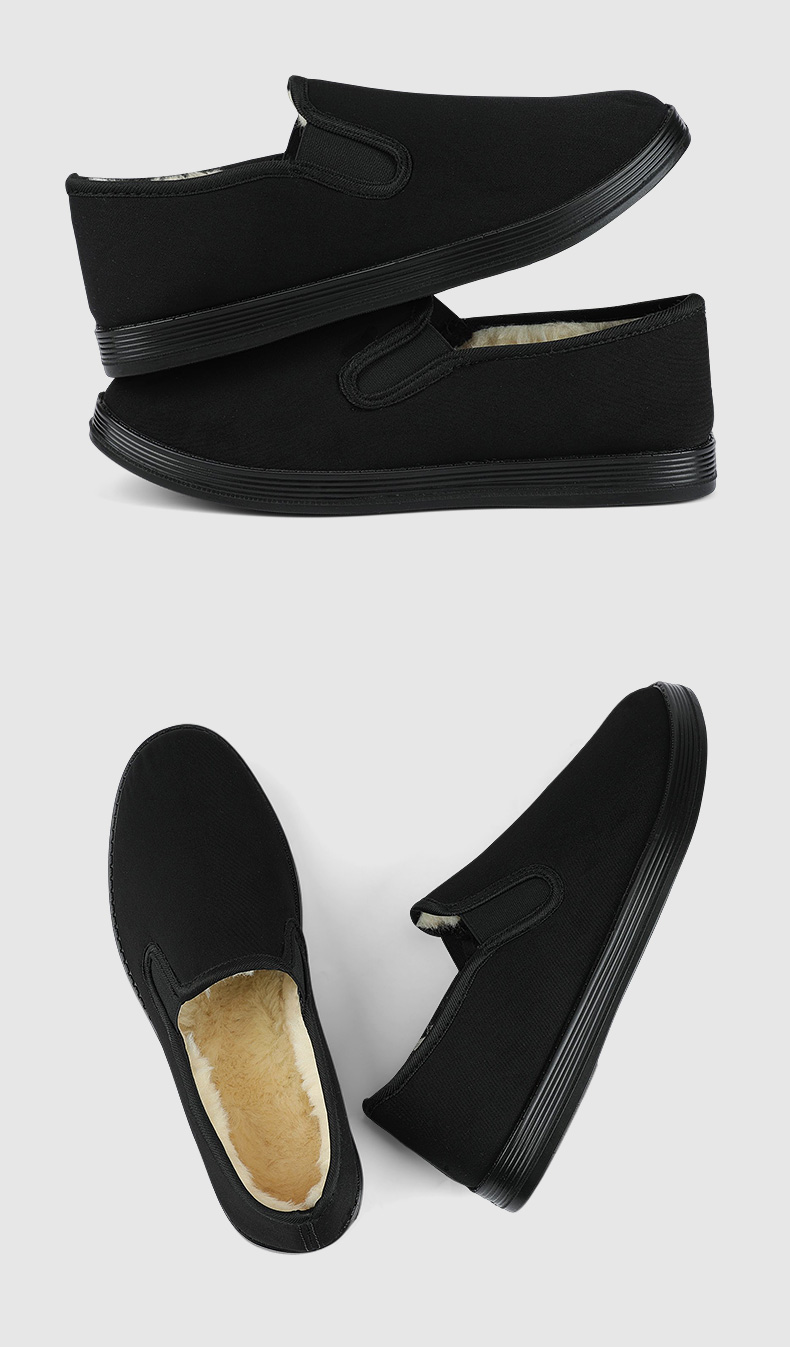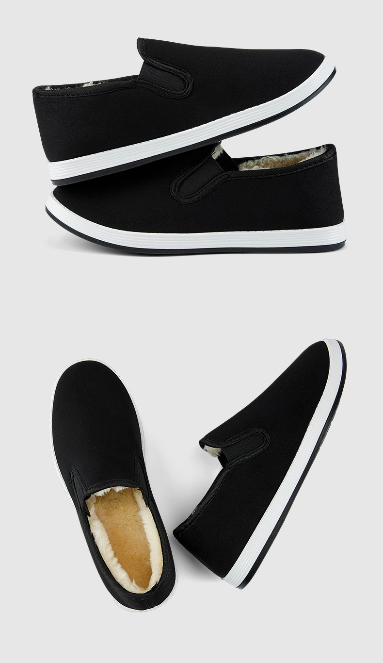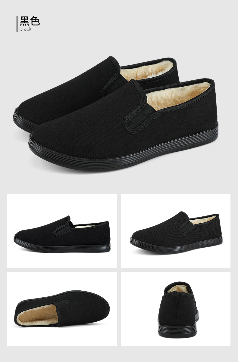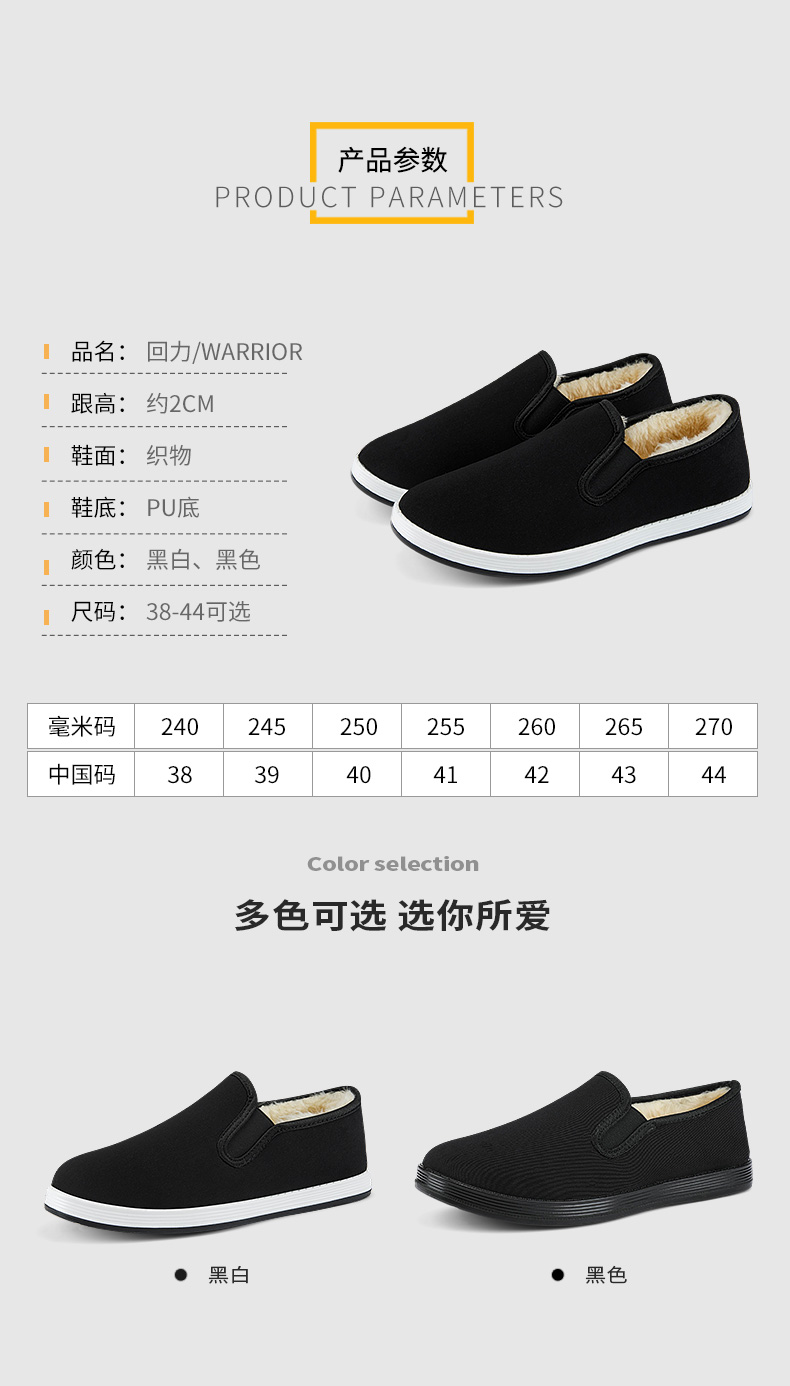 Pull-Back Style Old Beijing Cotton Shoes for Men, Winter Fleece-Lined New Model, Non-Slip, Warm Slip-On Cloth Shoes for Middle-Aged and Elderly Men, Dad Shoes