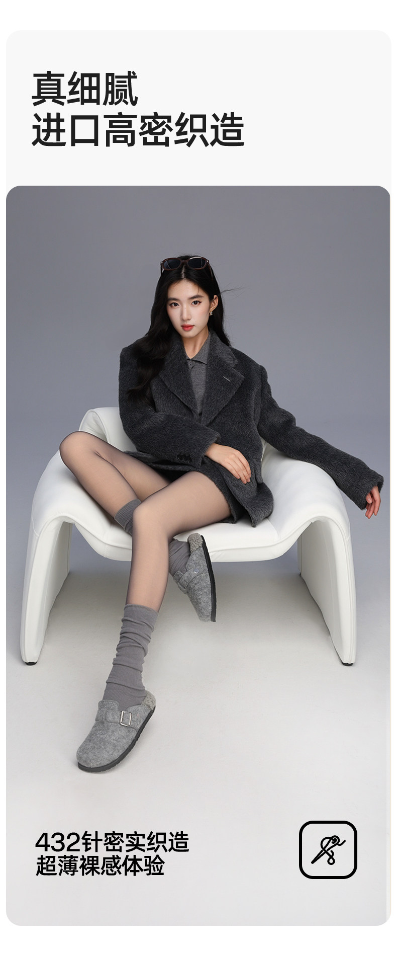 【Same Style as Yang Mi】Xiao Ye Hezi Double-Layer Black Silk Stockings, Autumn and Winter Slimming Black Translucent Skin-Tone Fleece-Lined Pantyhose