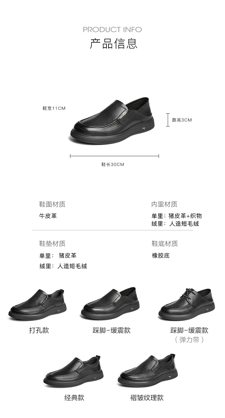 Belle Men's Soft Sole Business Casual Leather Shoes Autumn and Winter Slip-On Genuine Leather Dad Shoes with Fleece A1010Am3