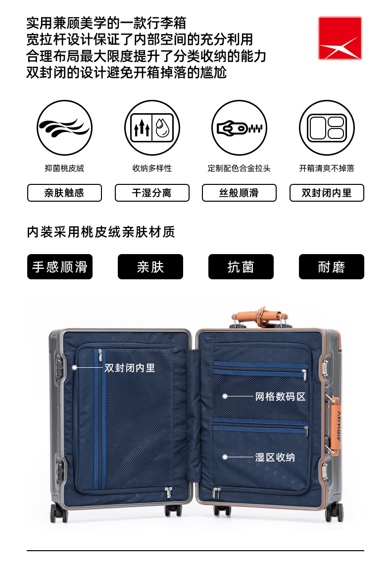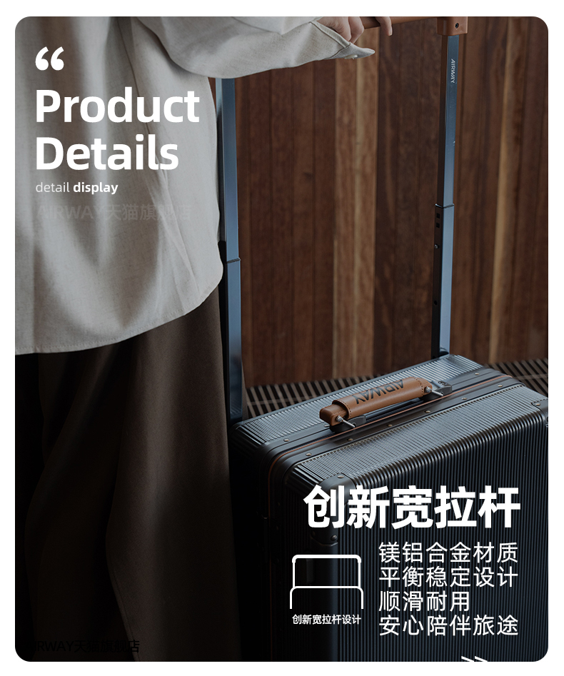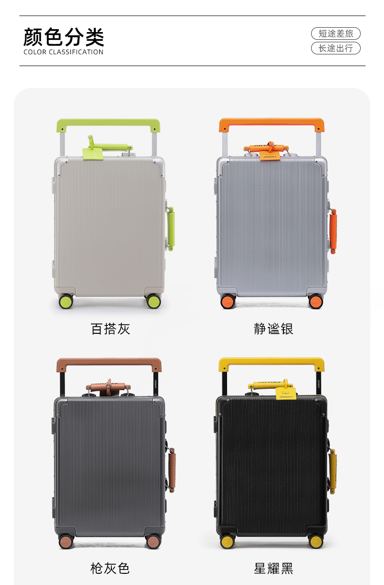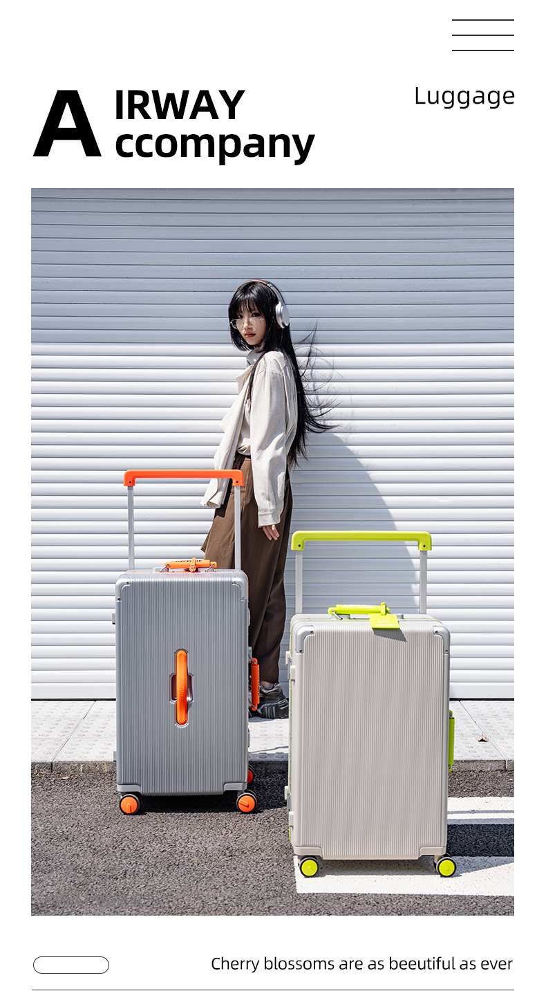Airway Aluminum Frame Suitcase for Women 20inch Carry-On Suitcase with Silent Universal Wheels and Wide Handle, Export Trolley Case for Men 24Pc