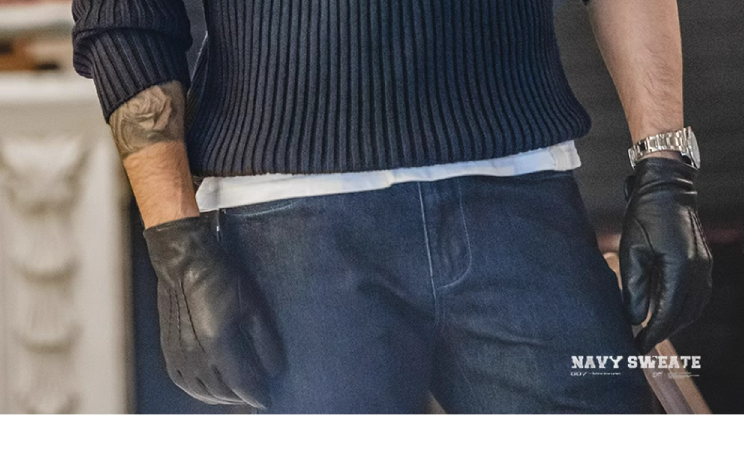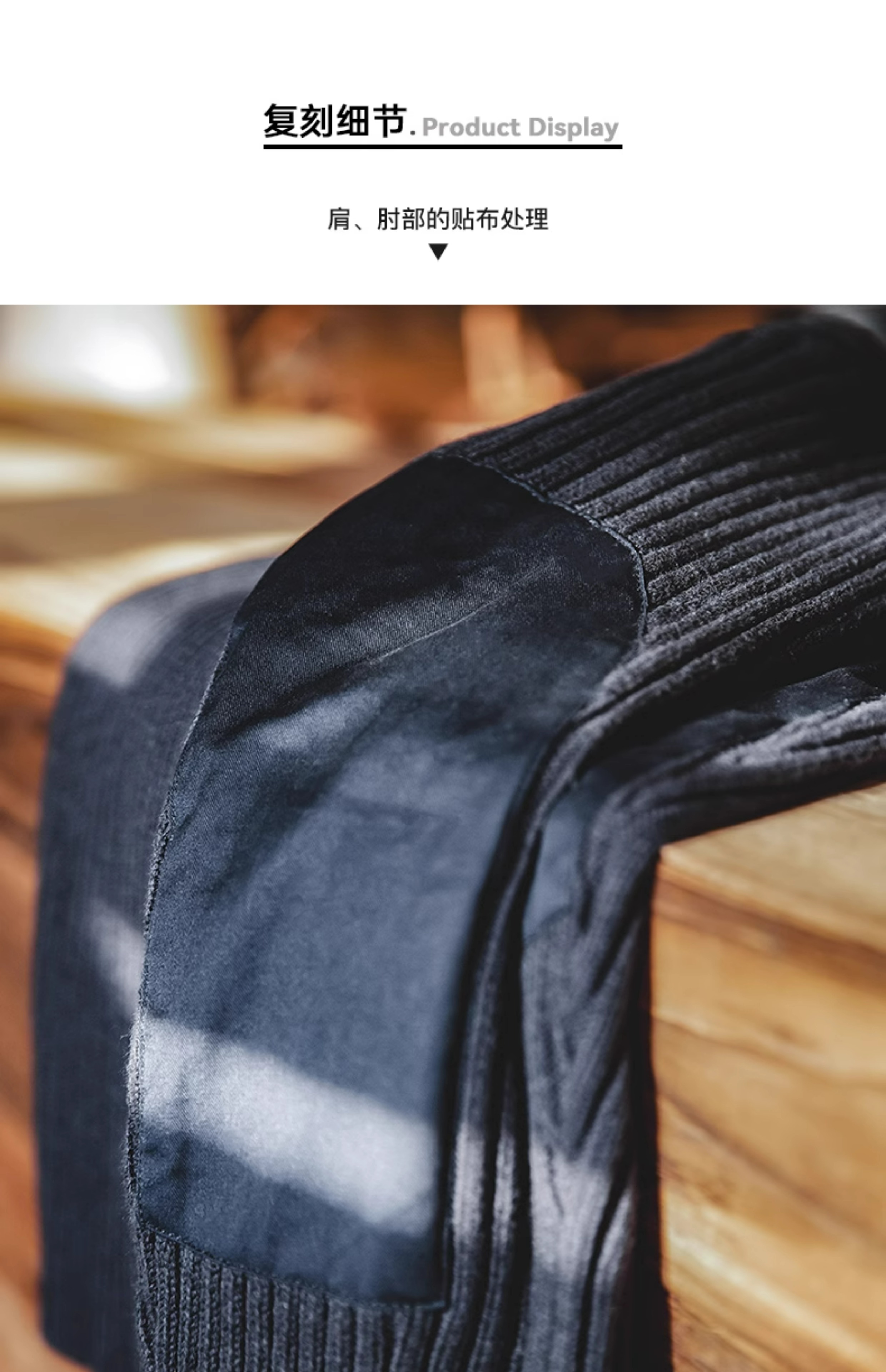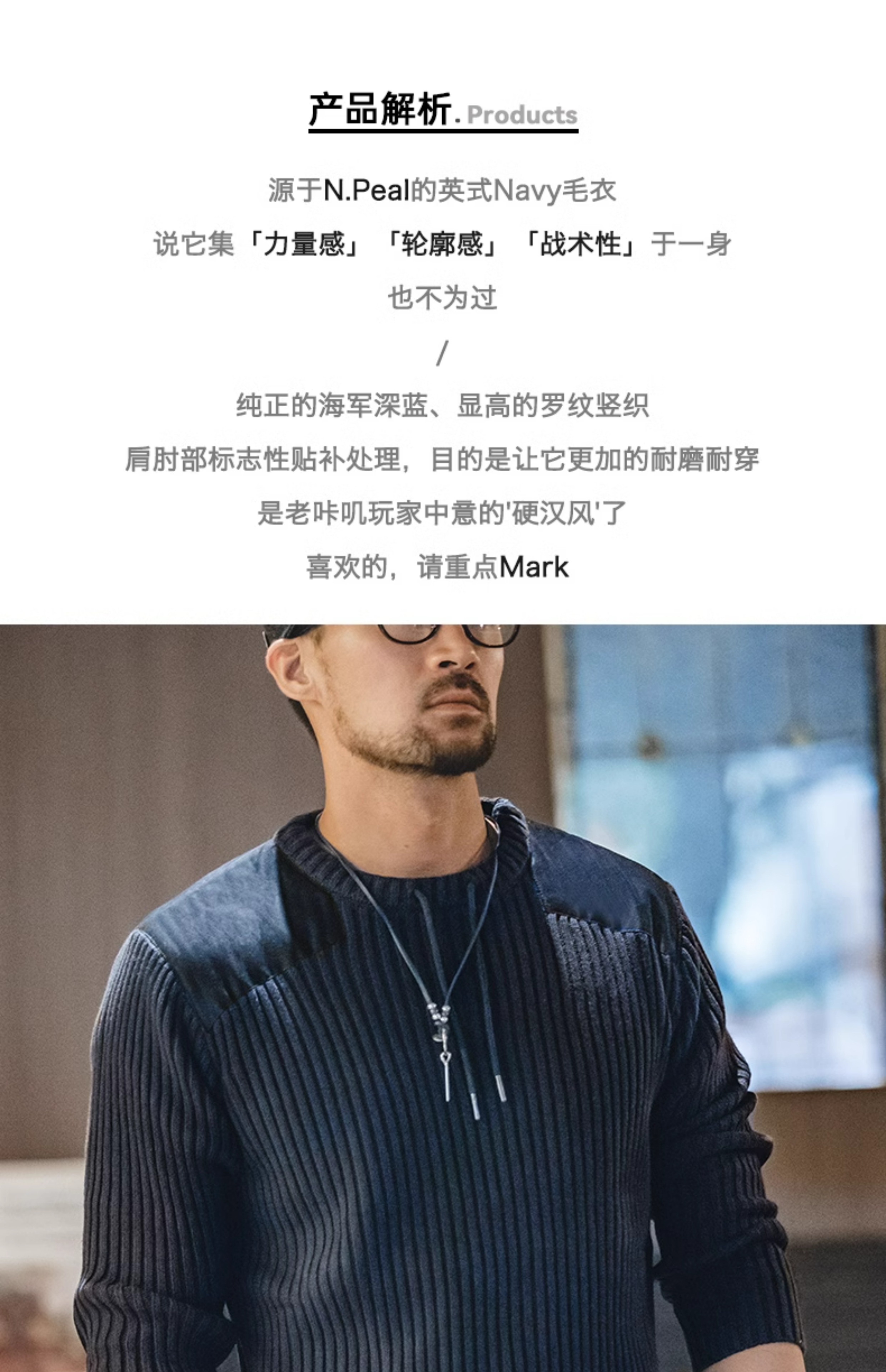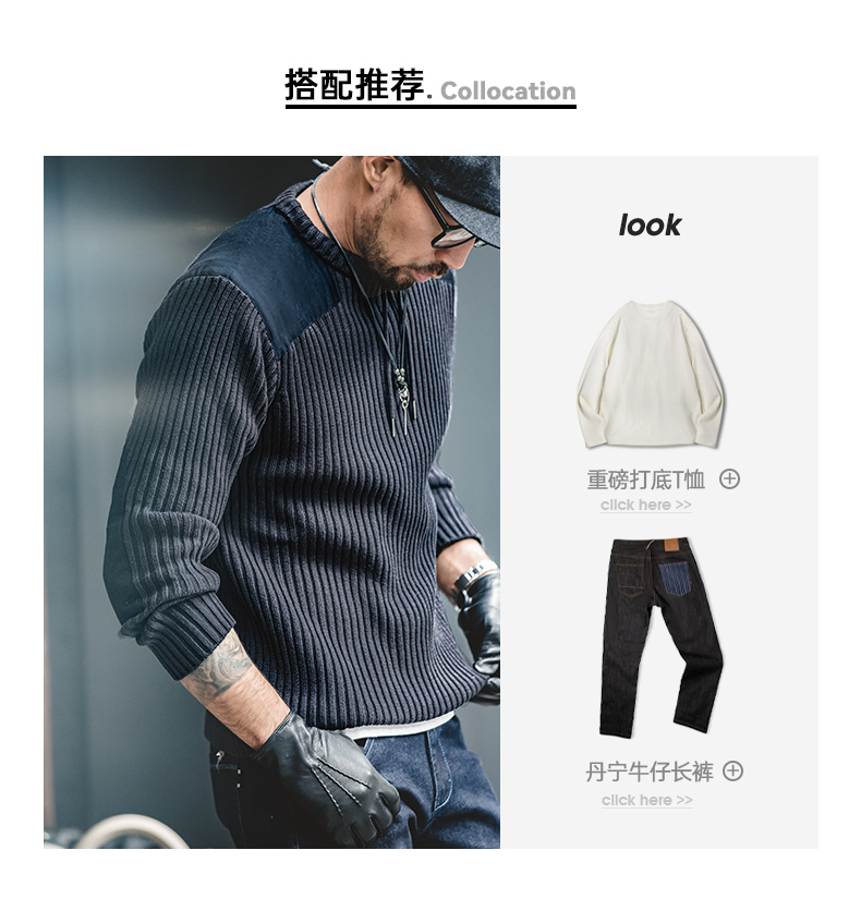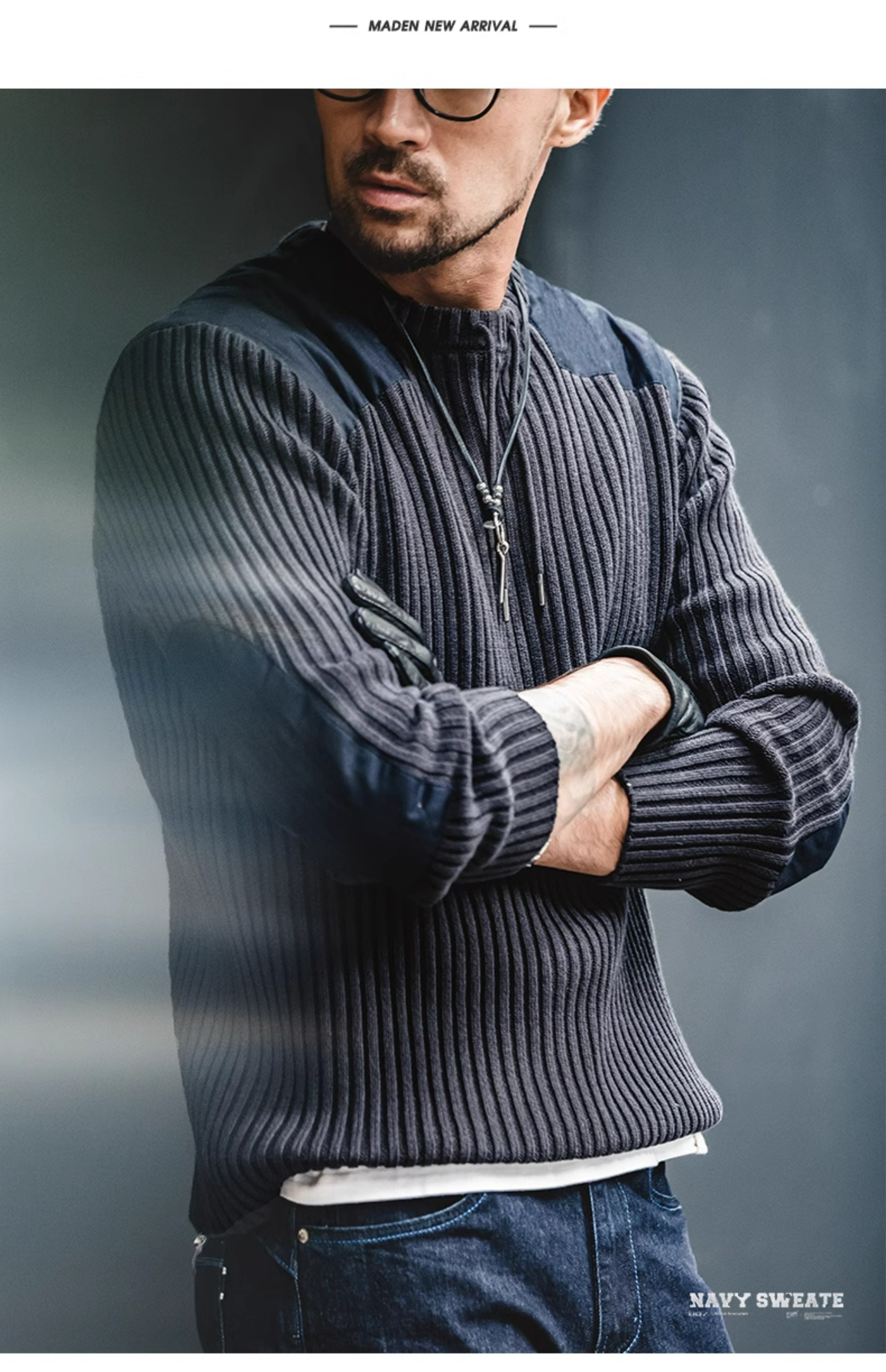 Madden Workwear American Retro Vertical Stripe Patchwork Sweater Round Neck Slim Fit Tough Guy Style Tactical Knitwear for Men Autumn