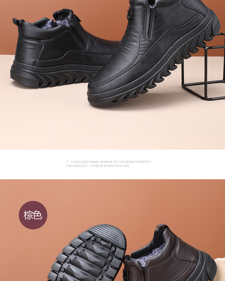 Old Beijing Cotton Shoes for Men, Winter Non-Slip, Fleece-Lined, Thickened Dad Shoes, Warm Shoes for Middle-Aged and Elderly Men, Elderly Cotton Shoes