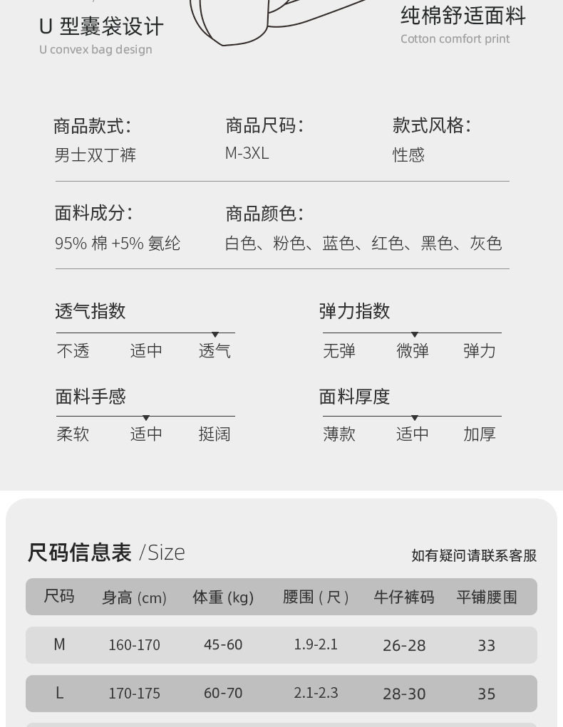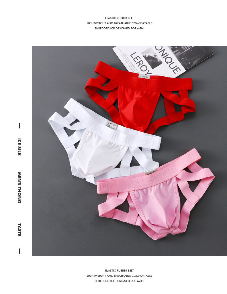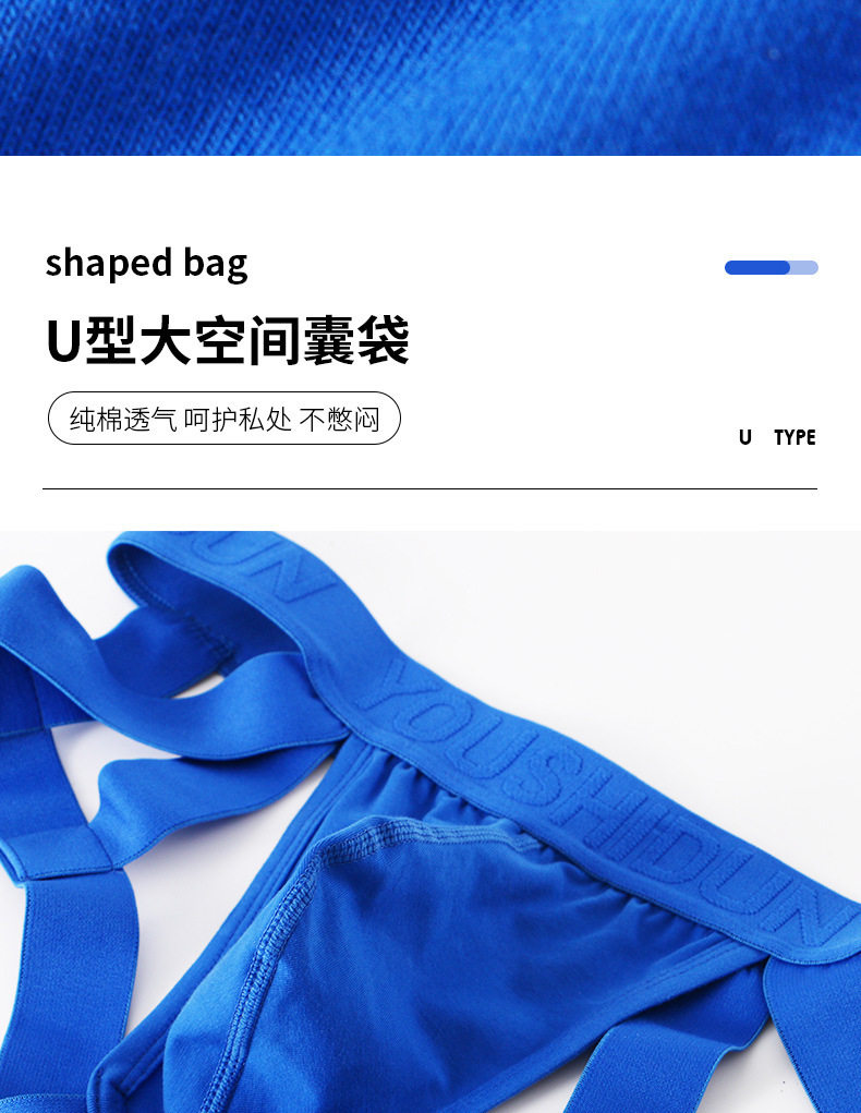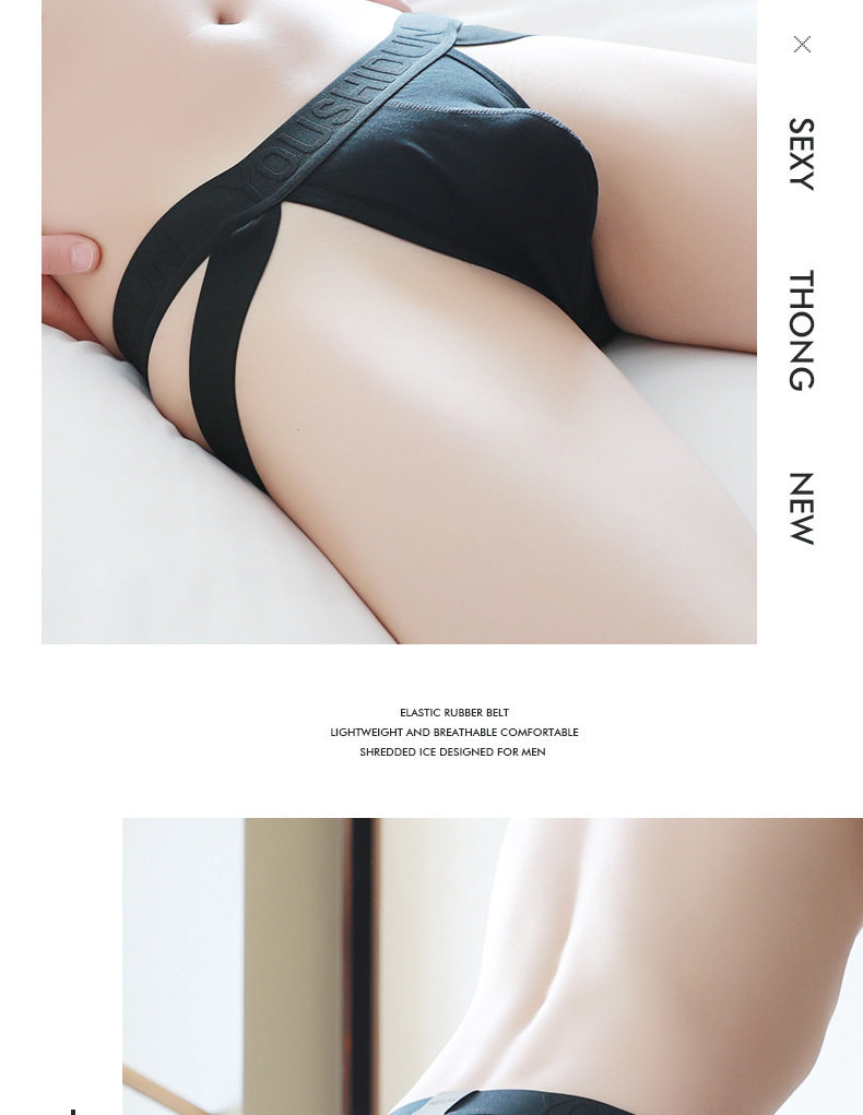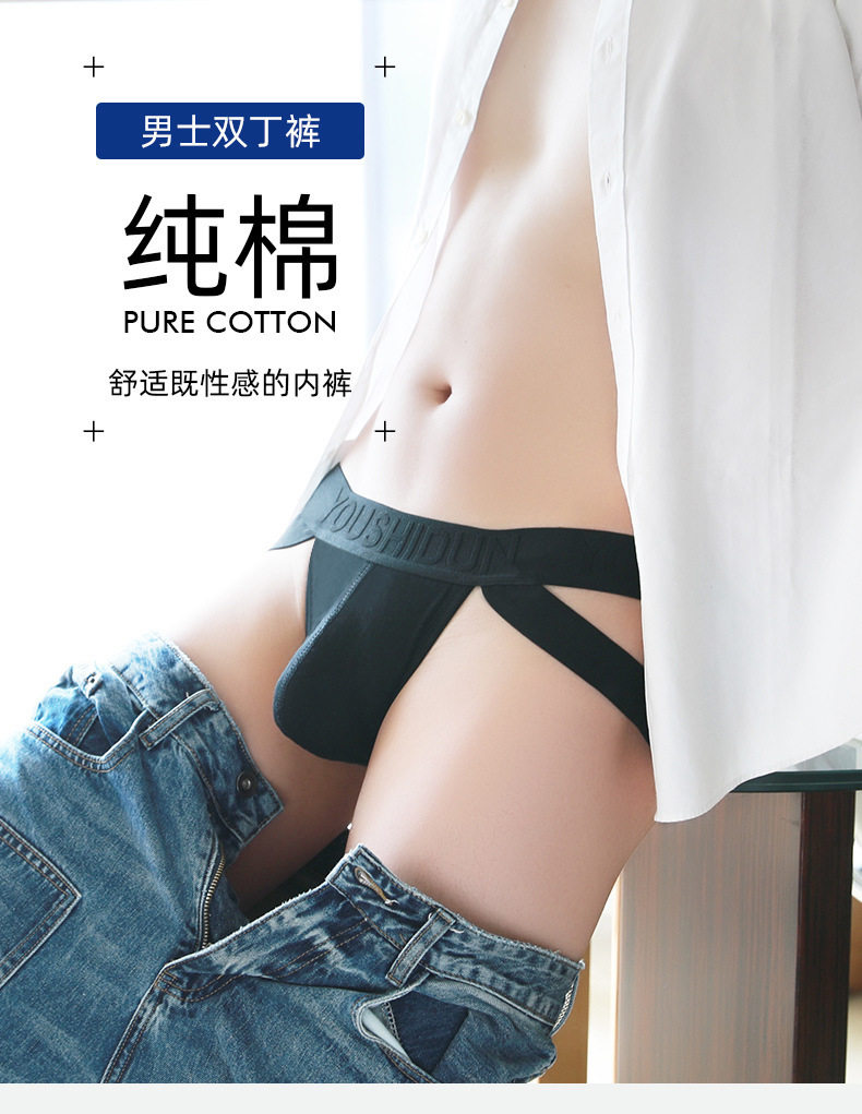 Pure Cotton Plus-Size Men's Double Thong Underwear, Sexy Low-Rise, Tight-Fitting, Breathable, Three-Dimensional Pouch, Back Hollow, Ventilated, Butt-Lifting Briefs