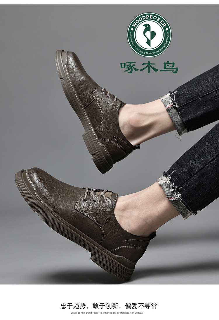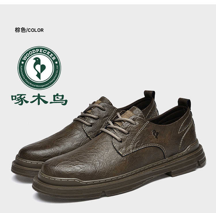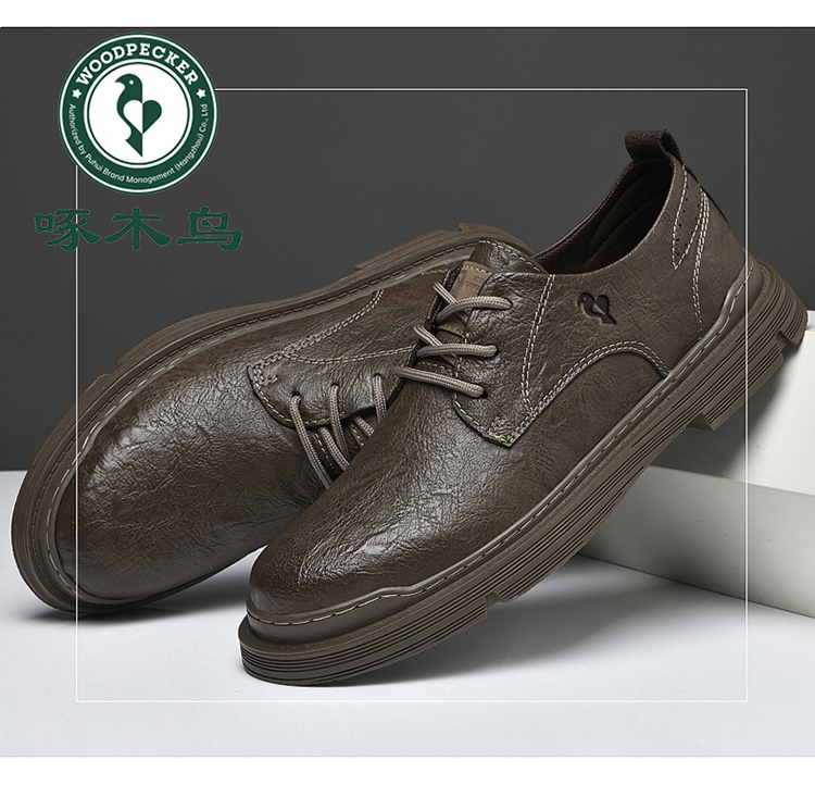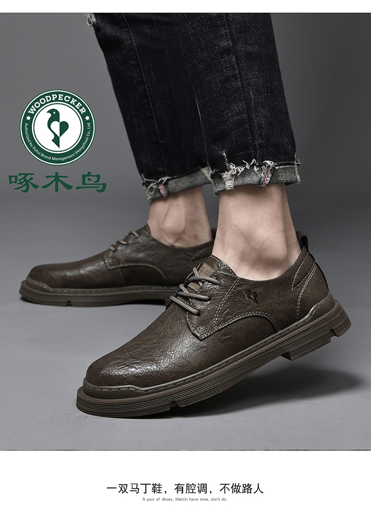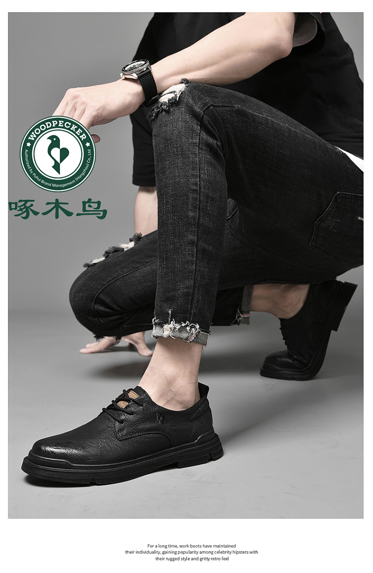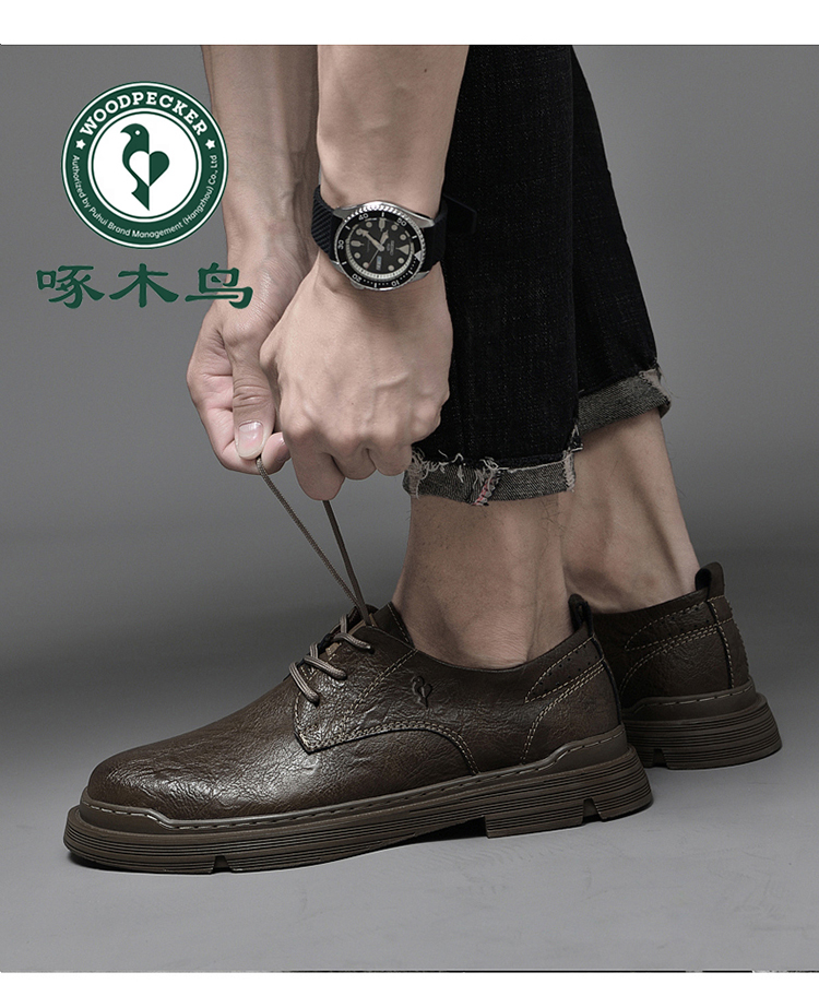 Woodpecker Genuine Leather Men's Shoes 2025 Spring British Style Trendy Versatile Work Shoes Low-Top Non-Slip Casual Leather Shoes for Men