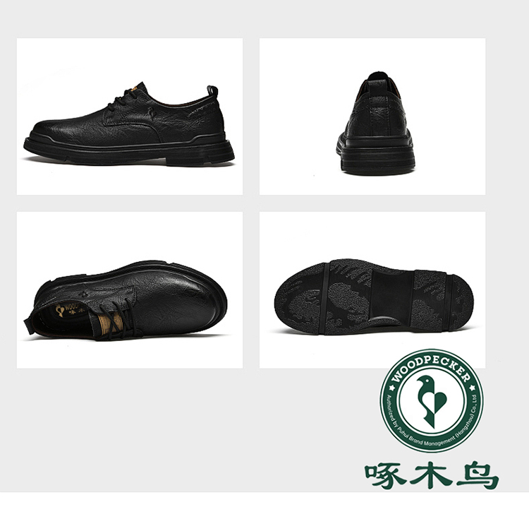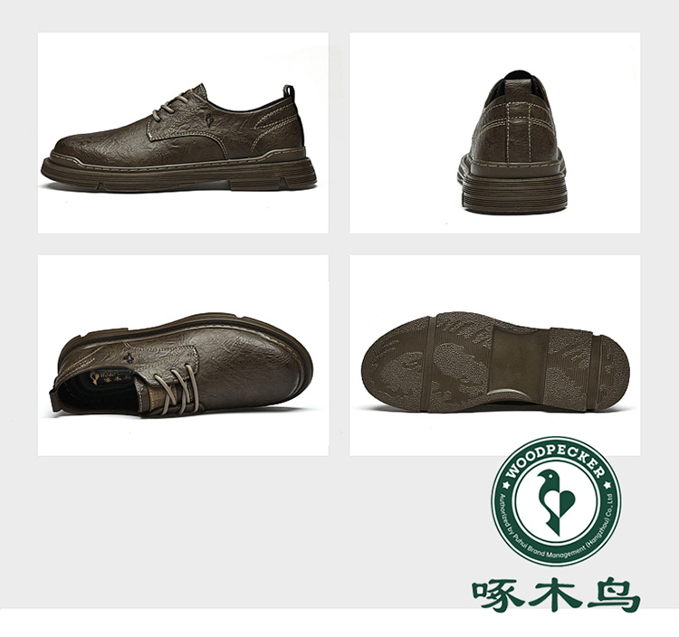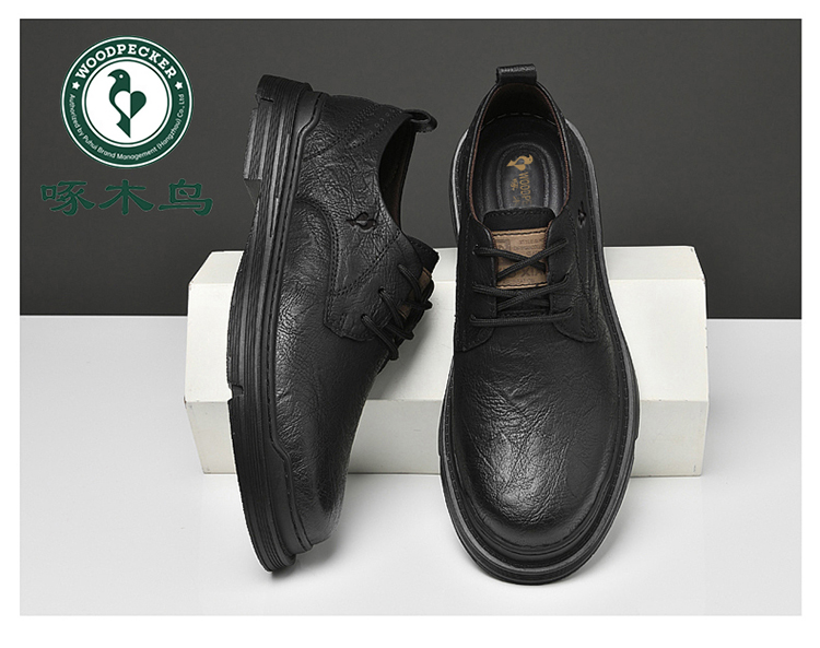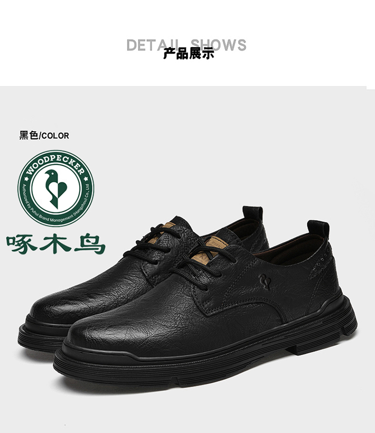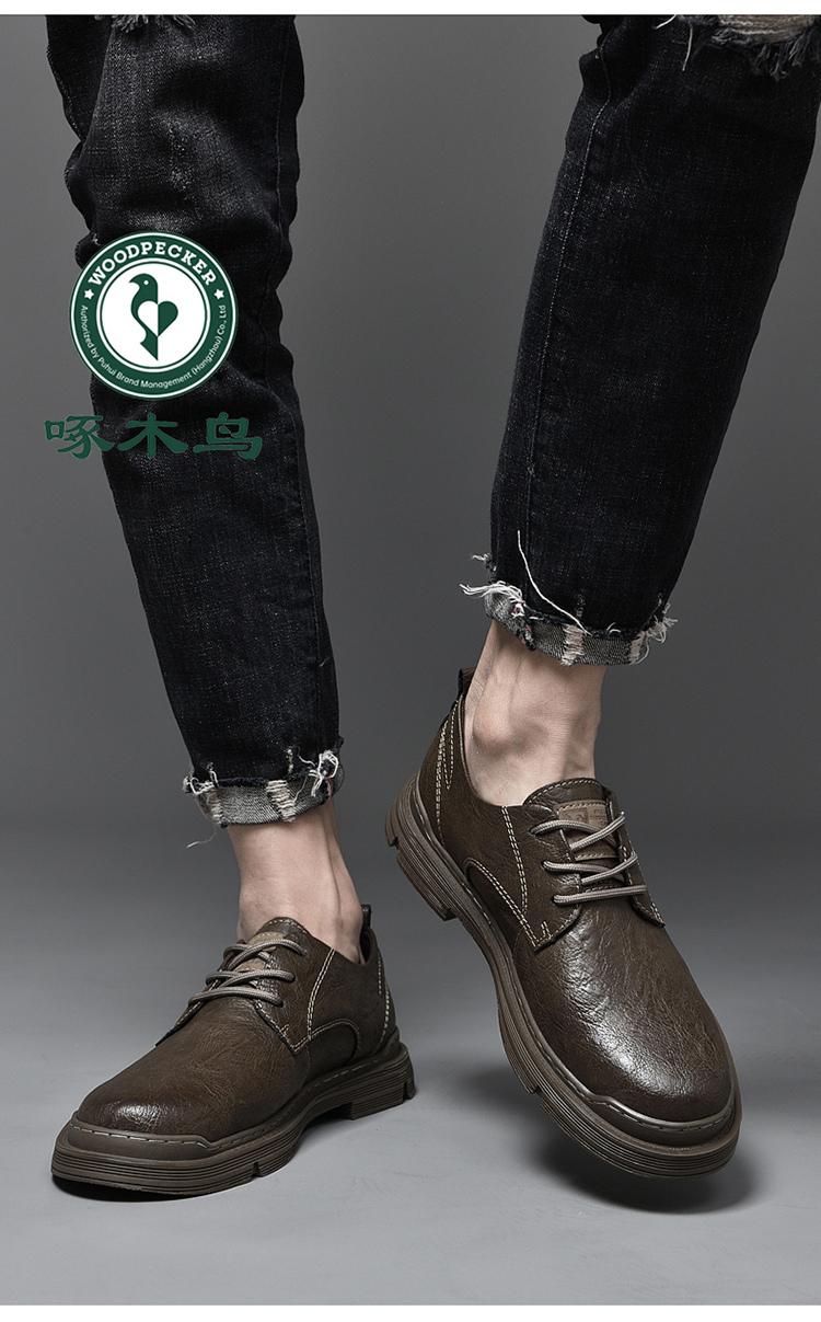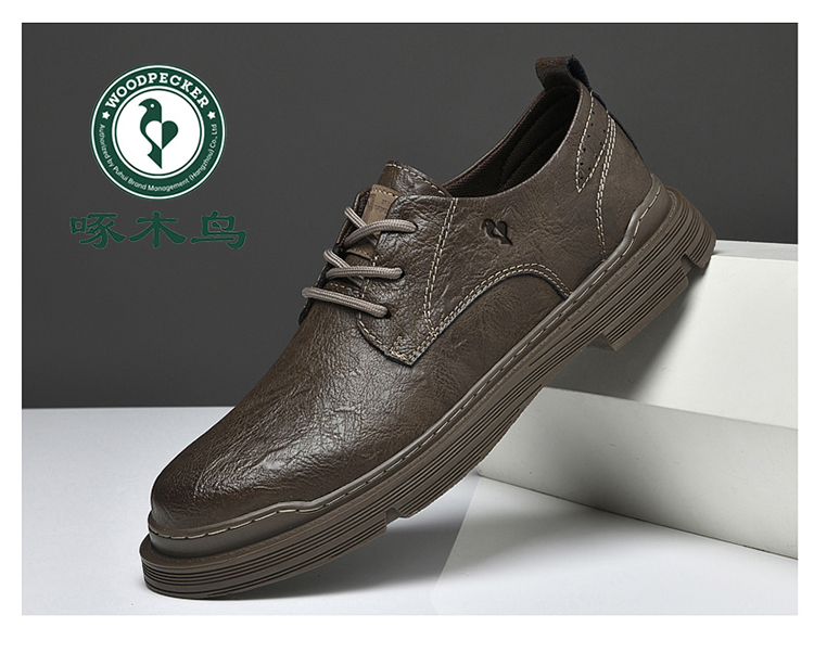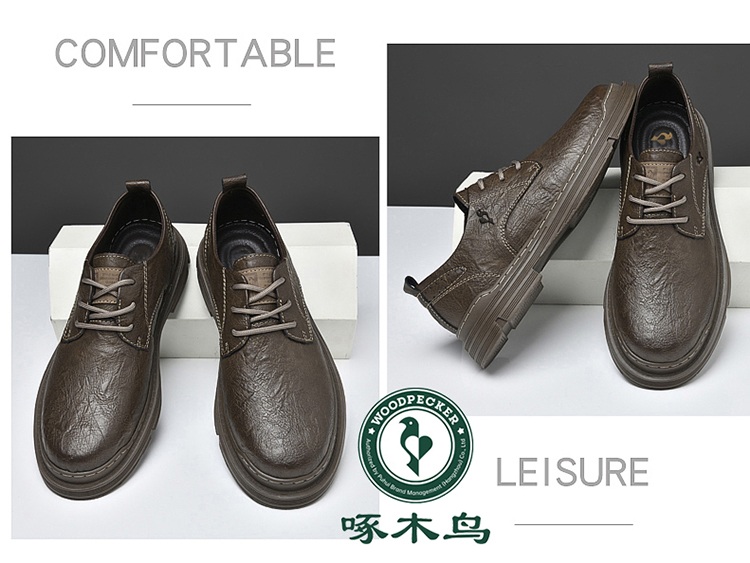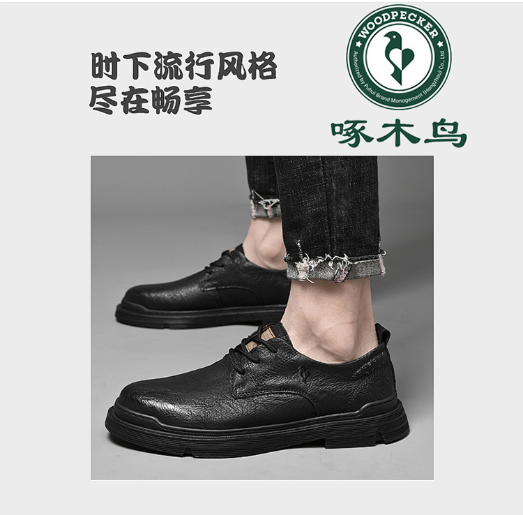 Woodpecker Genuine Leather Men's Shoes 2025 Spring British Style Trendy Versatile Work Shoes Low-Top Non-Slip Casual Leather Shoes for Men