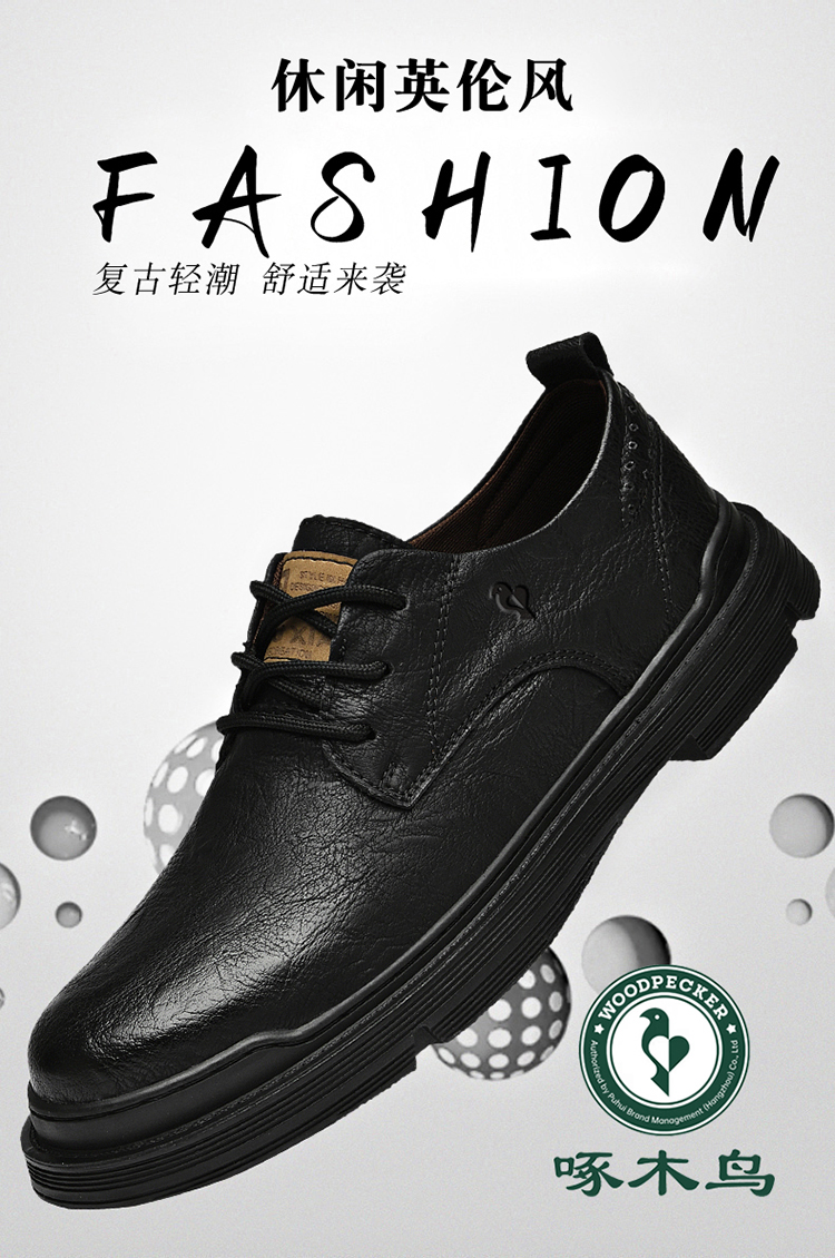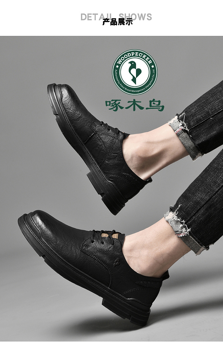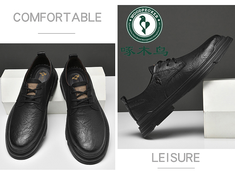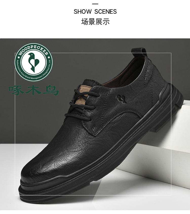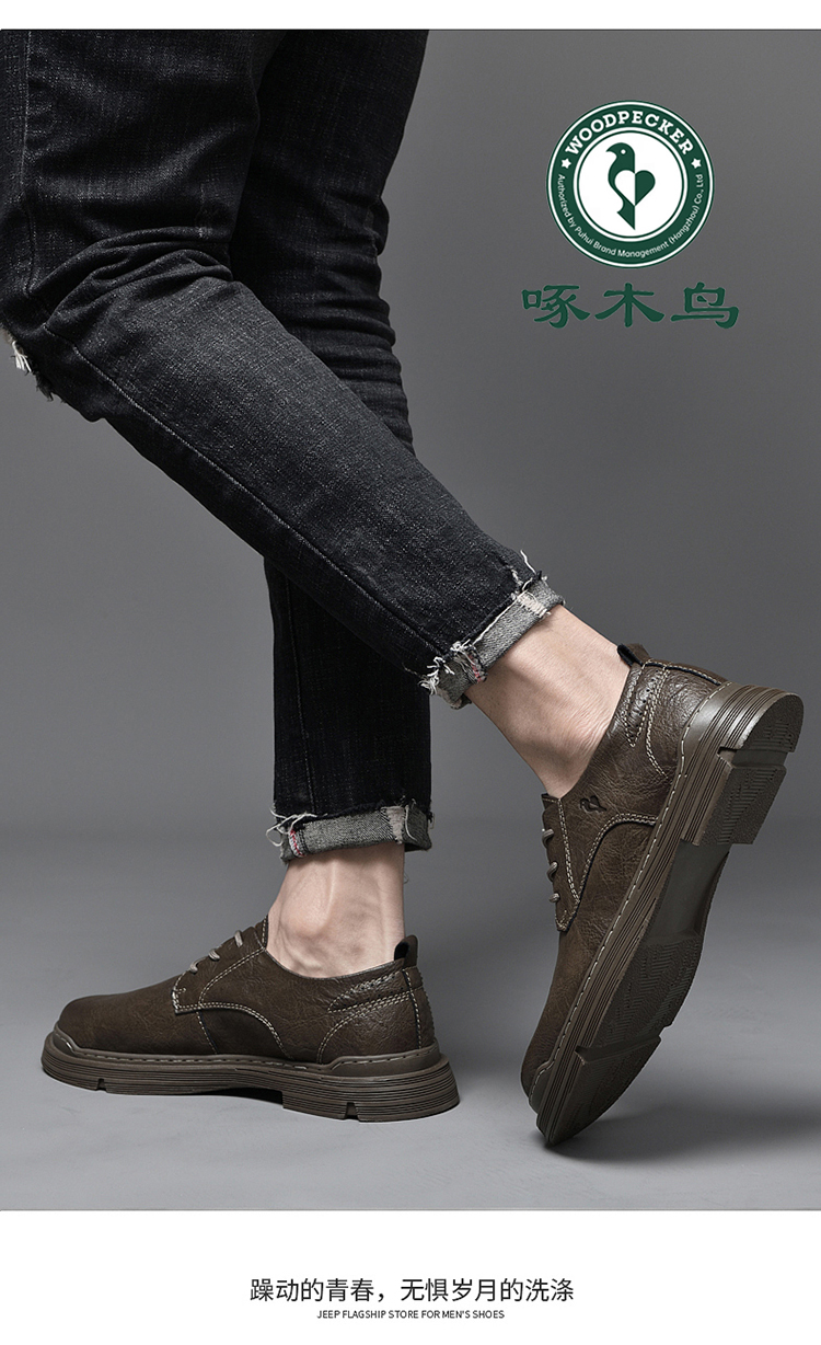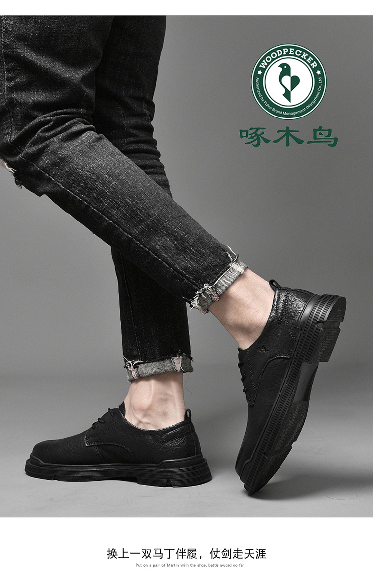 Woodpecker Genuine Leather Men's Shoes 2025 Spring British Style Trendy Versatile Work Shoes Low-Top Non-Slip Casual Leather Shoes for Men