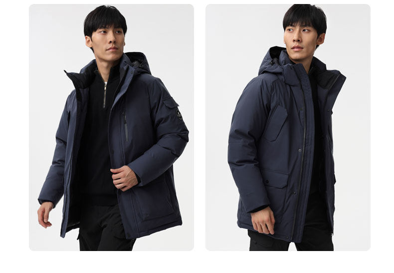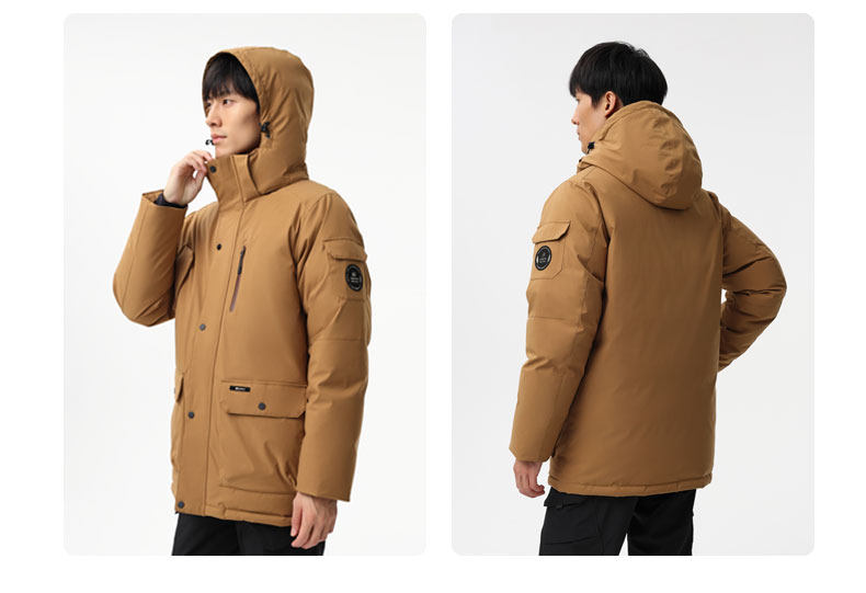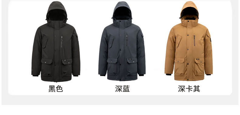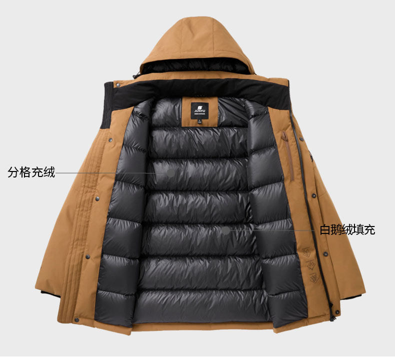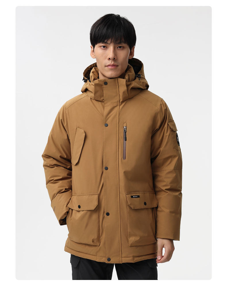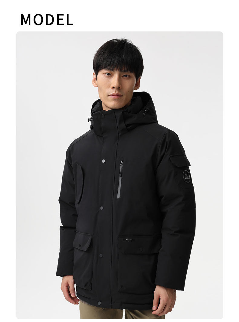 Junyu 800 Fill Power Goose down Jacket for Men, Mid-Length, Winter Cold-Resistant, Thickened, Warm, Workwear Style down Jacket, Men's Coat 159