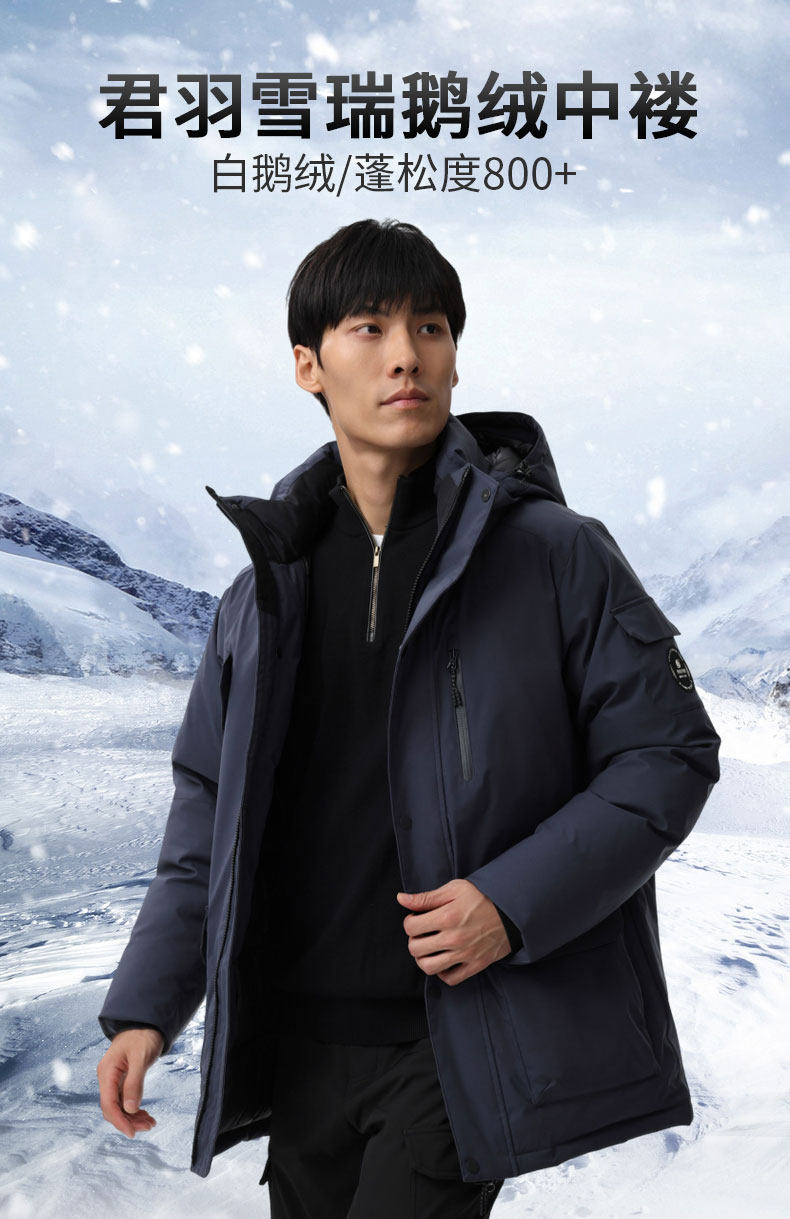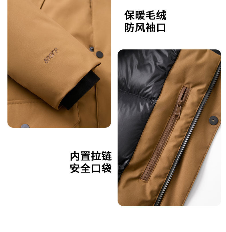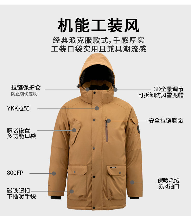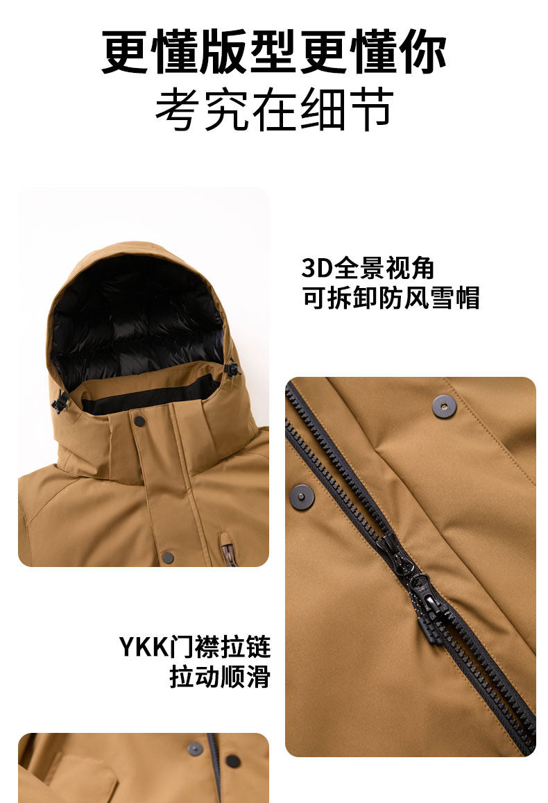 Junyu 800 Fill Power Goose down Jacket for Men, Mid-Length, Winter Cold-Resistant, Thickened, Warm, Workwear Style down Jacket, Men's Coat 159