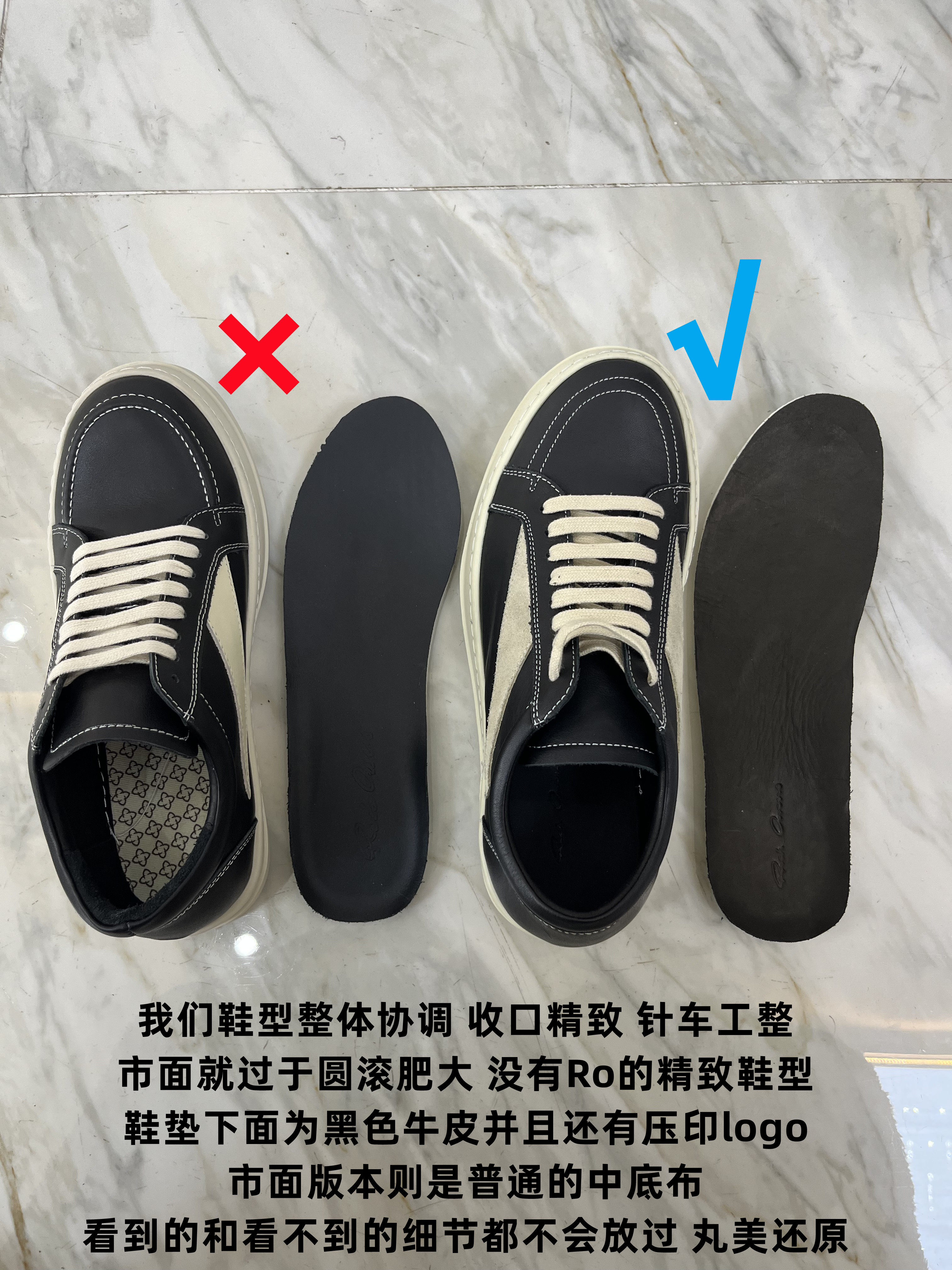 24 New Models of Rick Ocean Ro Shoes, Self-Designed Main Line, New Leather Surface, Dark Black and White, Low-Top, Niche Shoes
