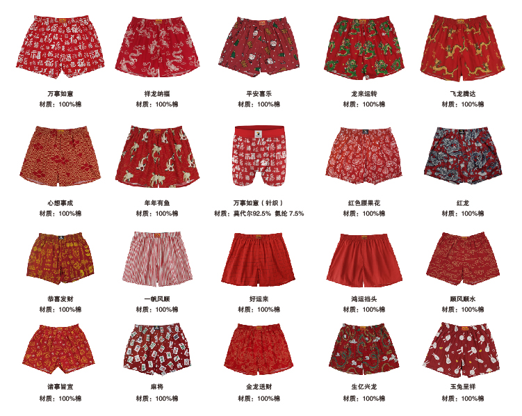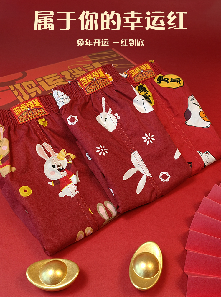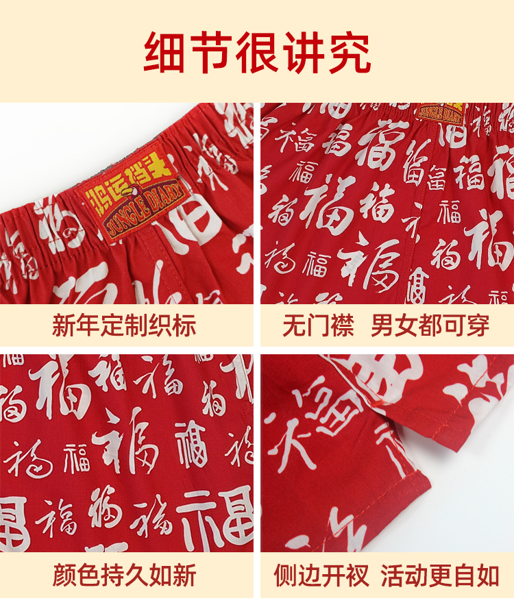 Year of the Snake, Zodiac Year, Red Boxer Briefs for Men, Pure Cotton, Loose Fit, Four-Corner Design, Fortune Character Print, Home Sleepwear Men's Underwear