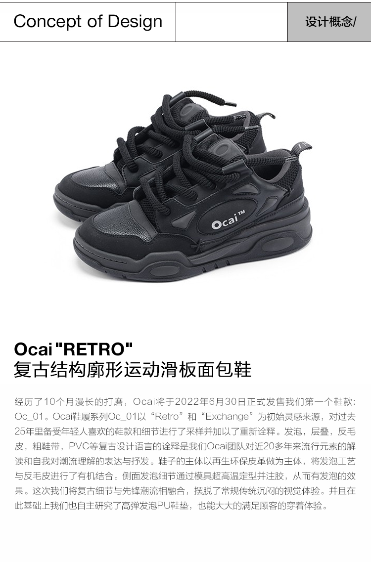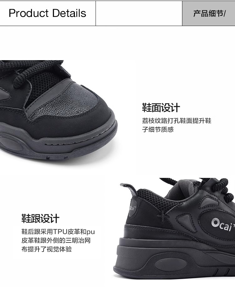 Ocai Black Warrior Edition Chunky Sneakers Casual Black National Trend Brand Dad Shoes Couple Sports Skateboard Shoes for Men