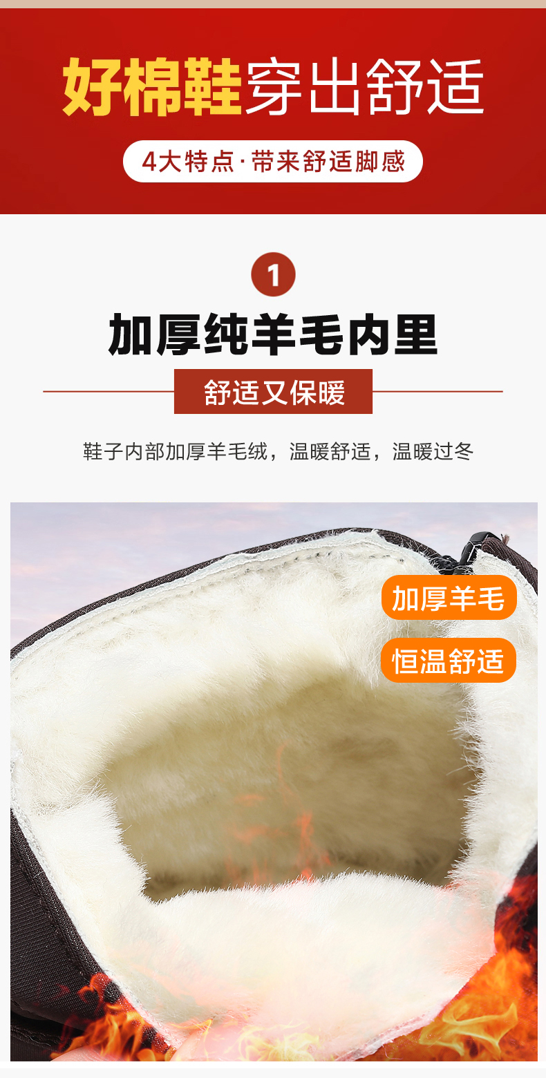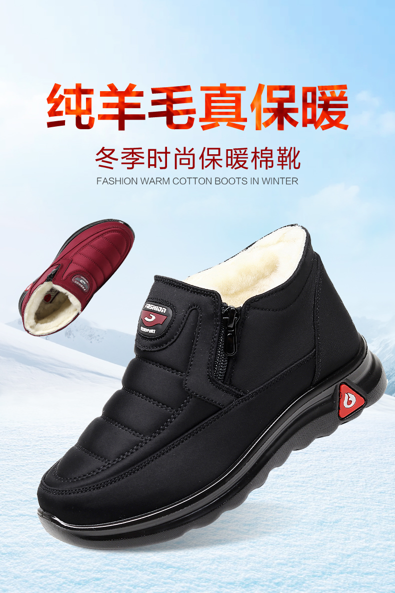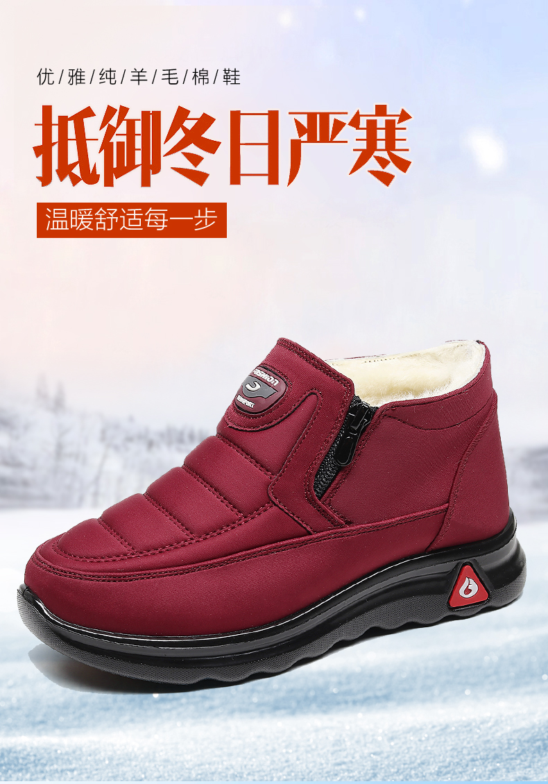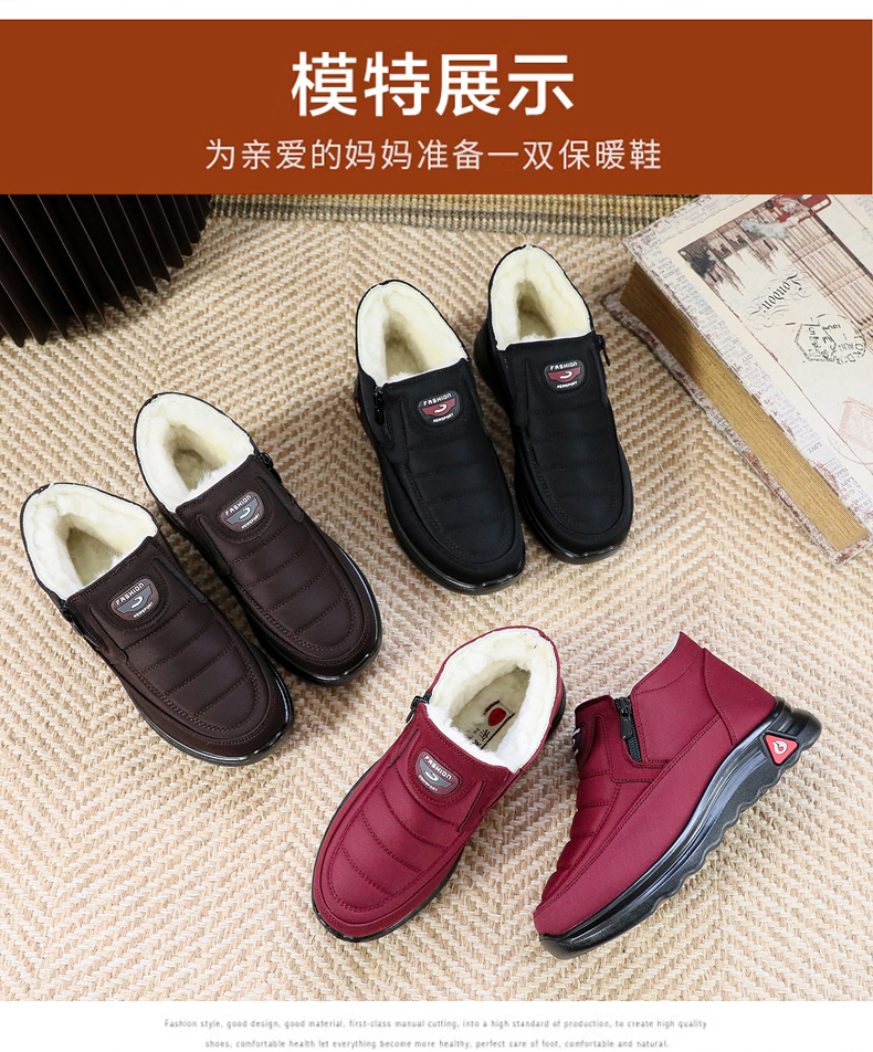 Winter Pure Wool Mother's Old Beijing Cloth Shoes, Non-Slip, Fleece-Lined, Warm, Soft-Soled Cotton Shoes for Elderly Women