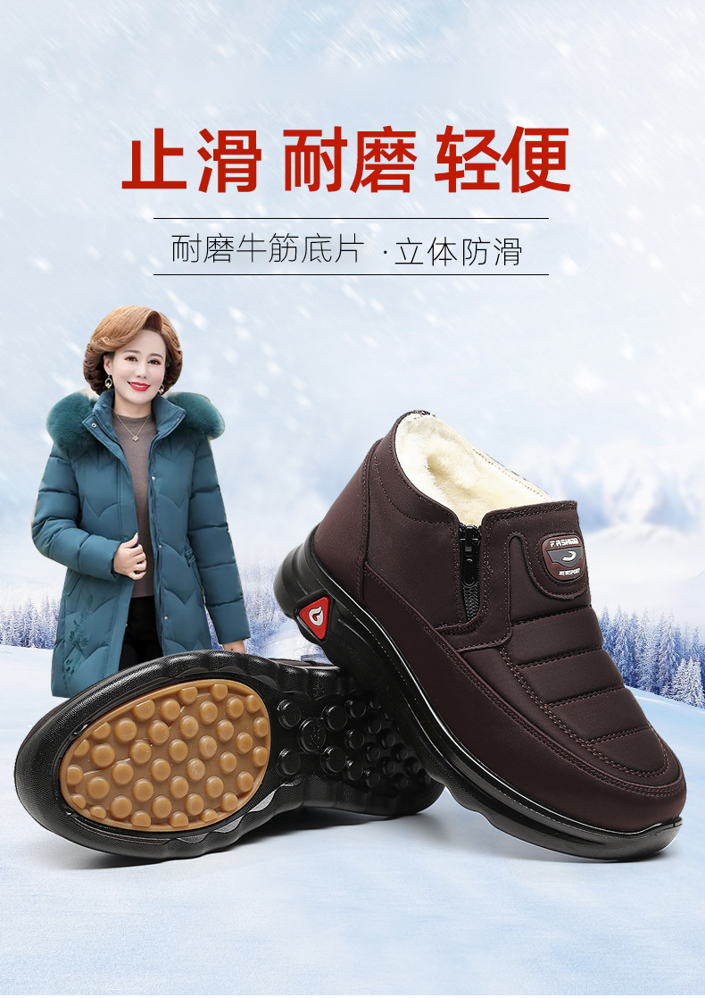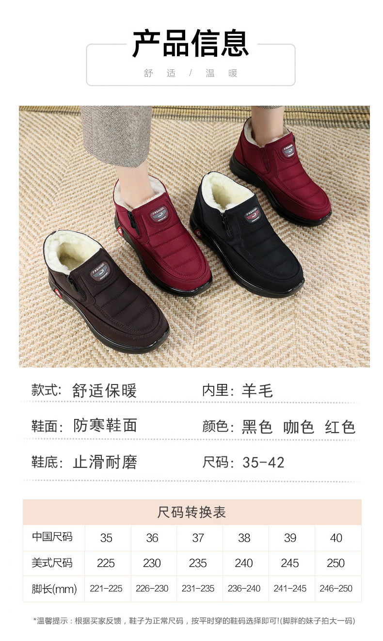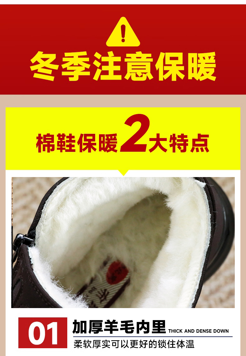 Winter Pure Wool Mother's Old Beijing Cloth Shoes, Non-Slip, Fleece-Lined, Warm, Soft-Soled Cotton Shoes for Elderly Women