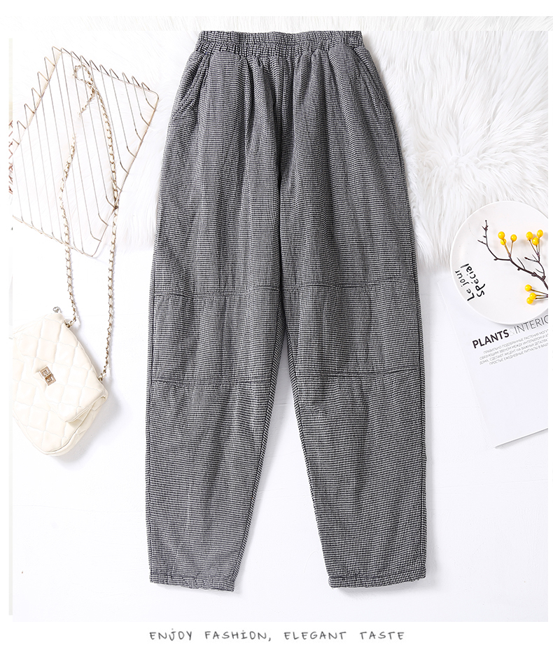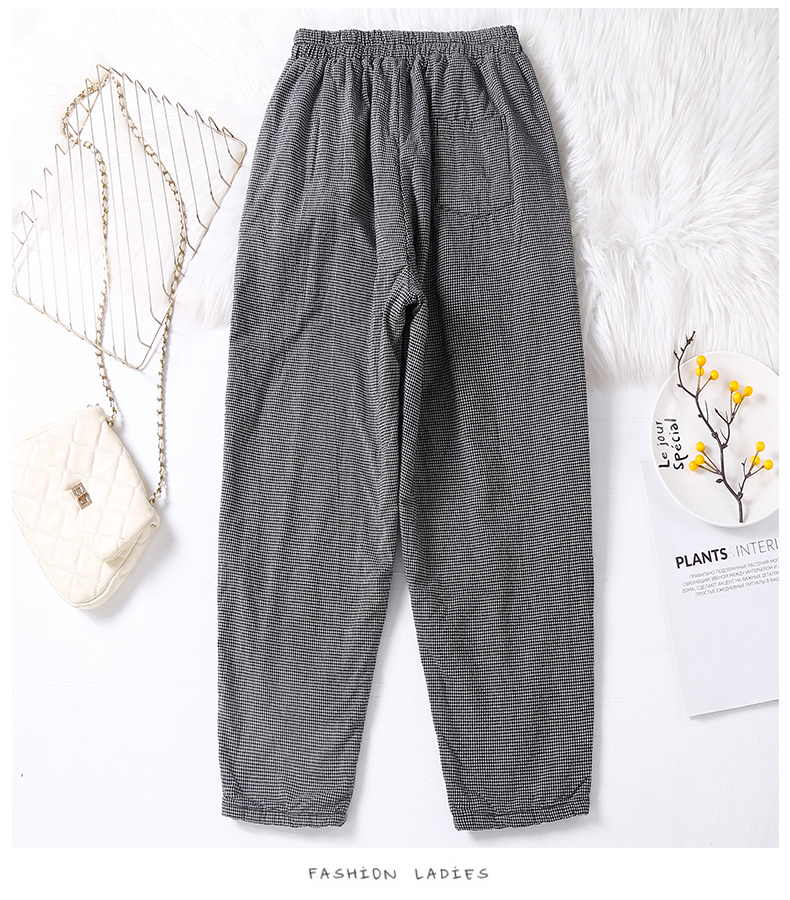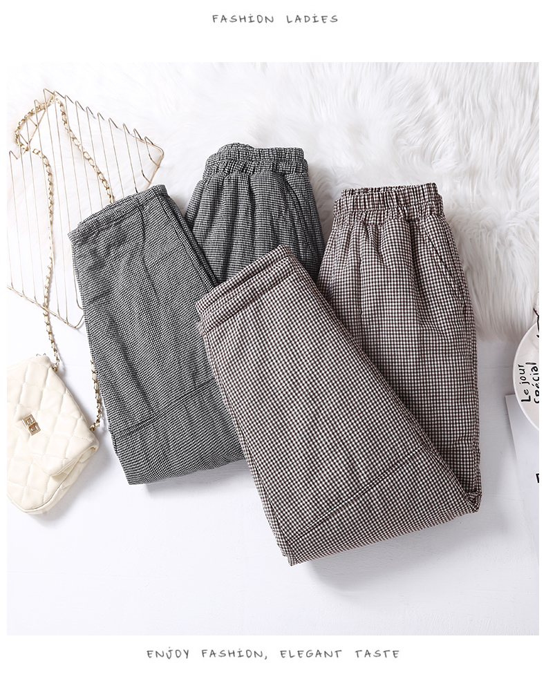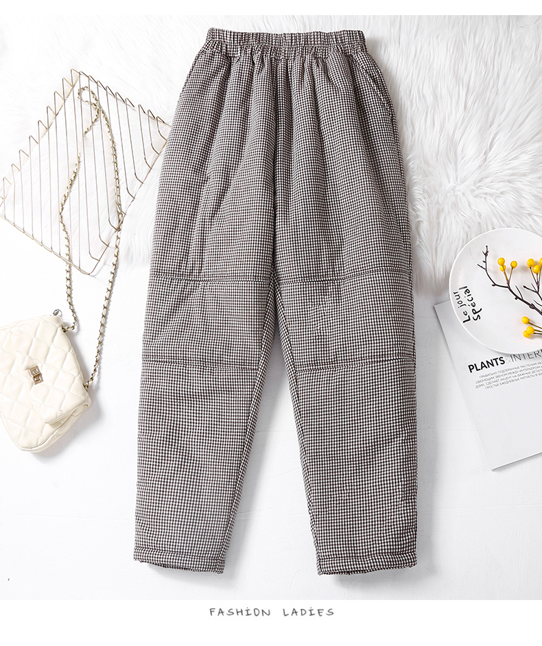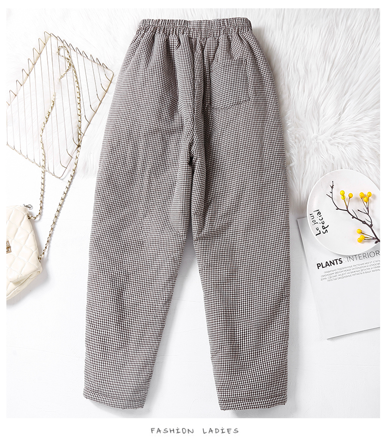 First-Line Brand Mall Clearance Women's Outerwear Thickened Warm Cotton Pants Loose Plaid Cotton-Linen Padded Harem Pants