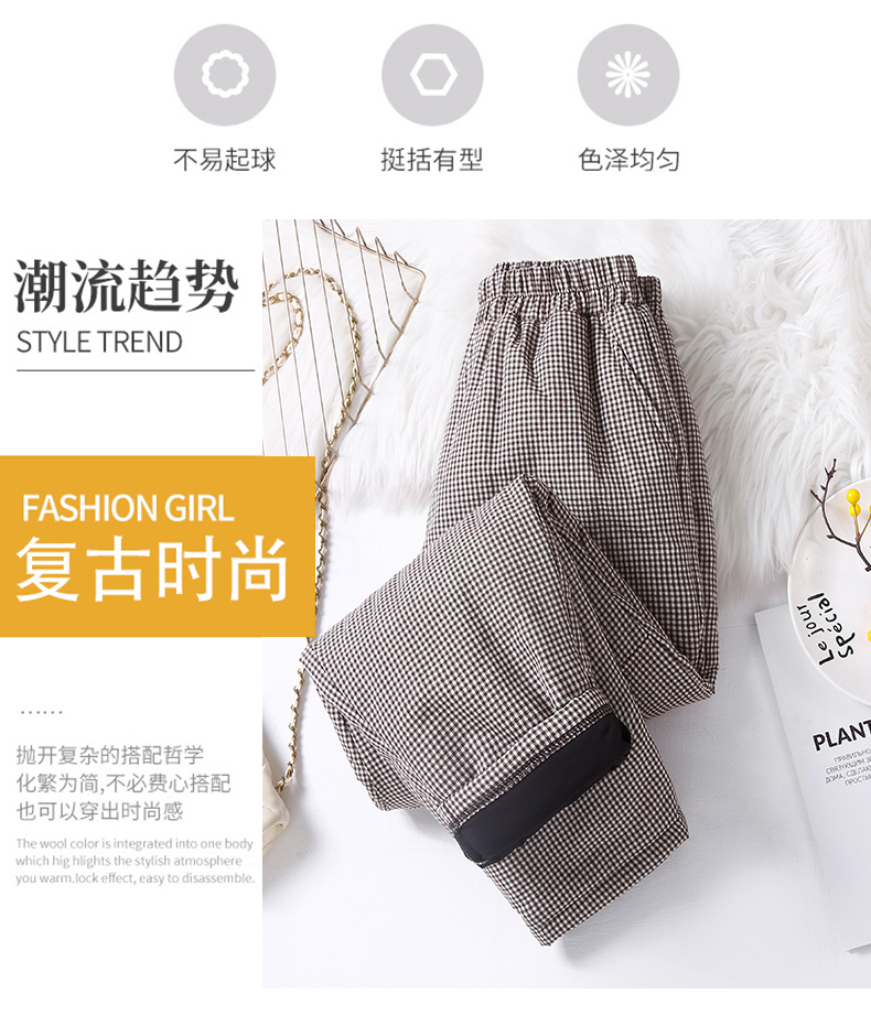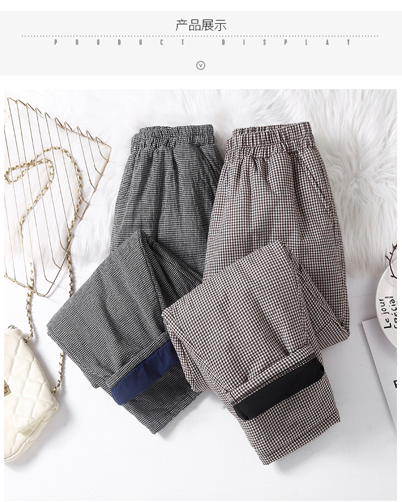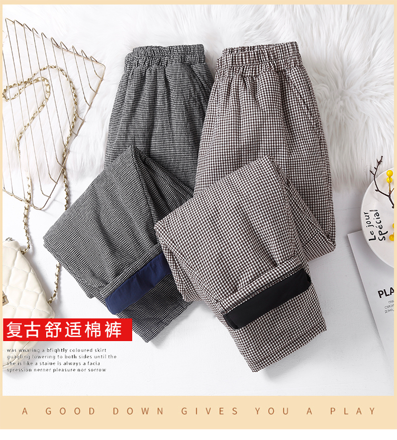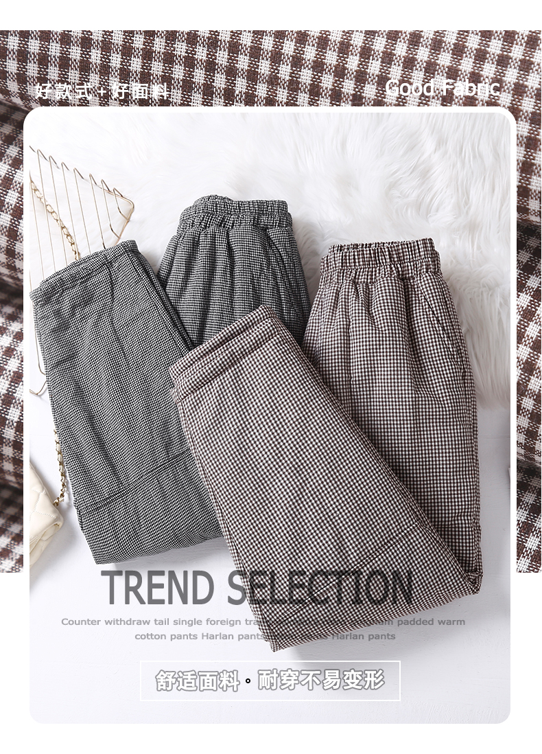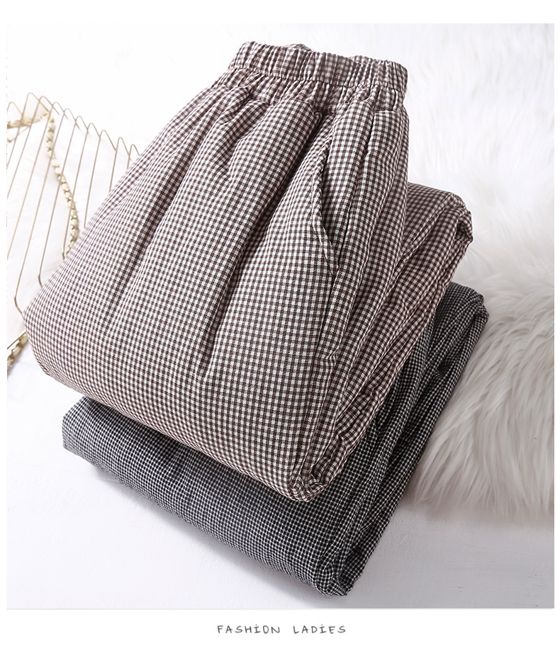 First-Line Brand Mall Clearance Women's Outerwear Thickened Warm Cotton Pants Loose Plaid Cotton-Linen Padded Harem Pants