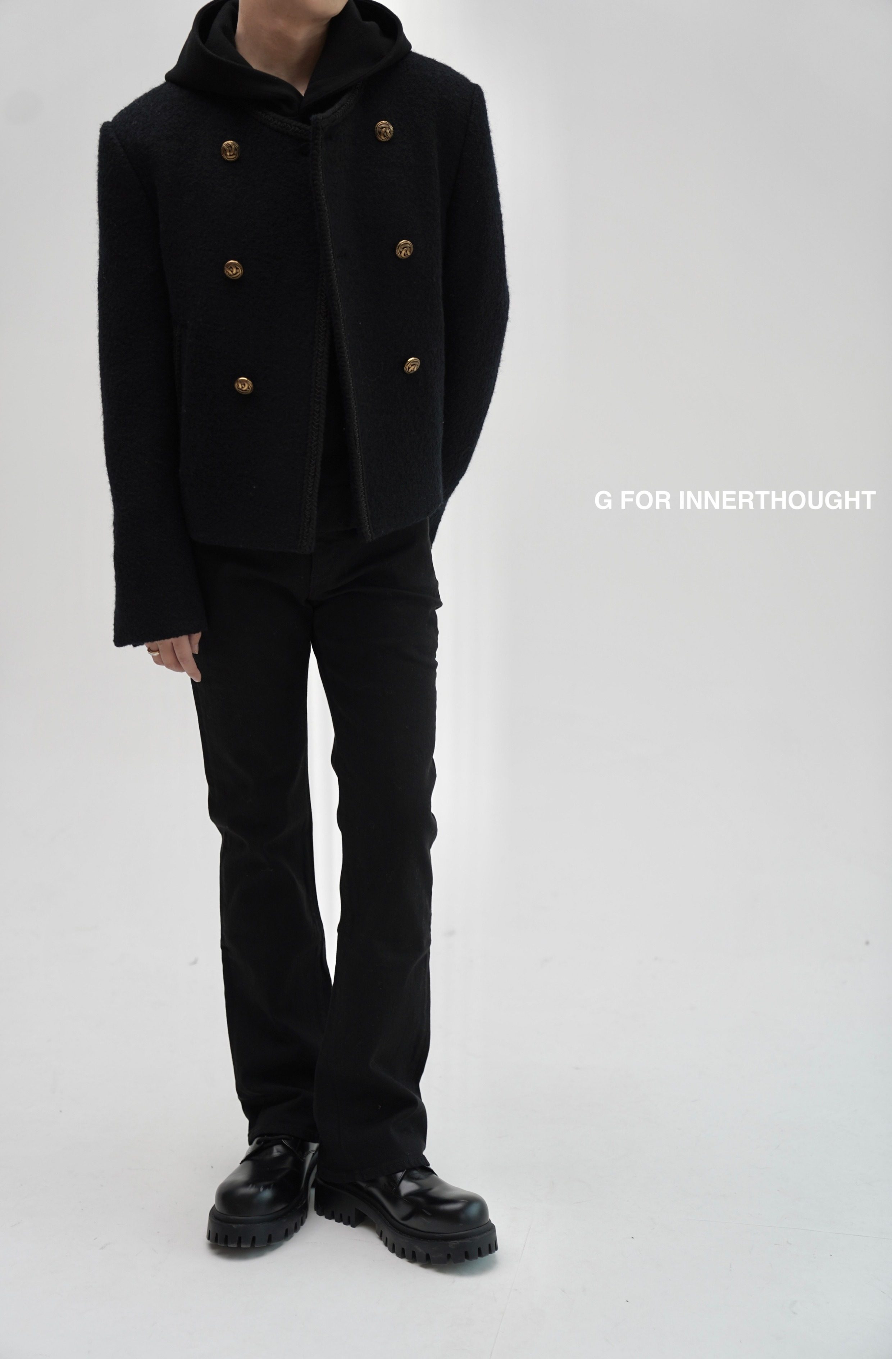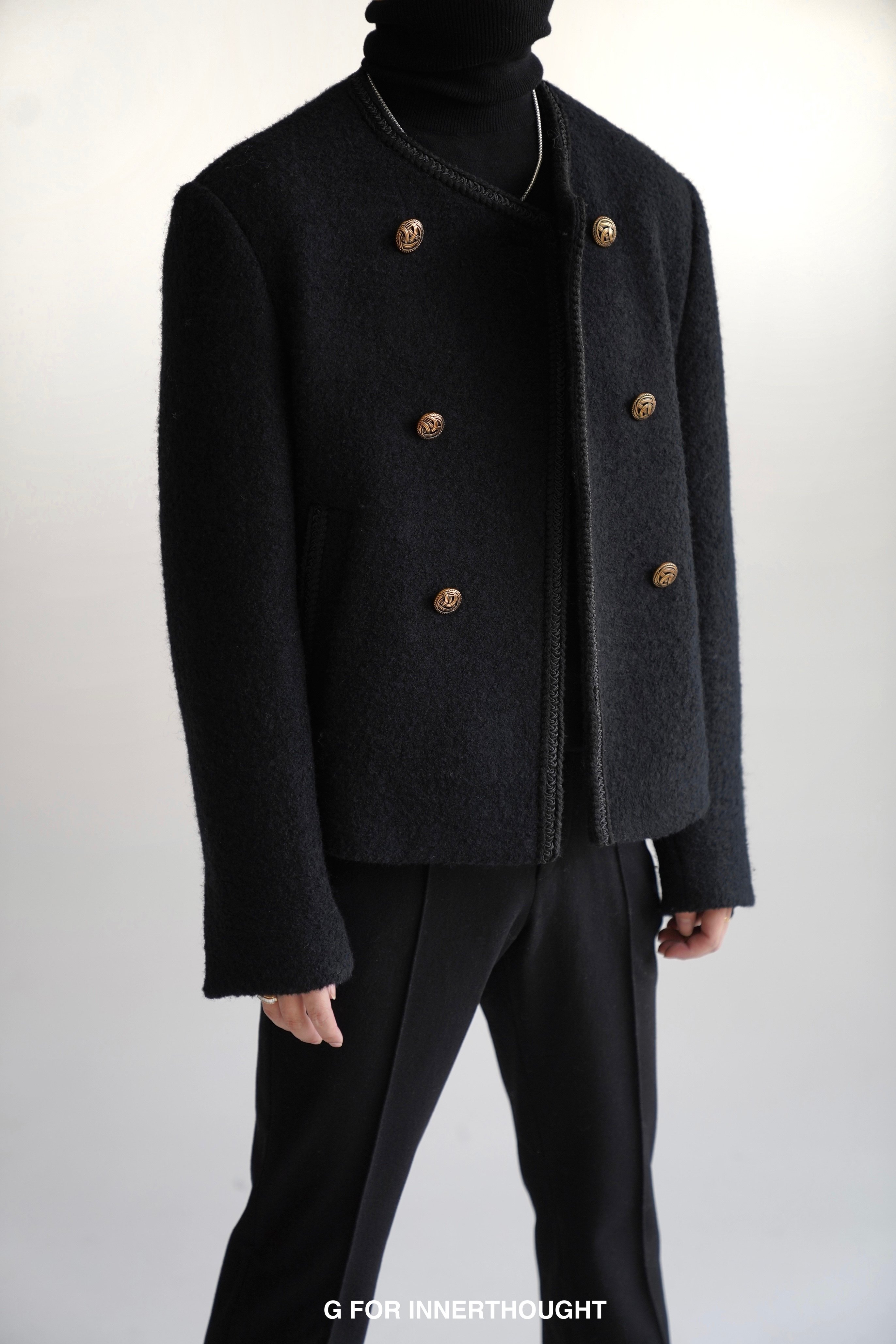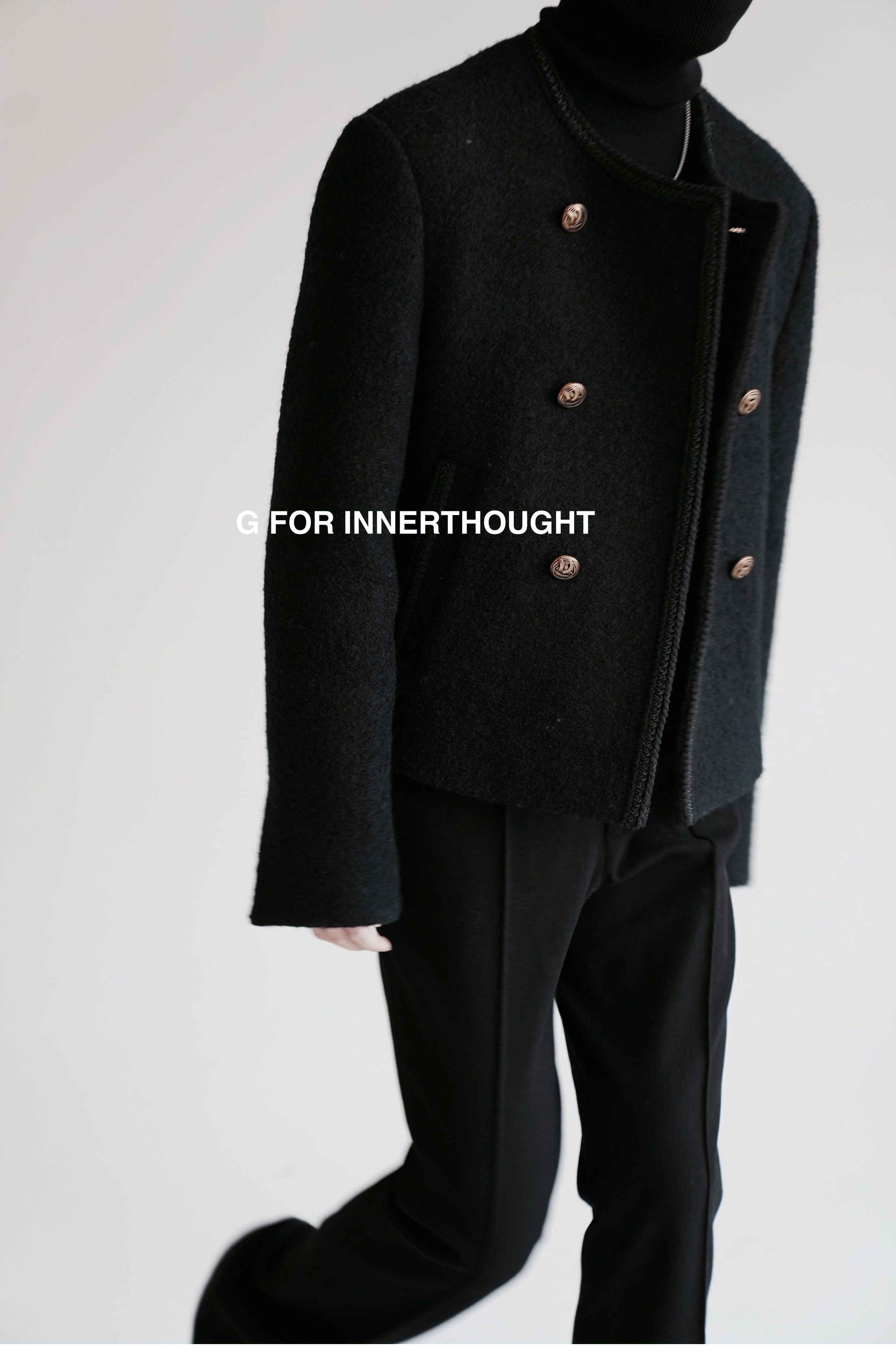 G for Innerthought Japanese Okiyama Wool Tweed Jacket Black Short Men's Jacket