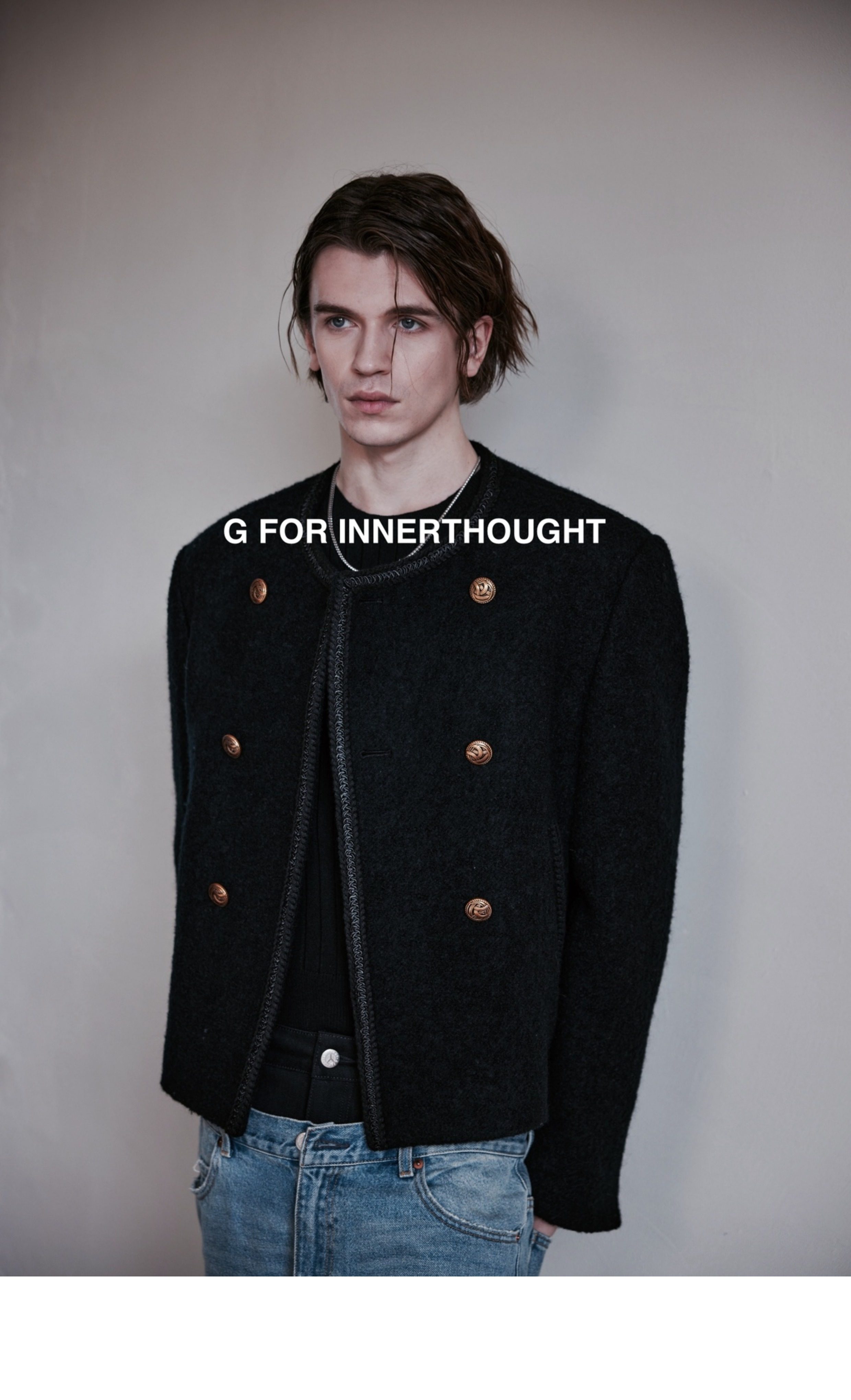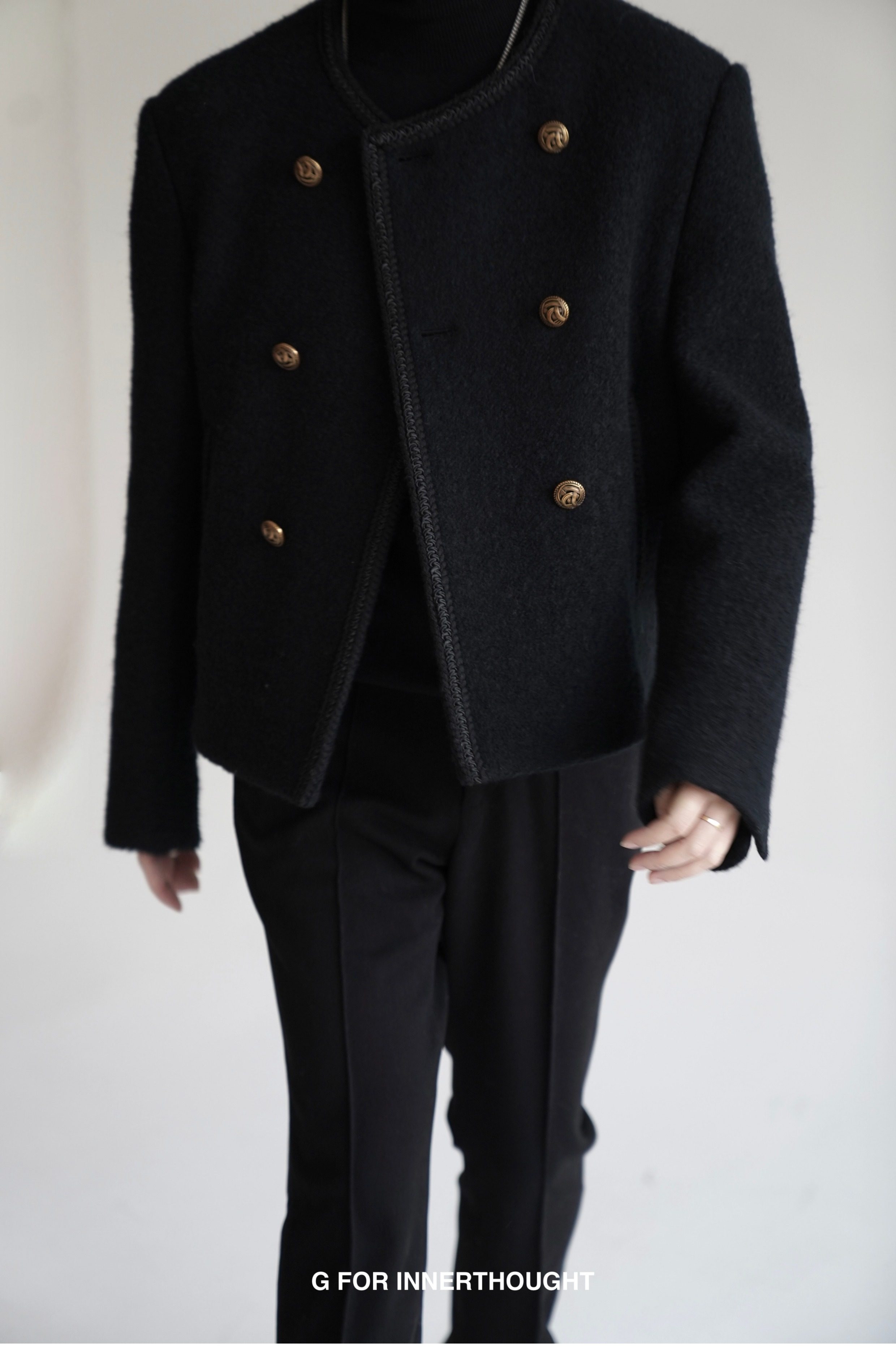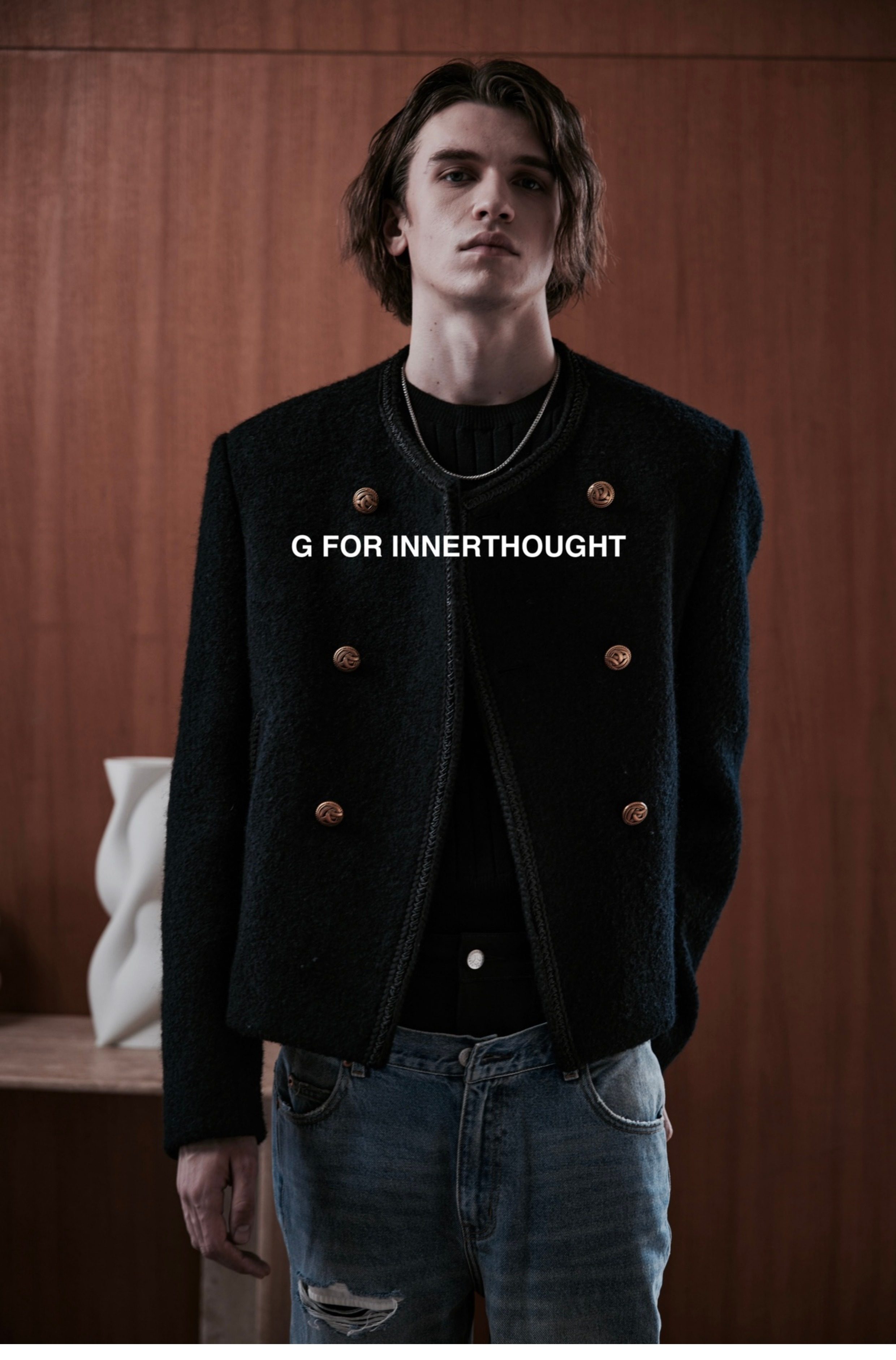 G for Innerthought Japanese Okiyama Wool Tweed Jacket Black Short Men's Jacket