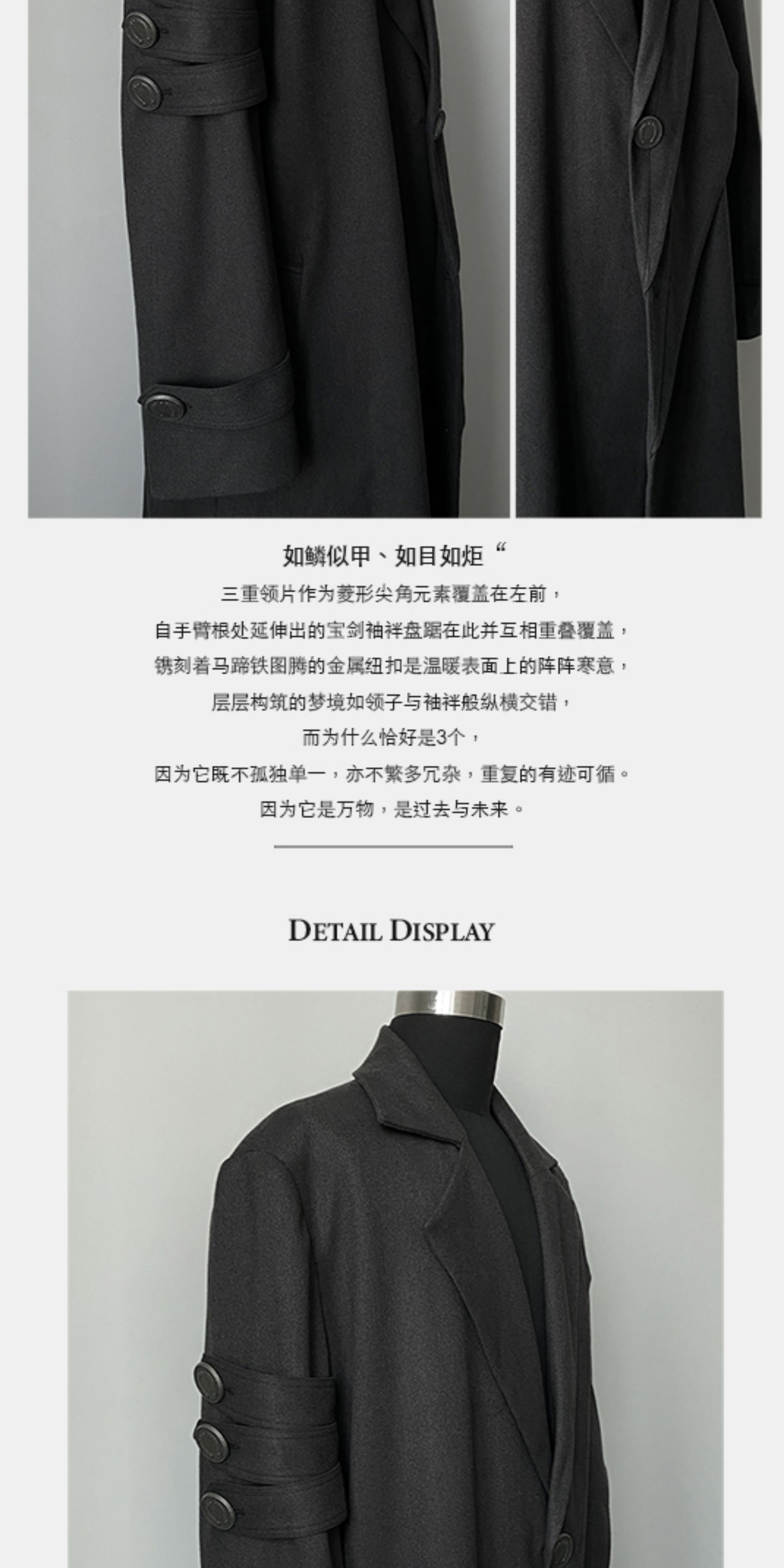 「凌雅Ilnya」拼接_深灰色袖章大衣 羊毛铁蹄三层领