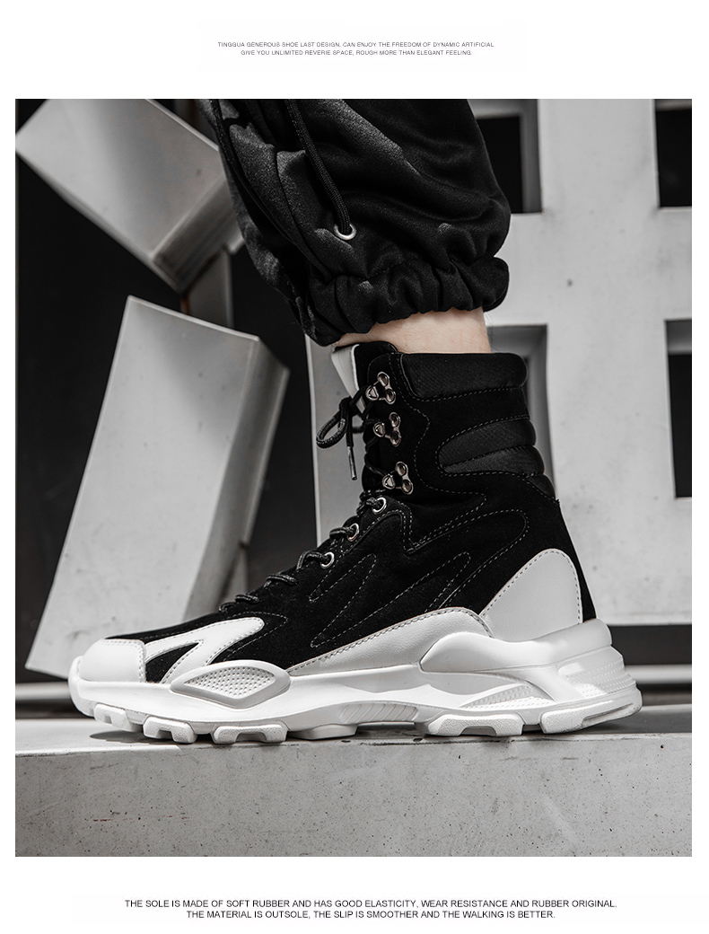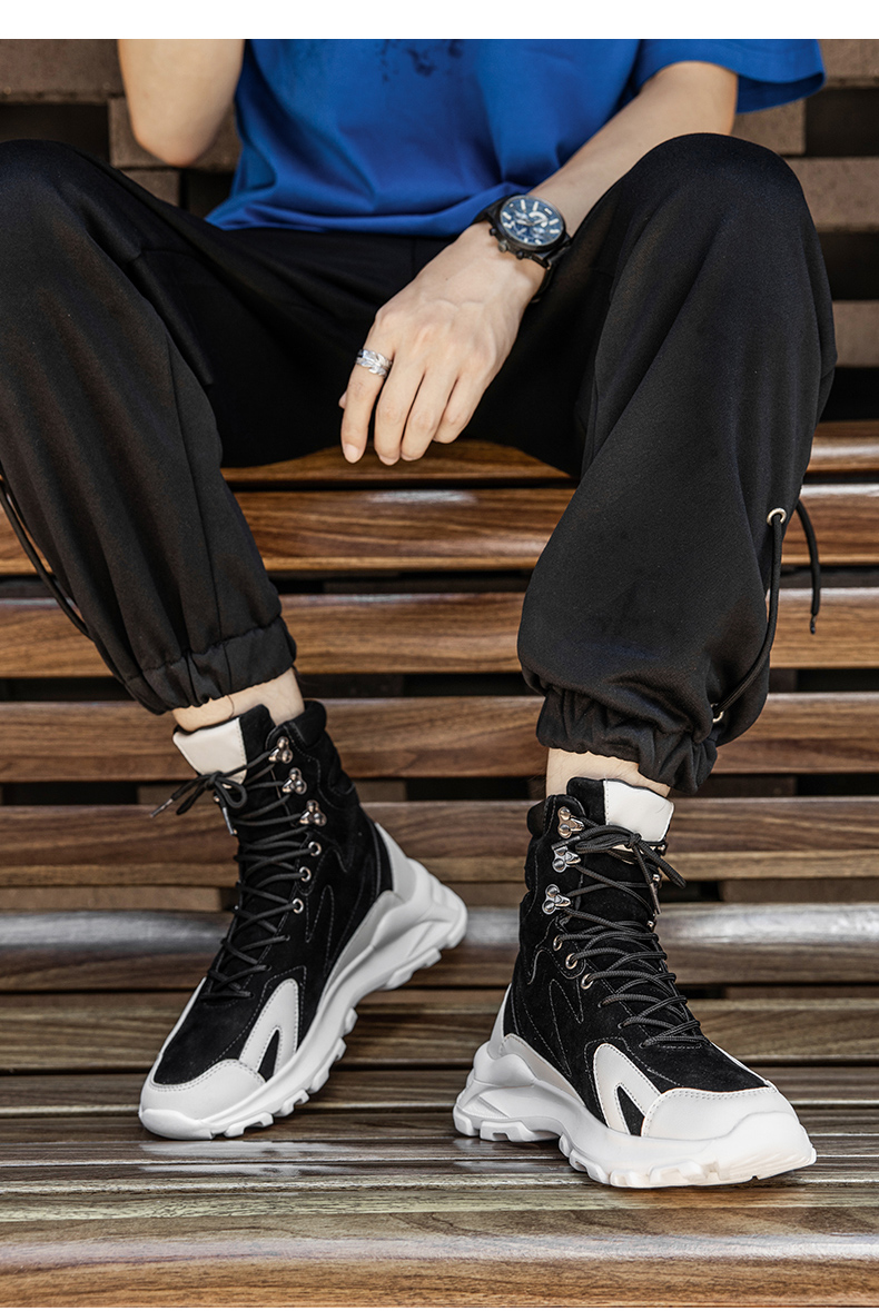 Men's Height-Increasing Shoes 12cm 10cm Sports Casual Breathable Korean Style Versatile Thick-Soled Motorcycle Work Boots for Conventions