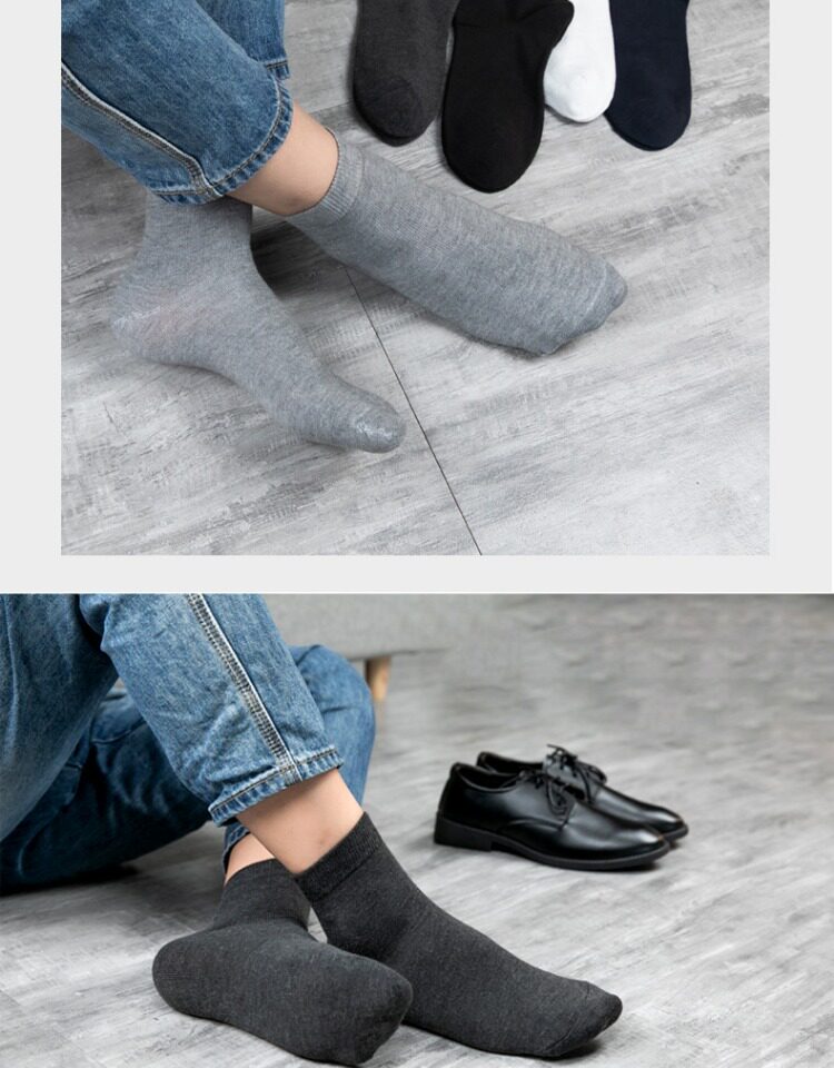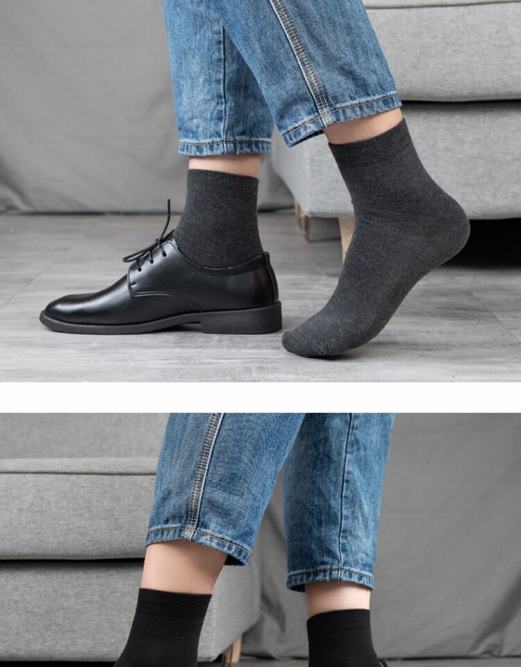 Yalu Socks Men's Mid-Calf Pure Cotton Sweat-Absorbent Breathable Thin Socks Spring and Summer Long Socks Black Business Men's Socks