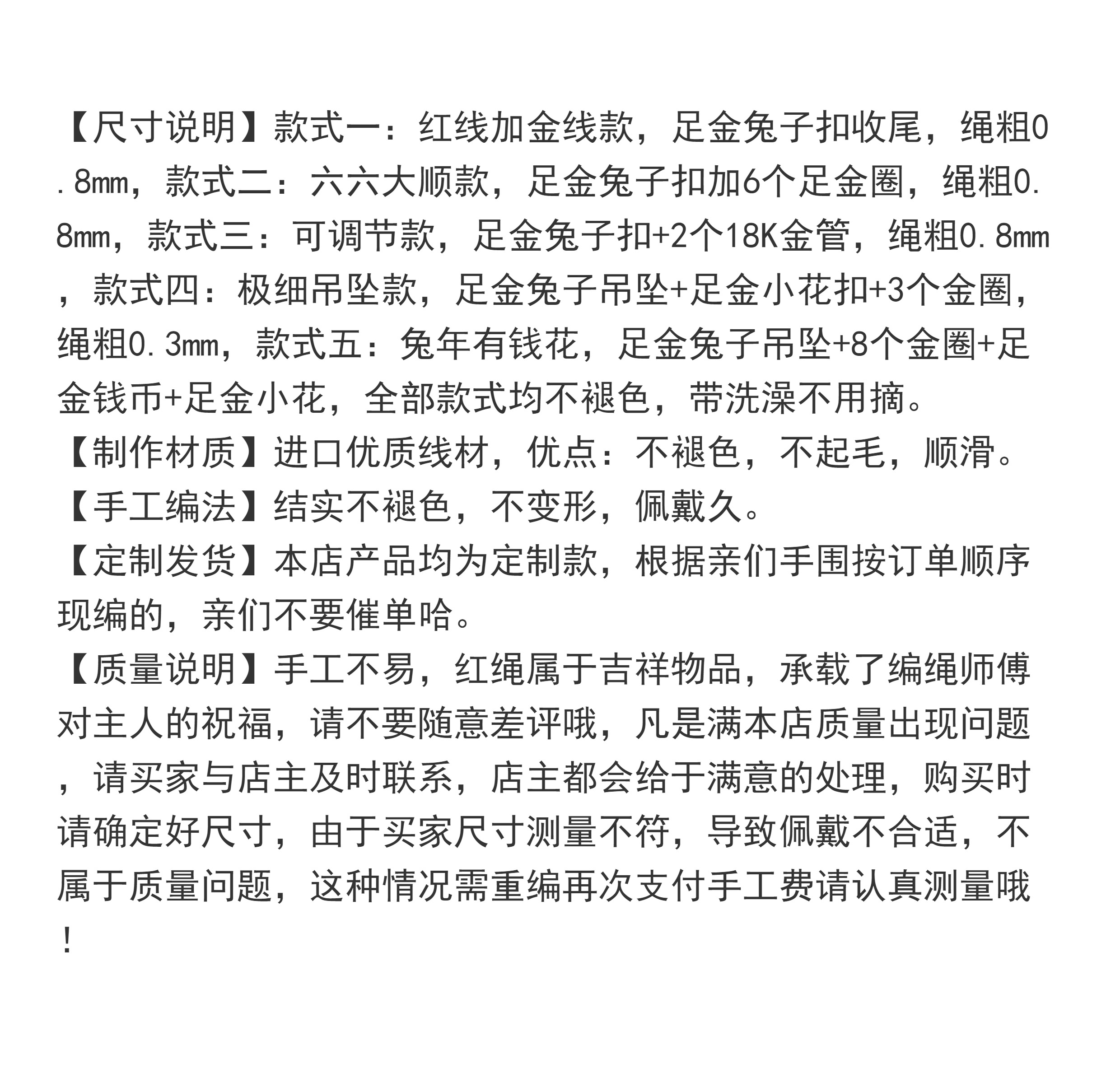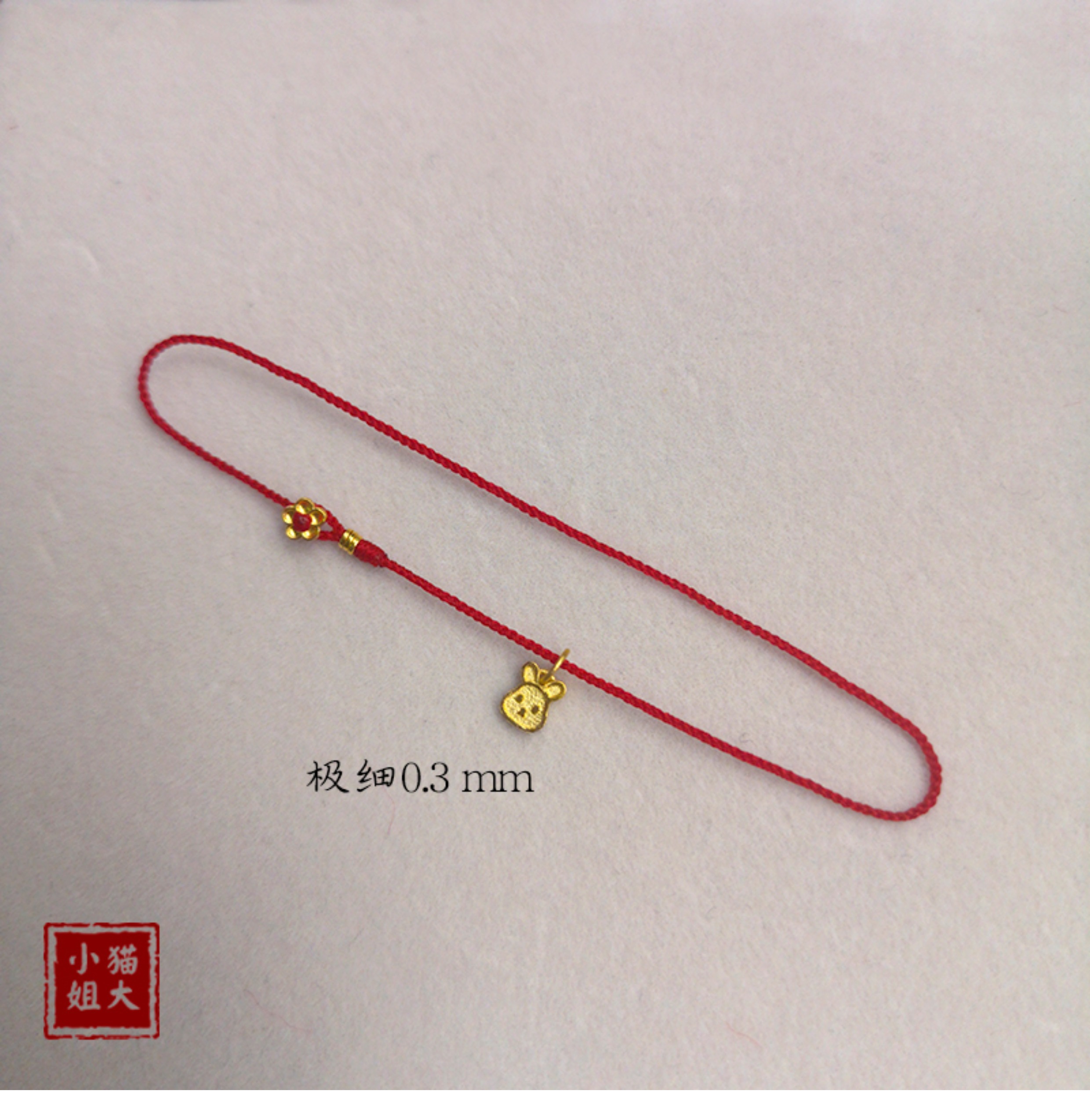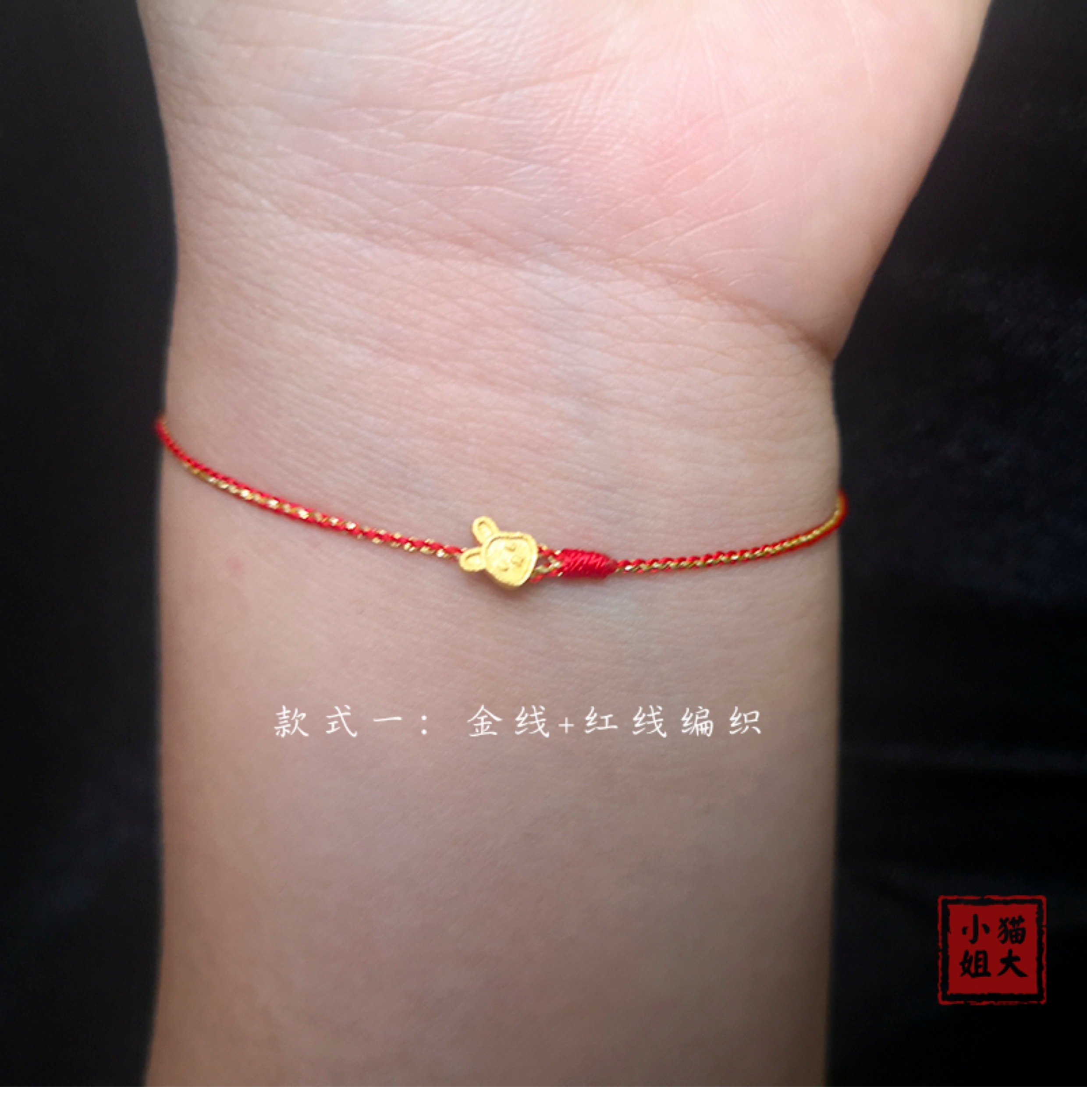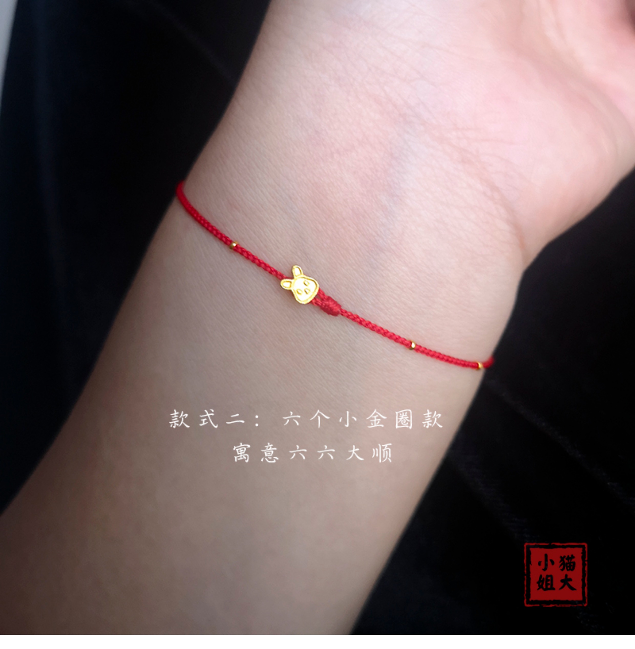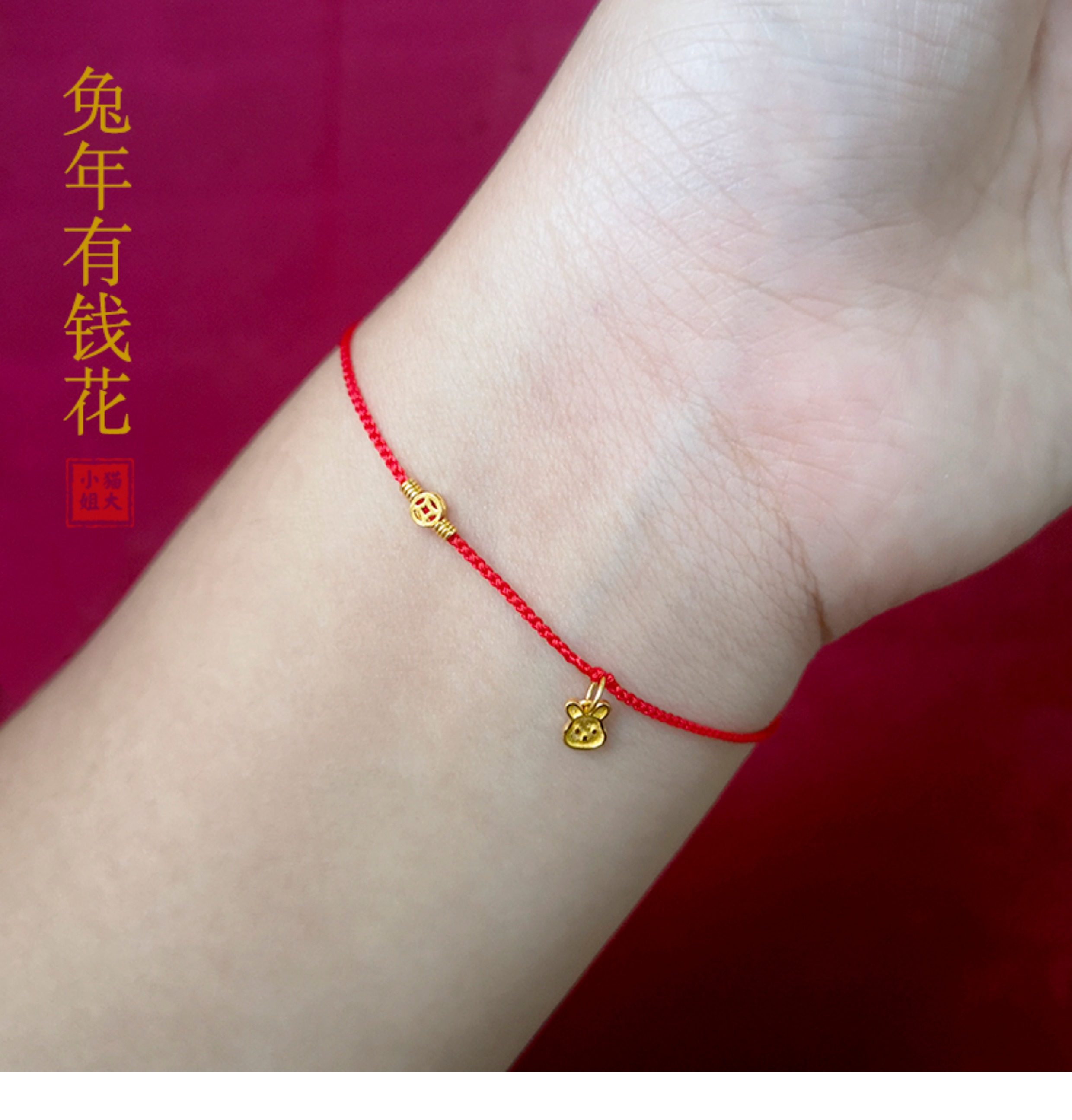 2023 Zodiac Rabbit New Style Ultra-Fine Red String Bracelet 999 Pure Gold Handmade Adjustable for Birth Year Gift