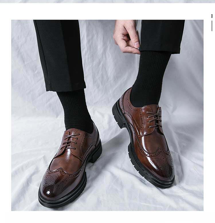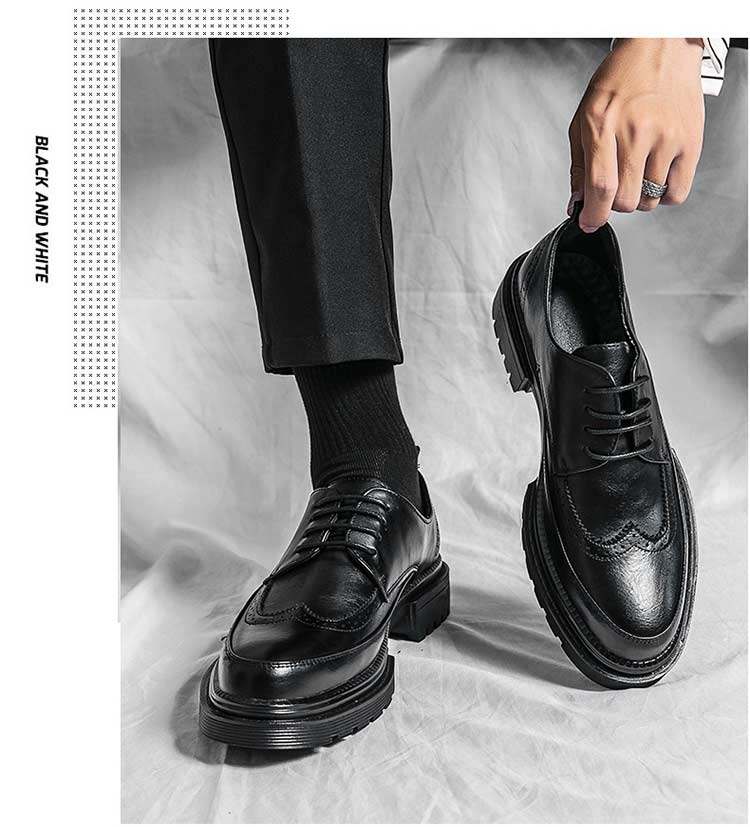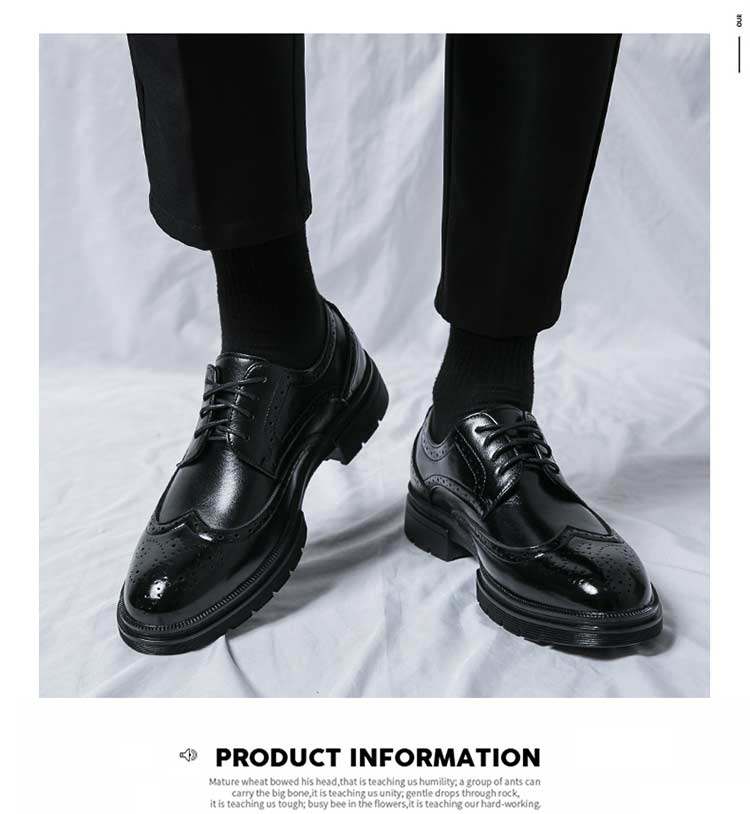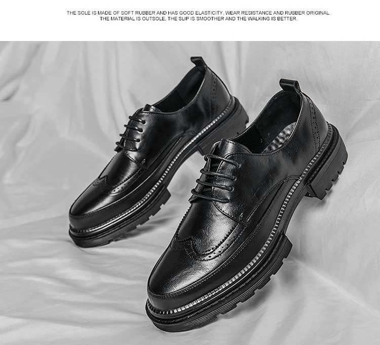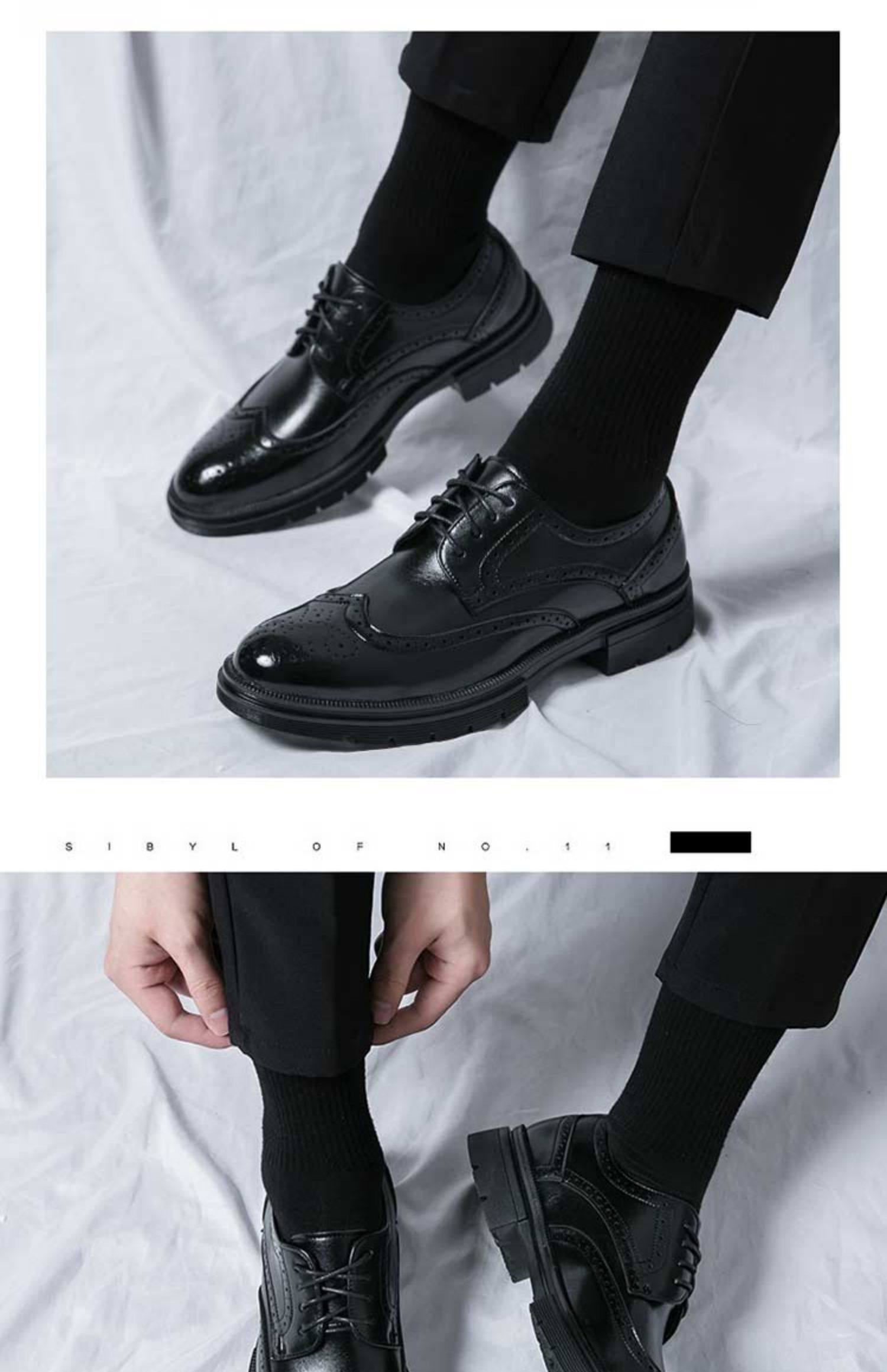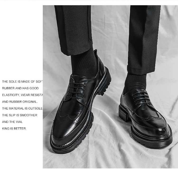 Brogue Leather Shoes for Men, British Style Business Formal Wear, Men's Casual Height-Increasing Suit Black Shoes for Groomsmen, Wedding, and Groom