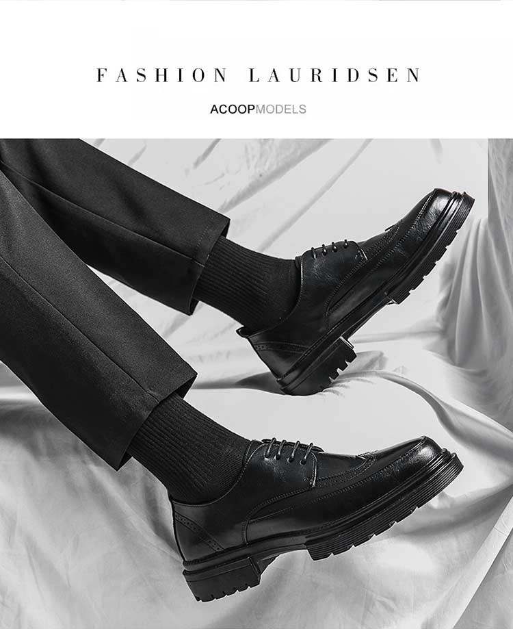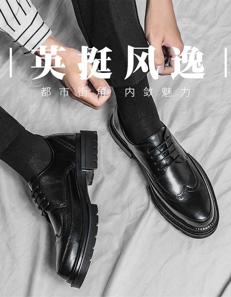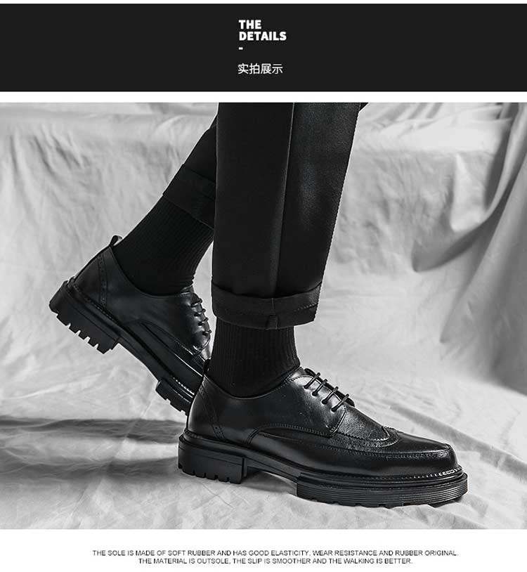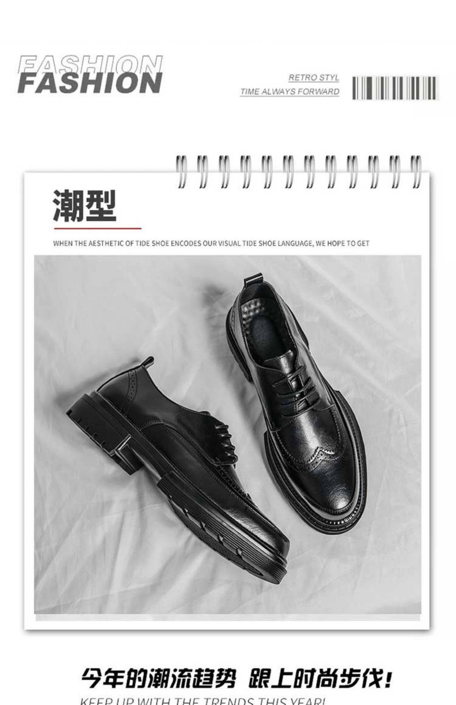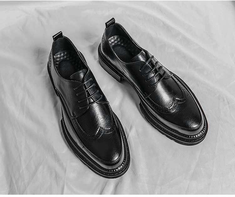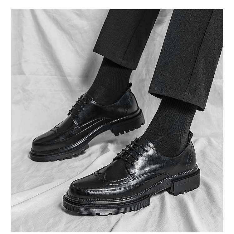 Brogue Leather Shoes for Men, British Style Business Formal Wear, Men's Casual Height-Increasing Suit Black Shoes for Groomsmen, Wedding, and Groom