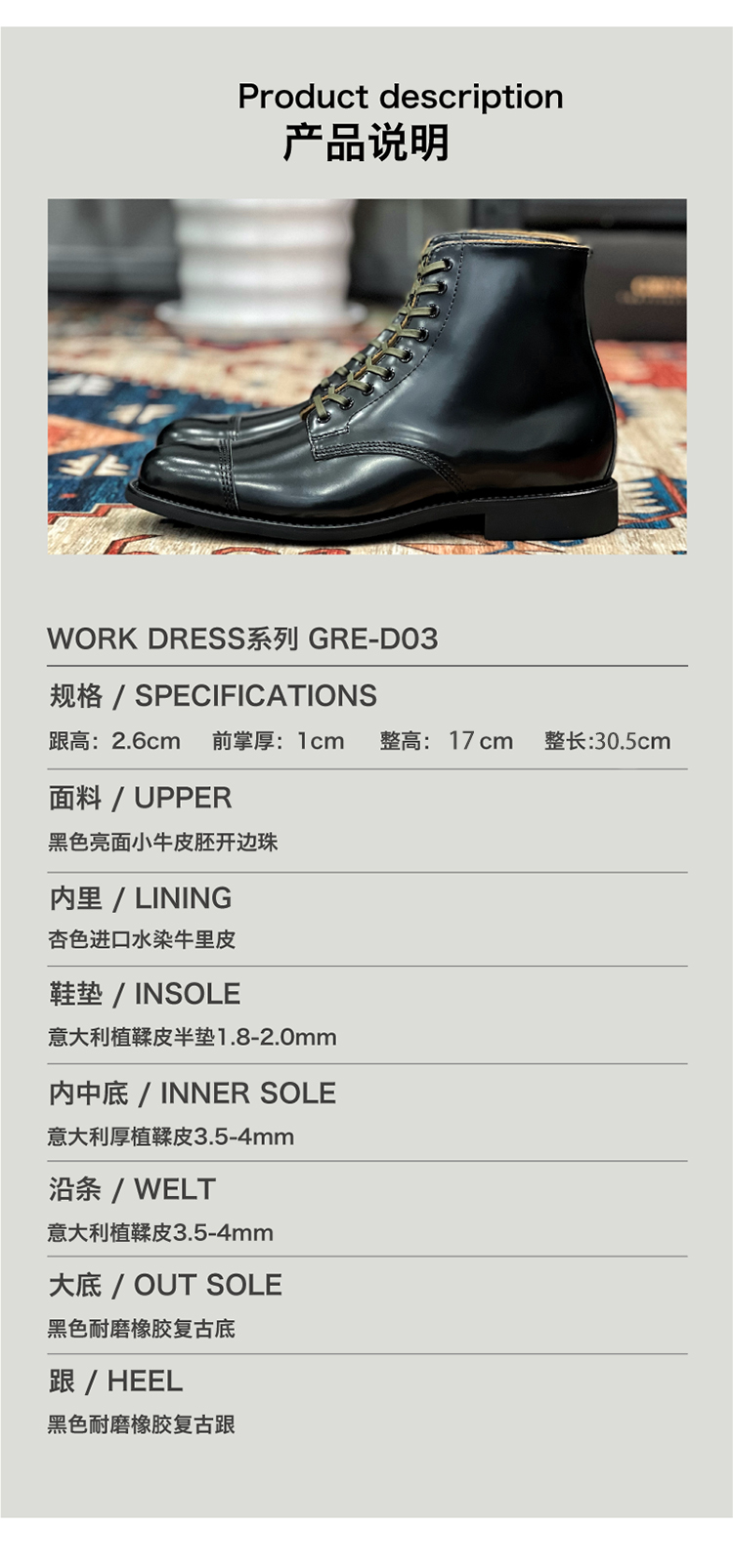 Gre Work Boots D03 Goodyear Vintage Sanders Derby Shoes Gentleman Business Formal Leather Shoes Men's Comfortable