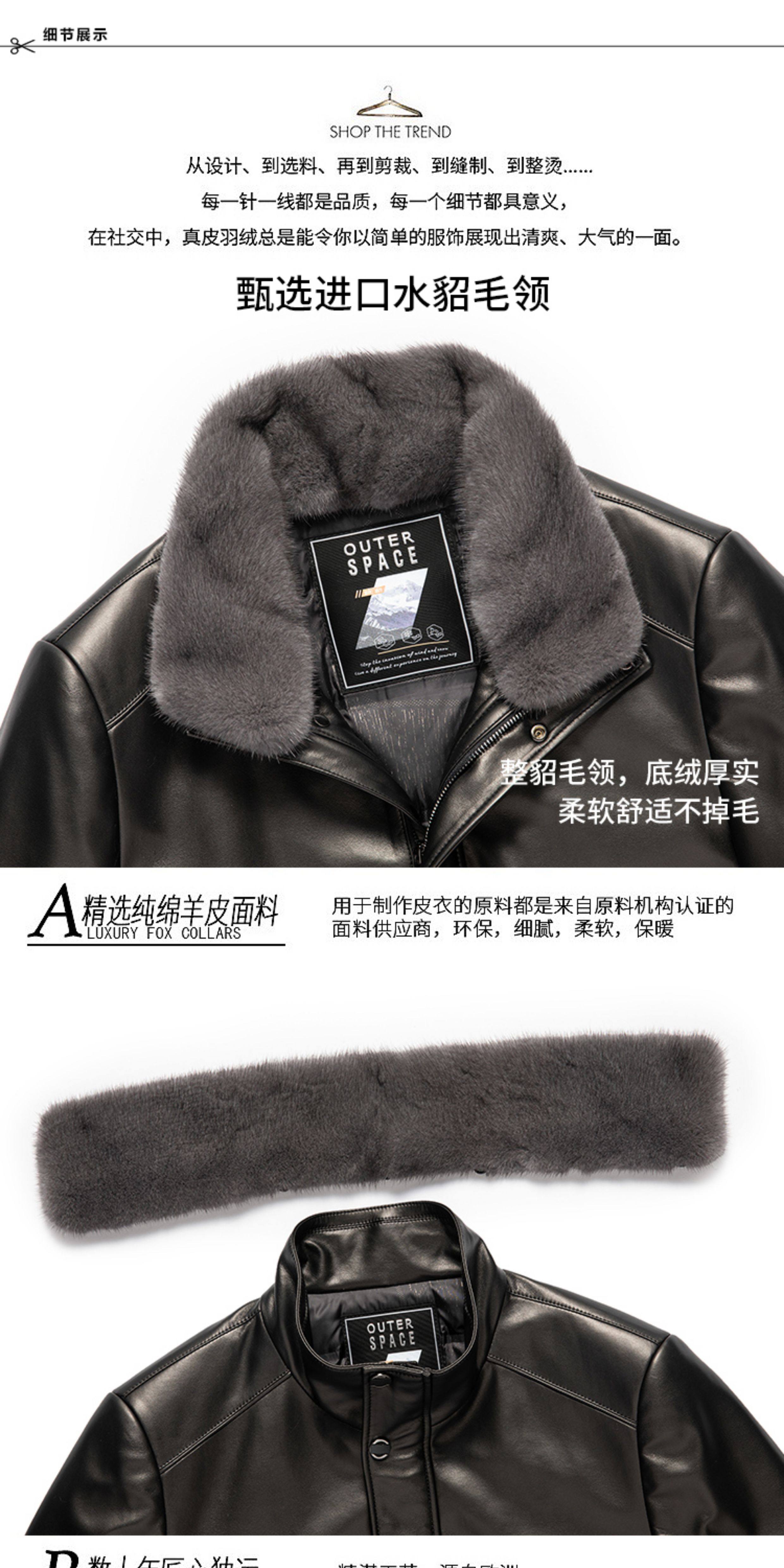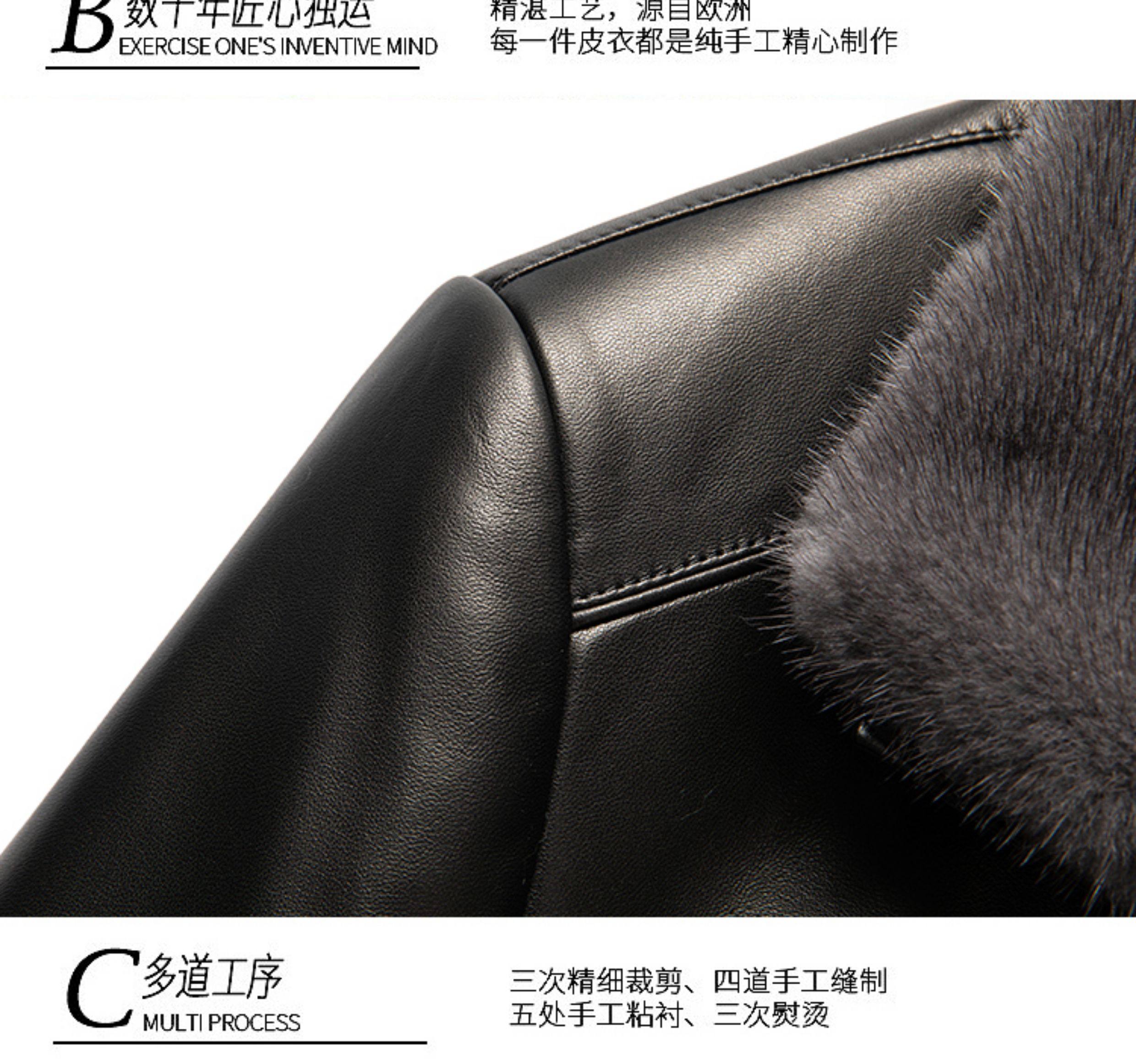 Genuine Leather Men's Leather Jacket with Black Mink Fur Collar and down Lining, 2025 Winter New High-End Sheepskin Coat