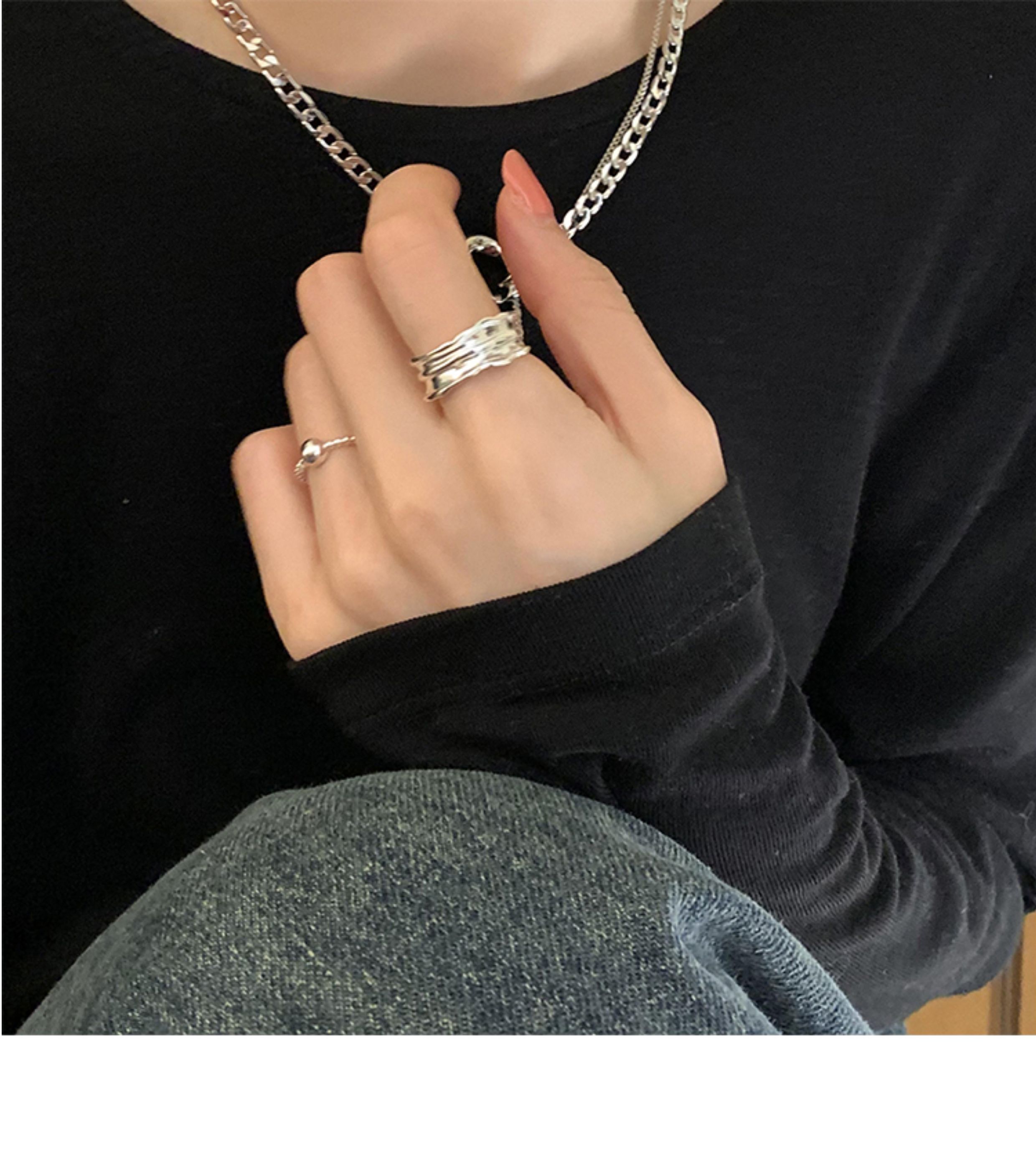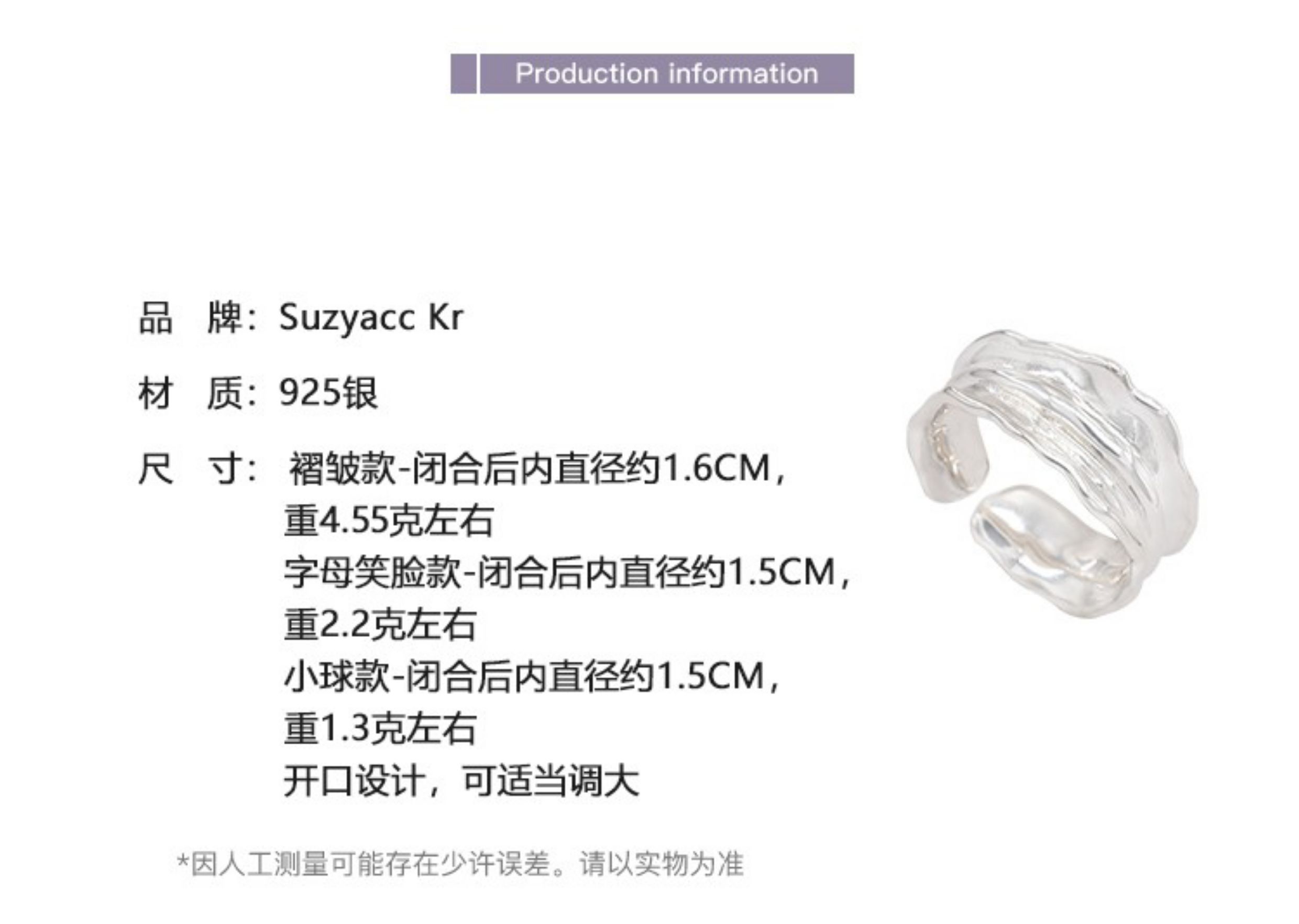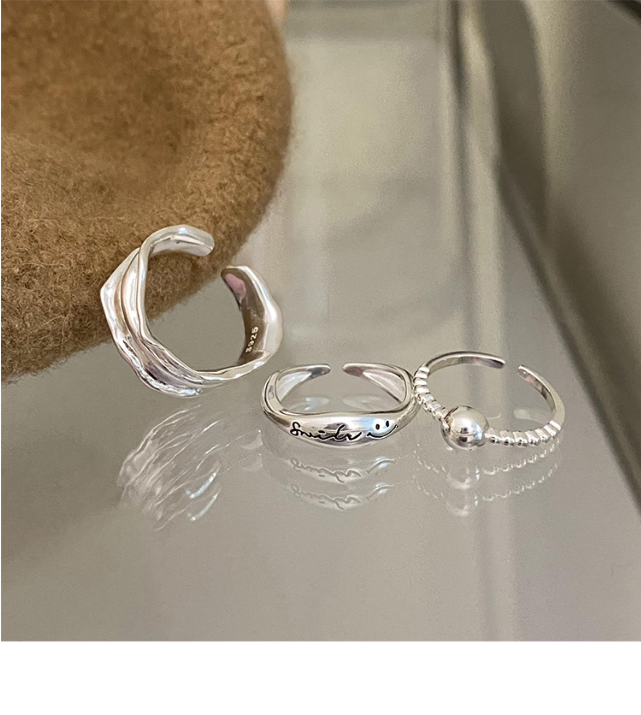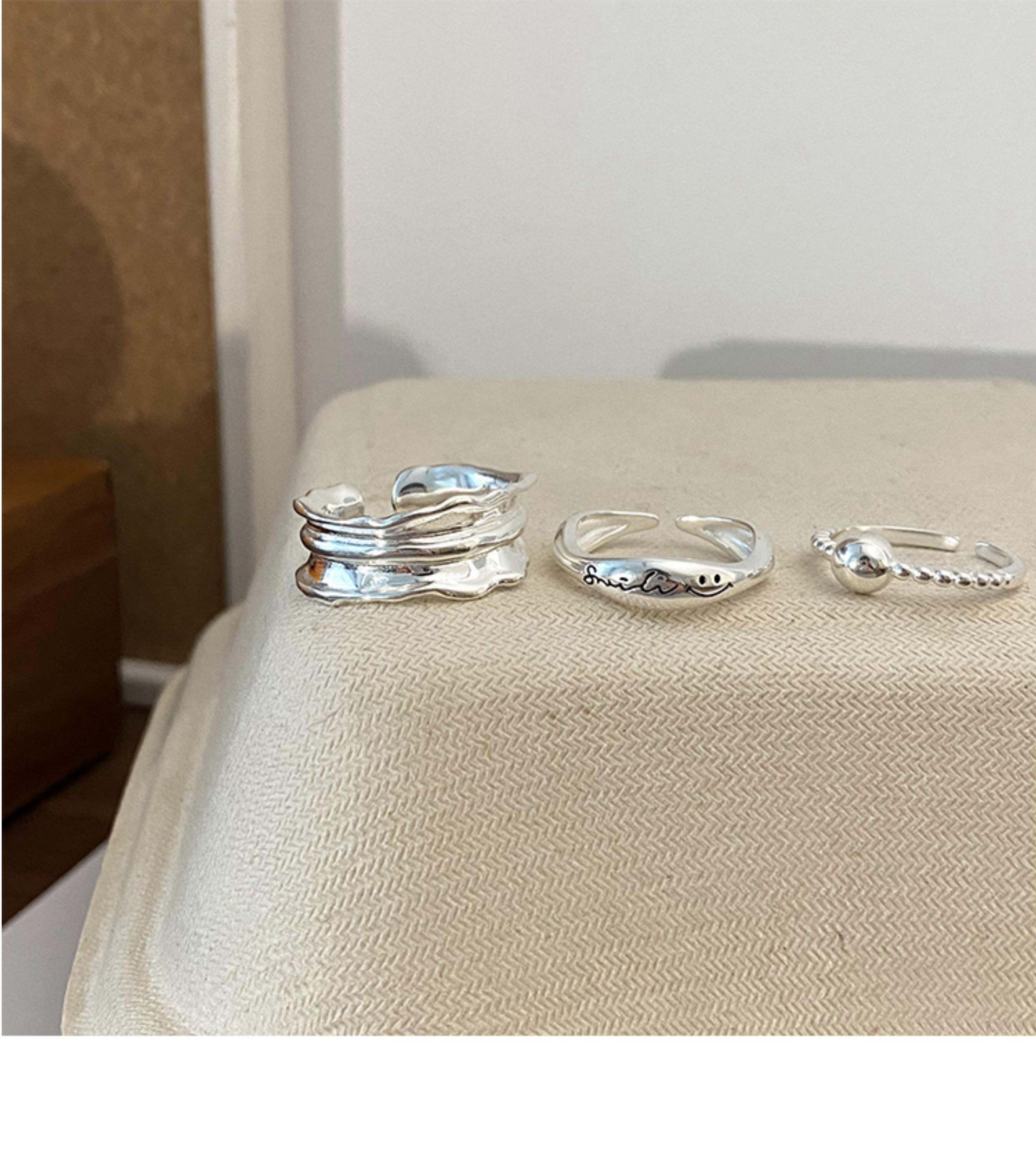 Suzyacc Kr Niche Design Smiley Face Lace Sterling Silver Ring 2024 New Trendy Simple and Unique Index Finger Ring