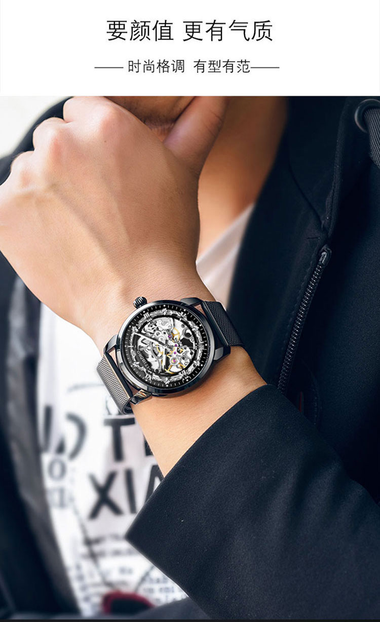 Chilo Men's Mechanical Watch Fully Automatic Brand Genuine Swiss Middle School Student Watch Fashionable Hollow Waterproof Men's Watch