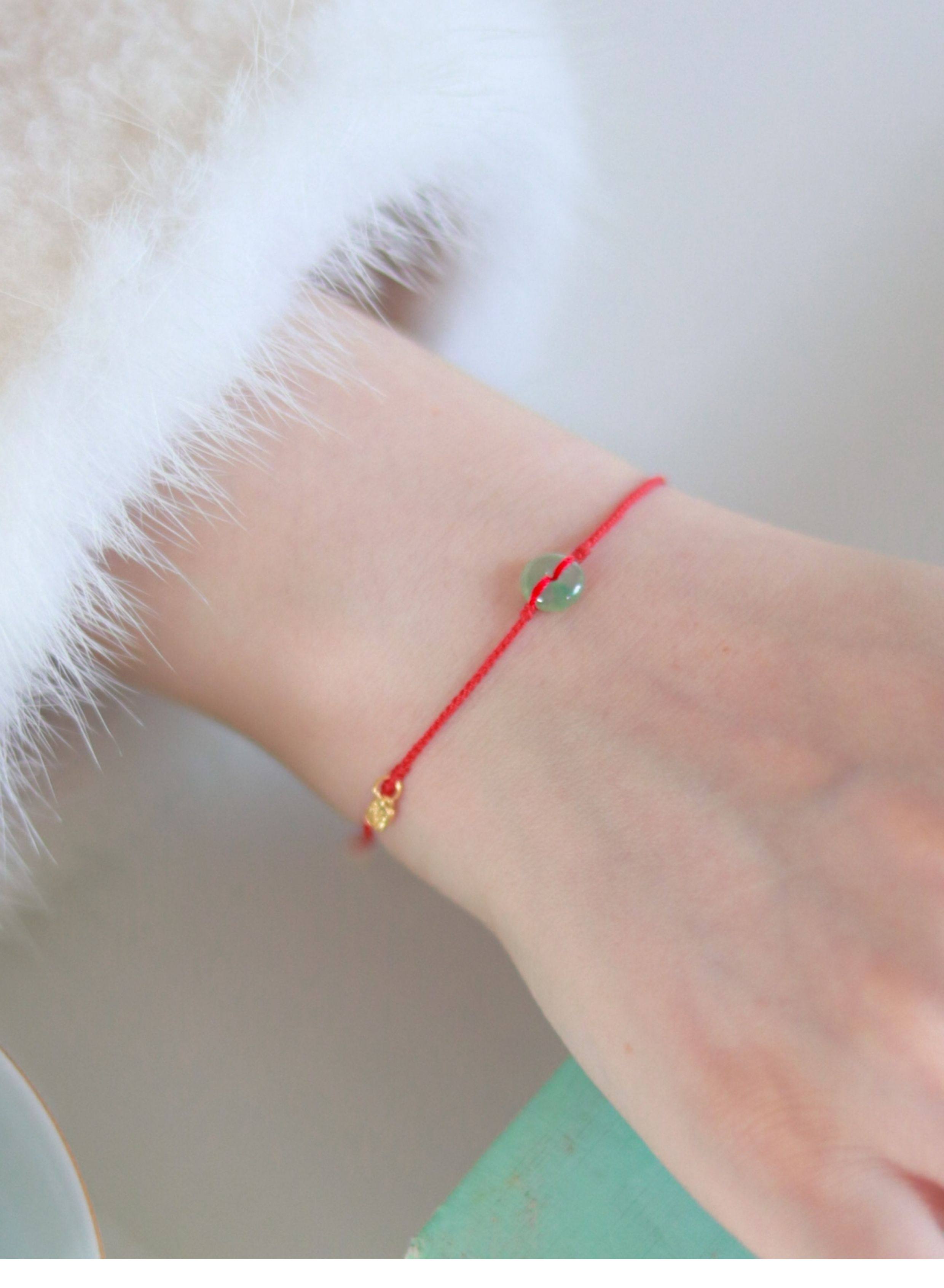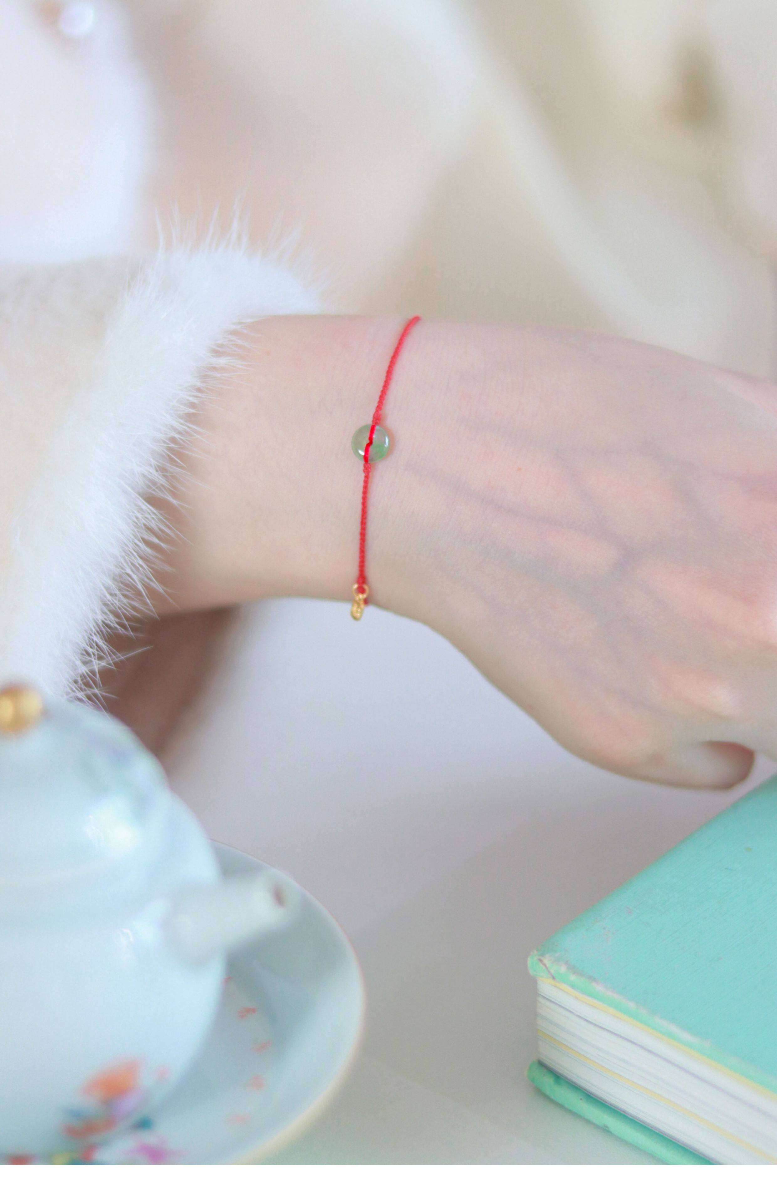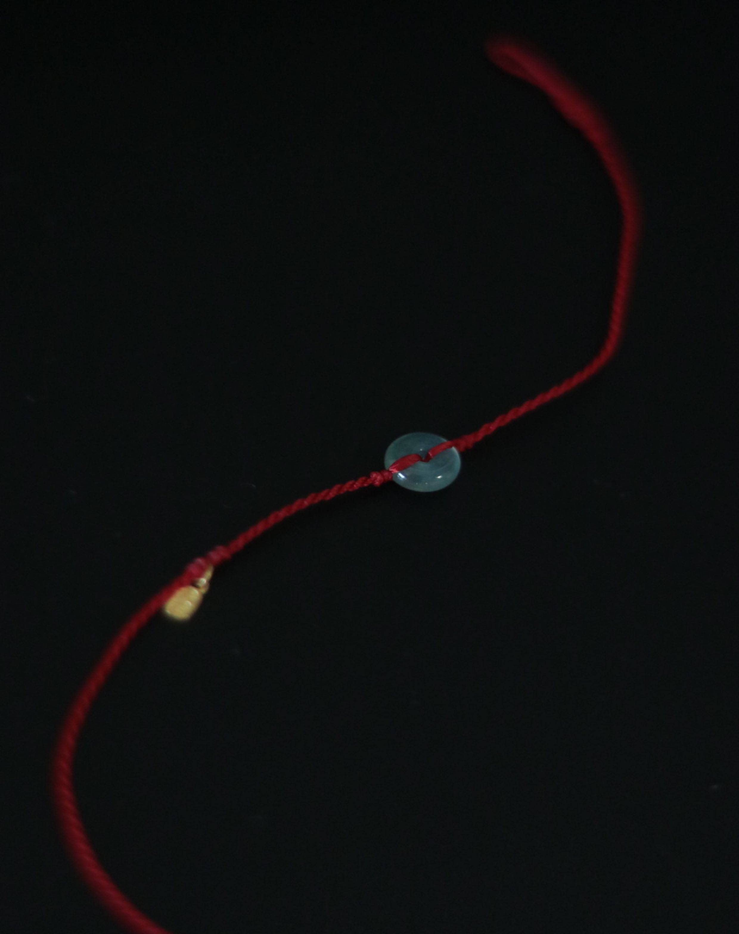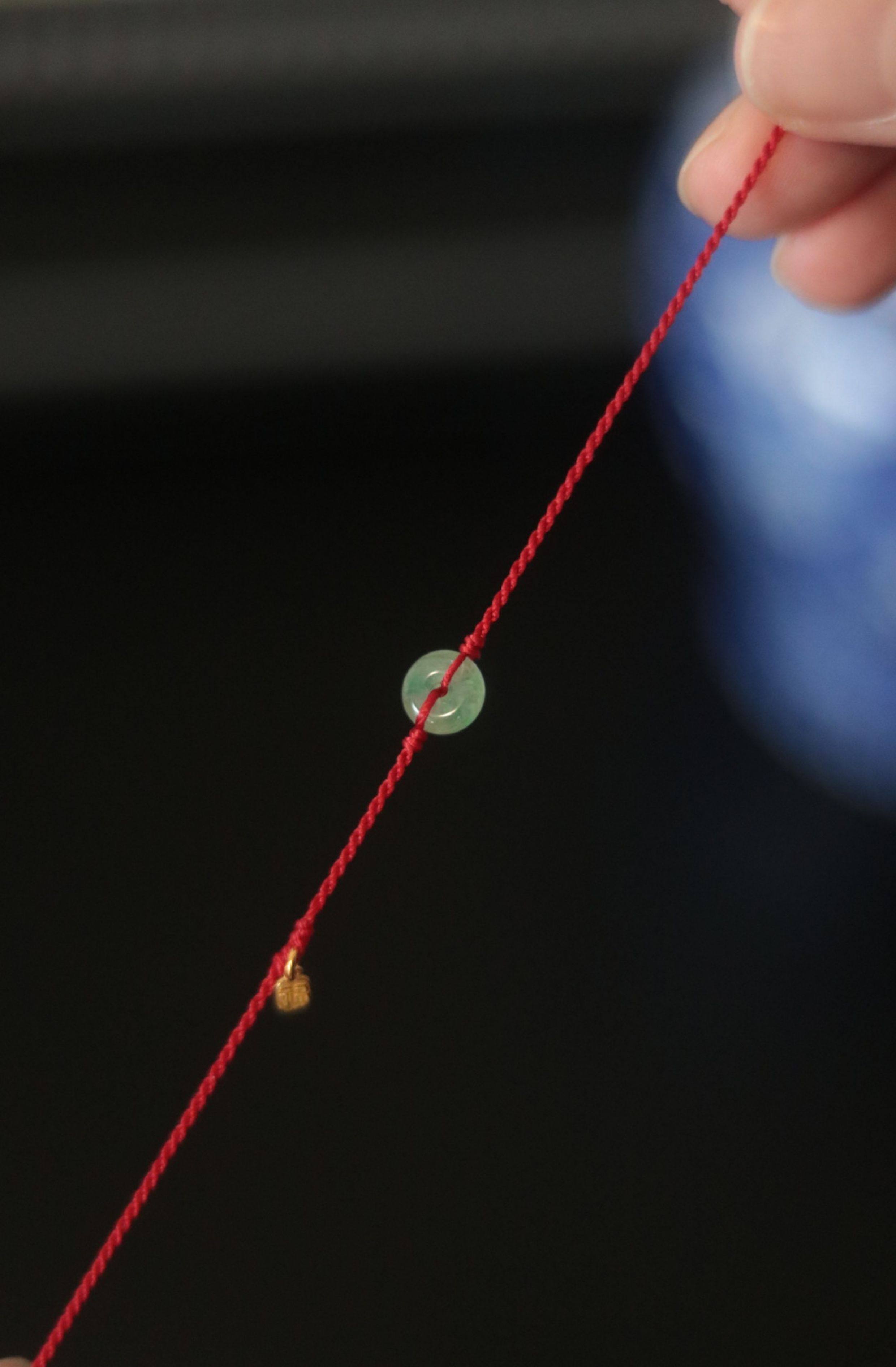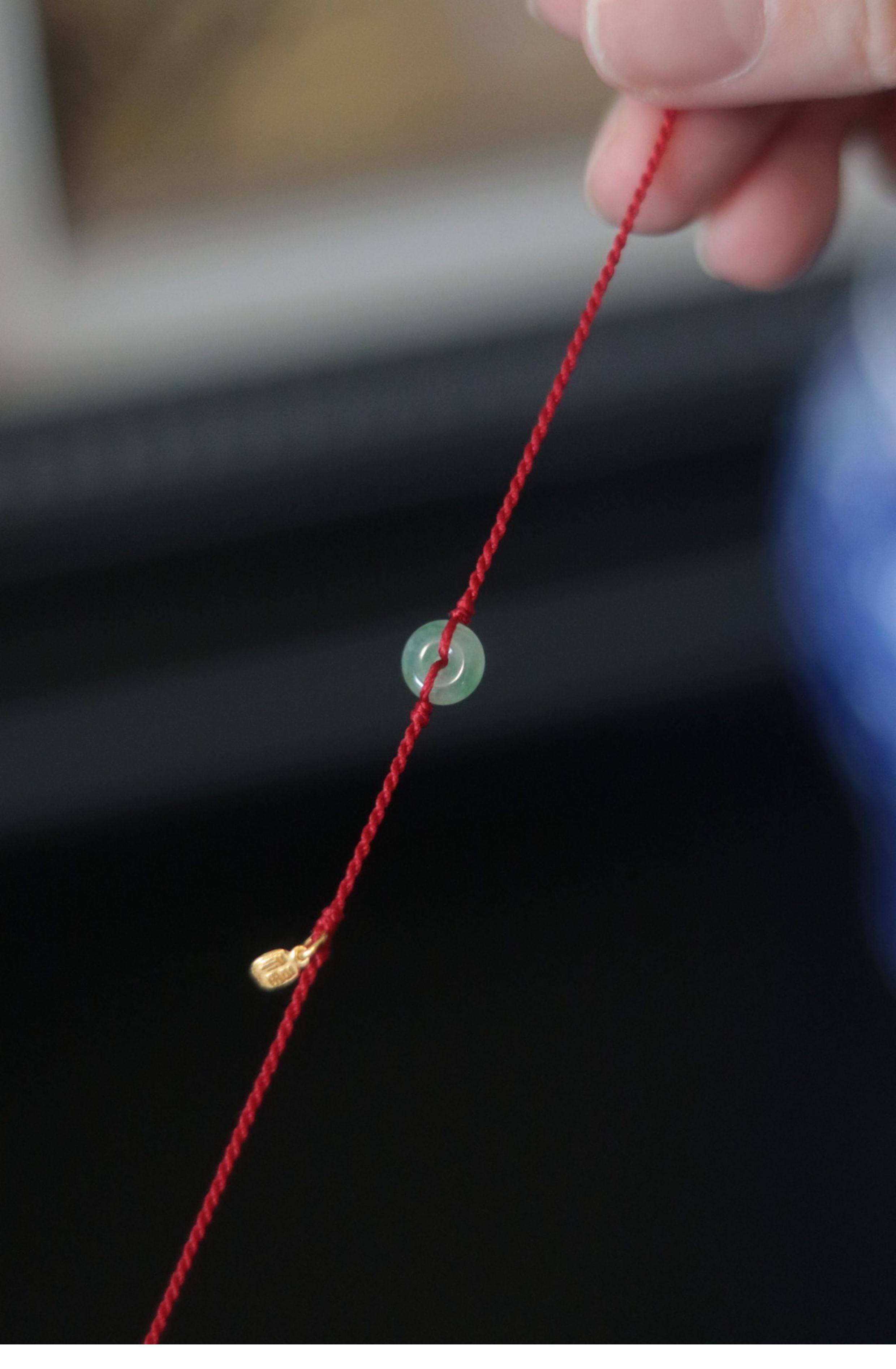 Natural Jadeite from Myanmar, A-Grade Peace Pendant, 24K Pure Gold Hand-Woven Red String Bracelet for Babies, Gift
