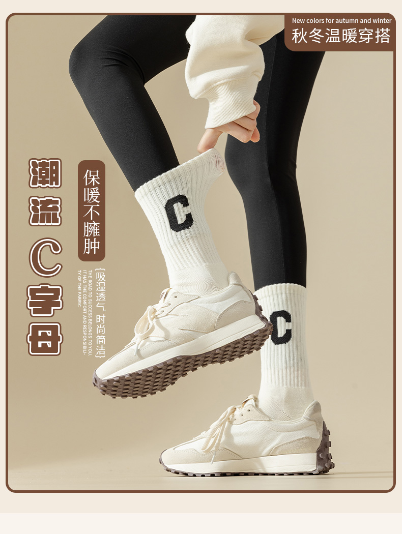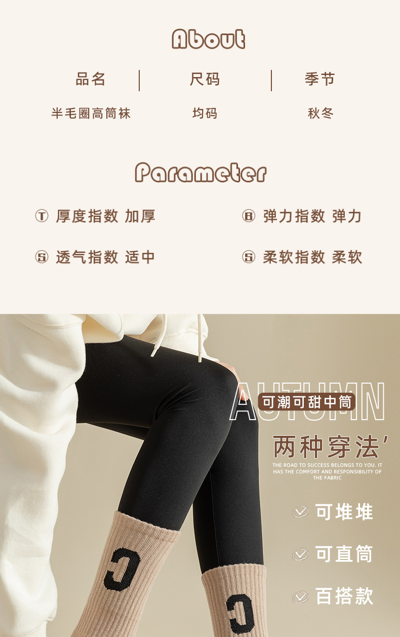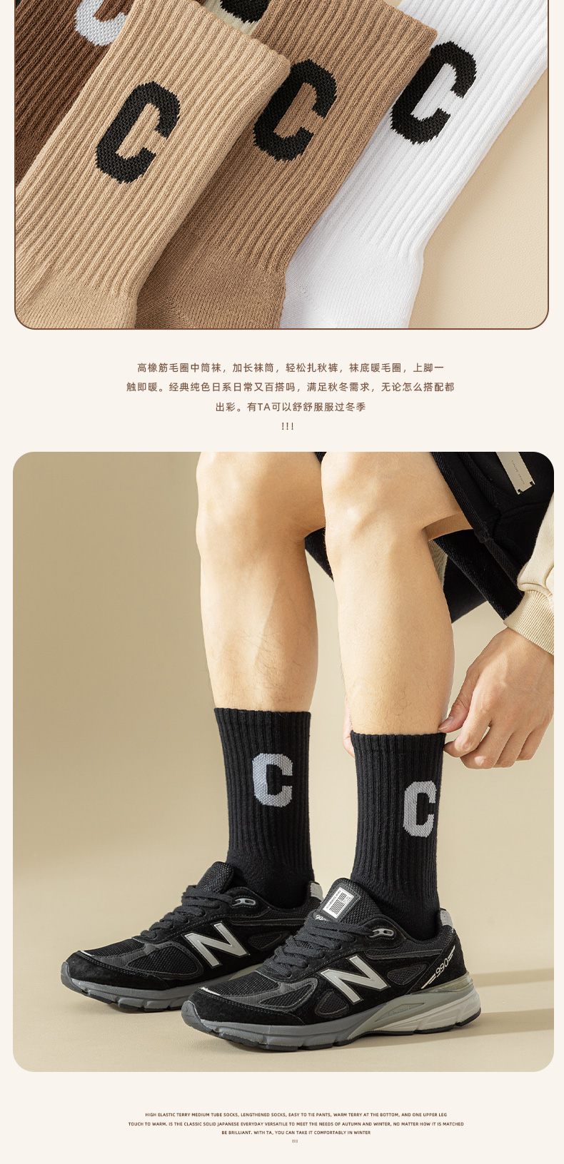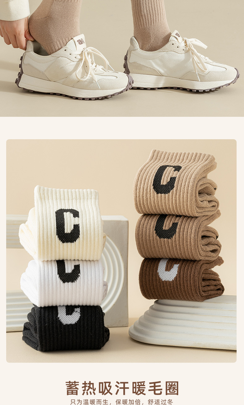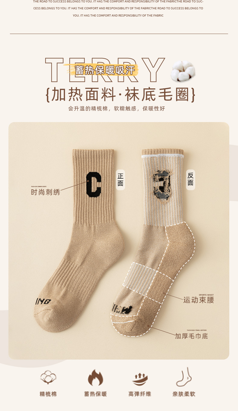 Socks to Wear with Shark Pants, Women's Long Socks, Winter Cotton Socks, Thick Terry Socks, Trendy Internet Celebrity Style Mid-Calf Socks