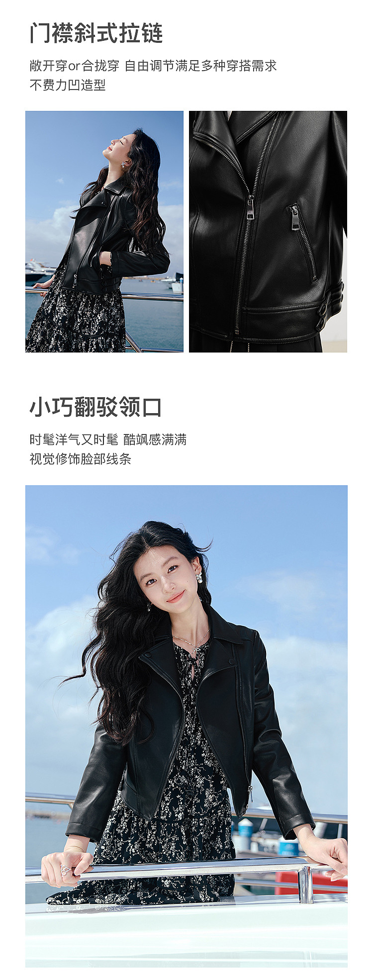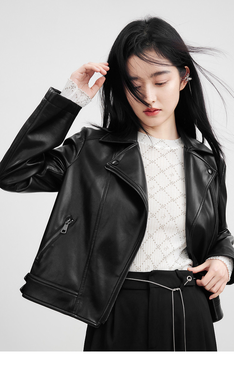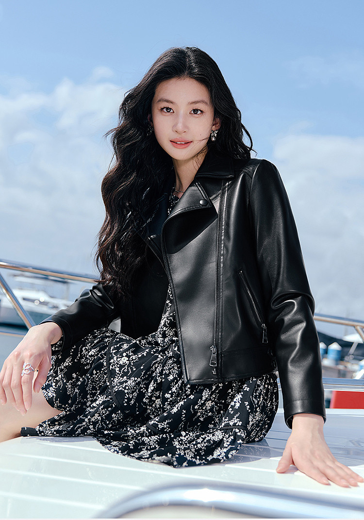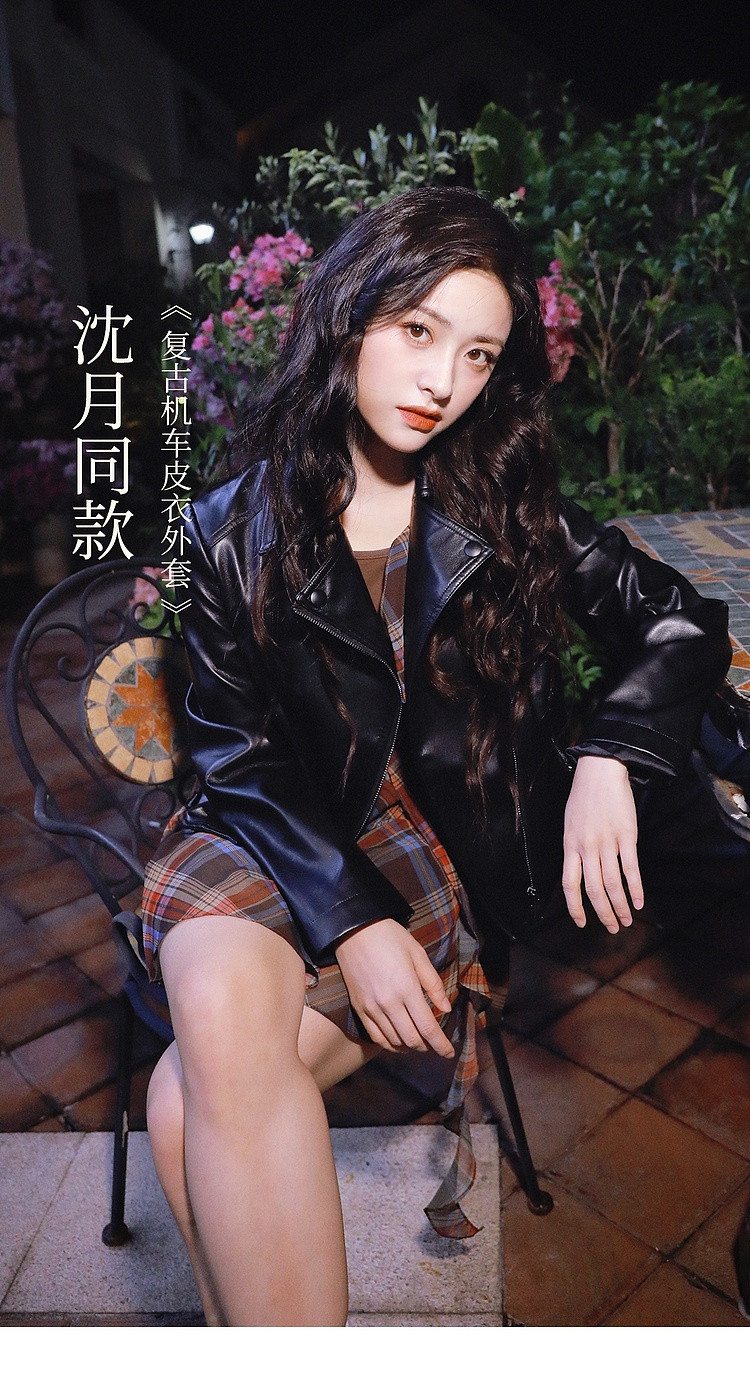 [Same Style Leather Jacket as Shen Yue] Qiushui Yiren Retro Biker Leather Jacket for Women, New Spring/Summer Leather Jacket