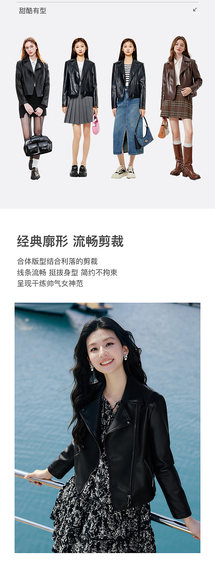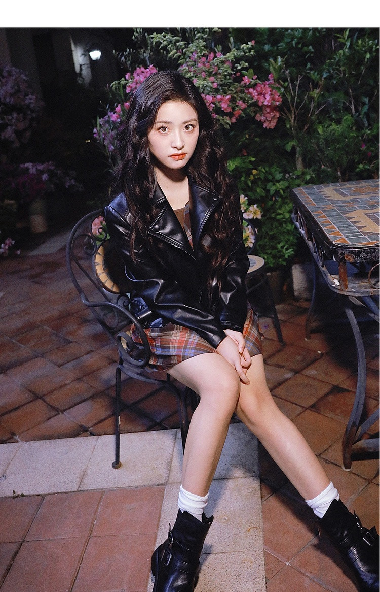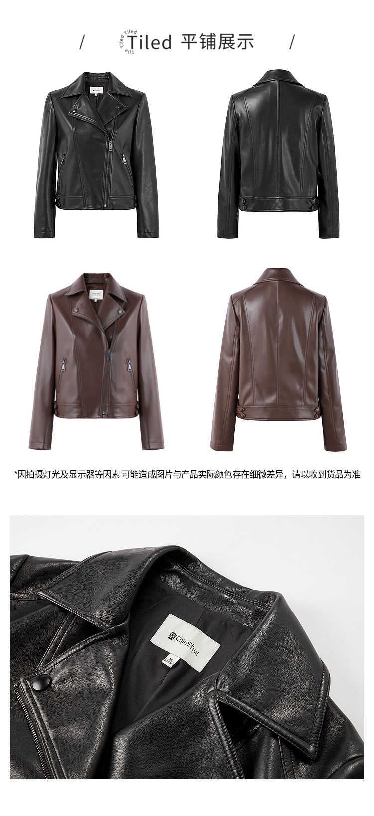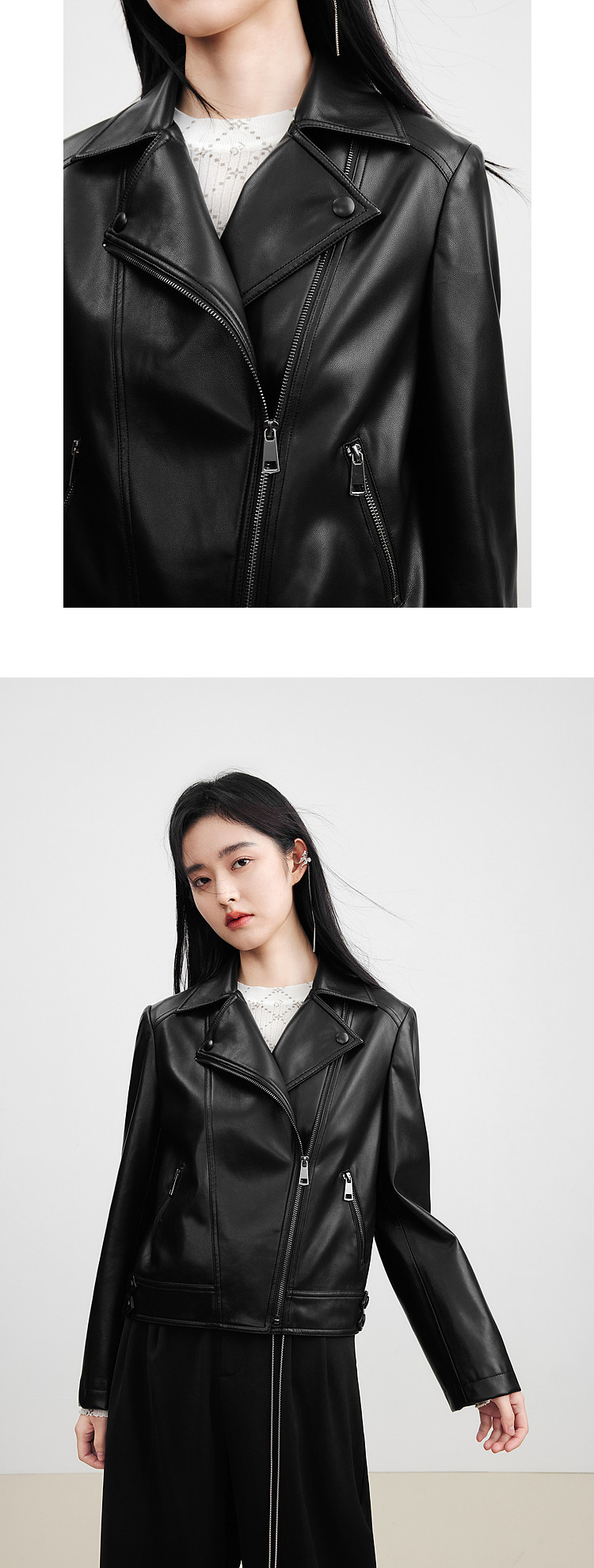 [Same Style Leather Jacket as Shen Yue] Qiushui Yiren Retro Biker Leather Jacket for Women, New Spring/Summer Leather Jacket