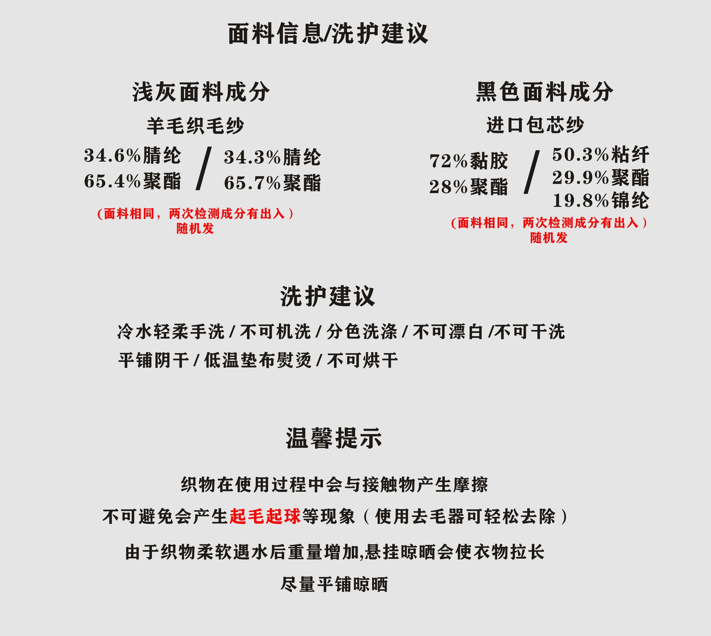 毛织产品均不可避免起球,掉毛现象,介意慎拍!