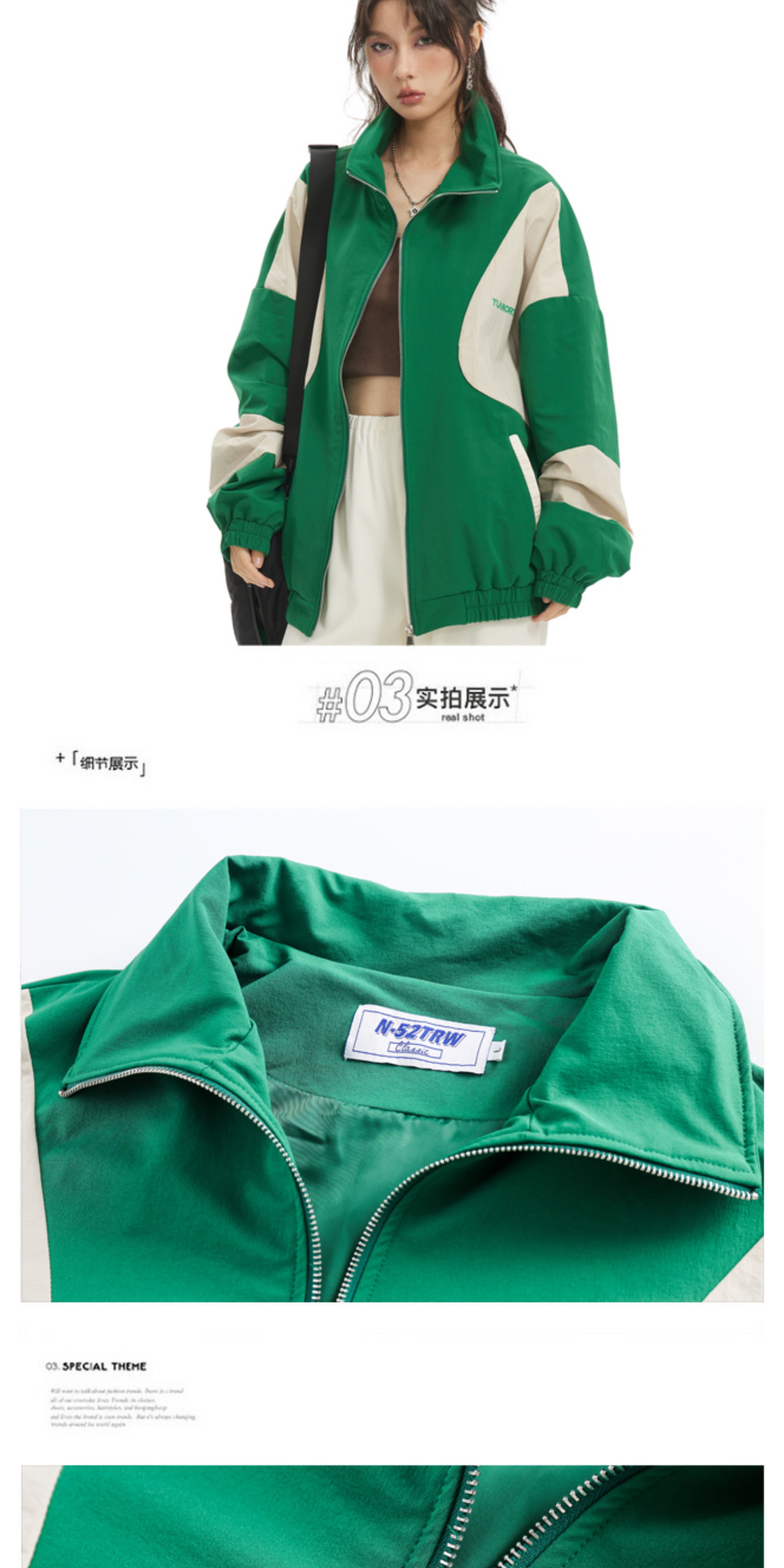 Wonderful Story Original Design American Retro Contrast Color Zipper Casual Waist-Cinching Sports Jacket