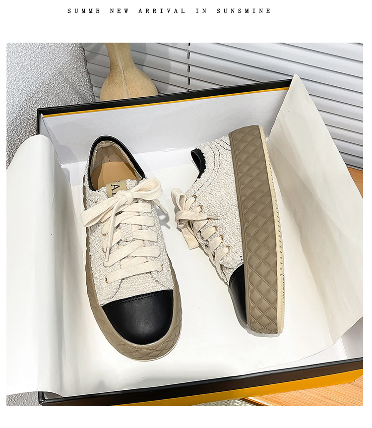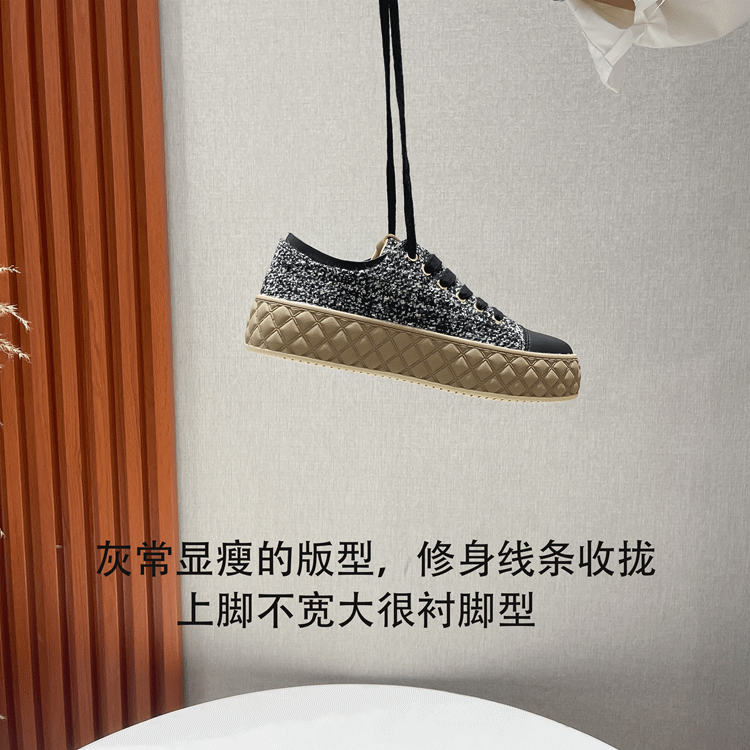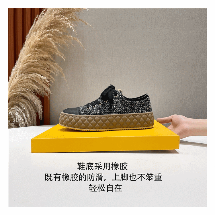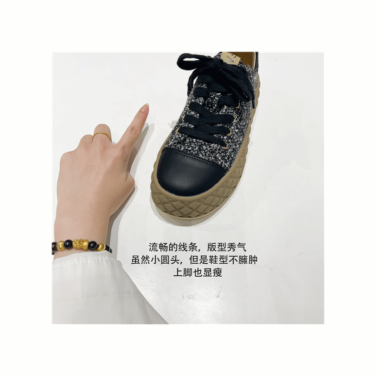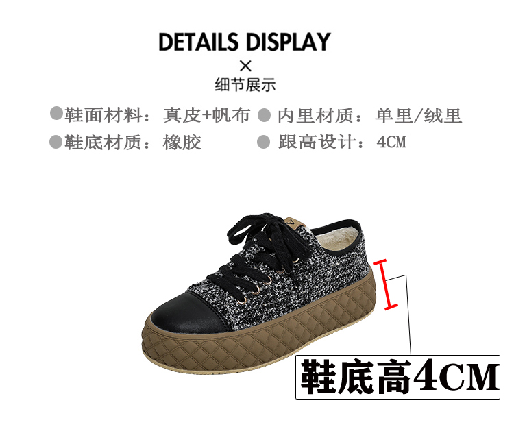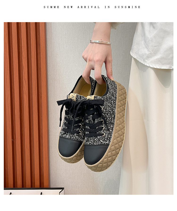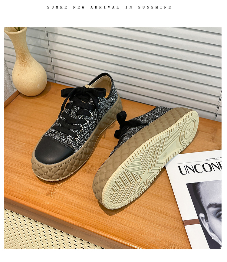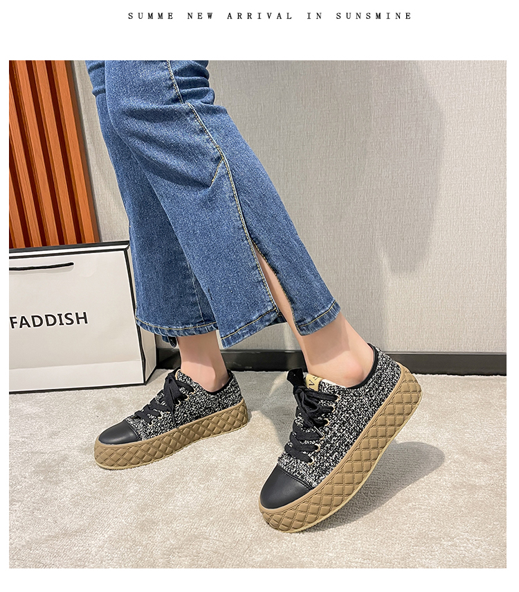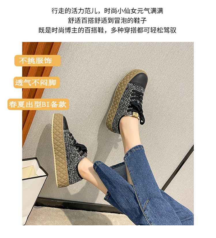 Hong Kong Style Biscuit Shoes for Women, Thick-Soled Platform Shoes, Casual Sneakers, Versatile 2025 Spring and Autumn Canvas Shoes, Woven