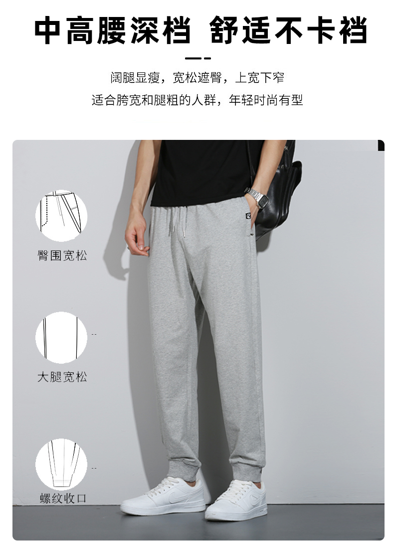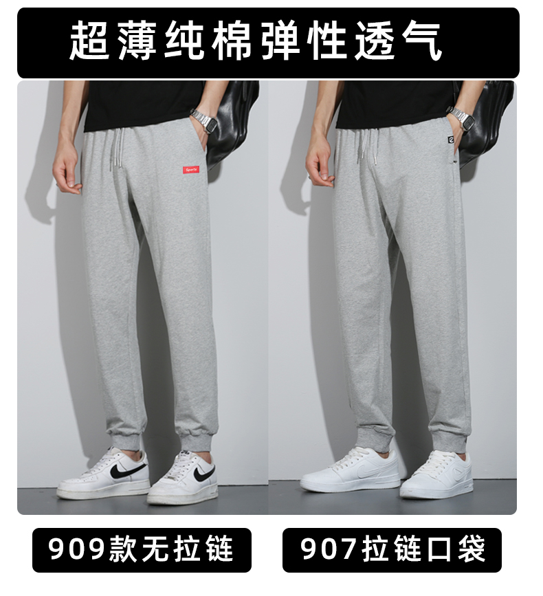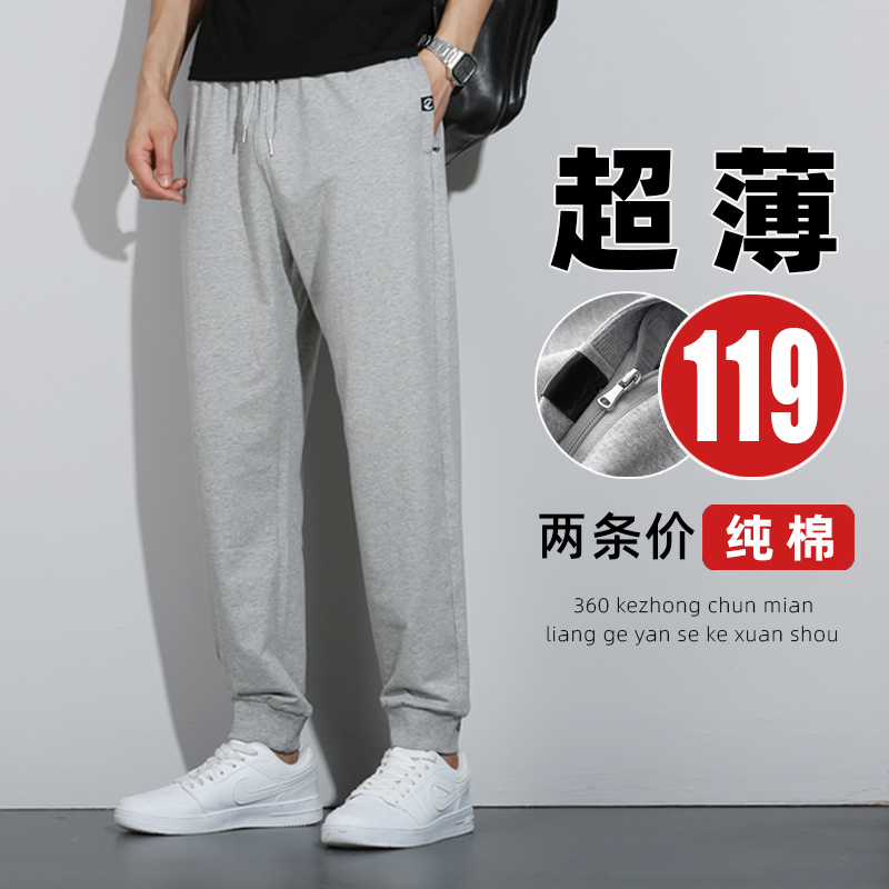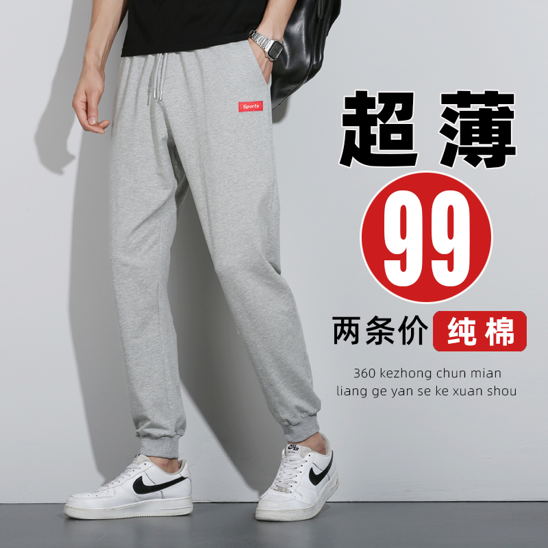 Ultra-Thin Pure Cotton Pants Men's Long Pants Loose Cuffed Casual Sweatpants Tapered Men's Pants Summer Thin Sports Pants Men